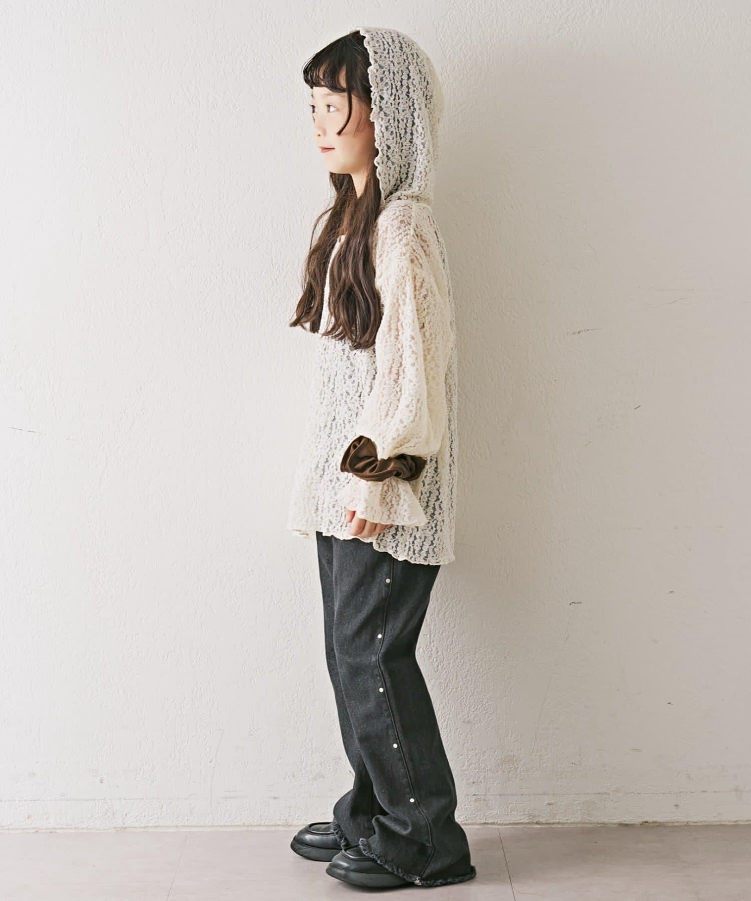 【KIDS】彈力蕾絲連帽衫