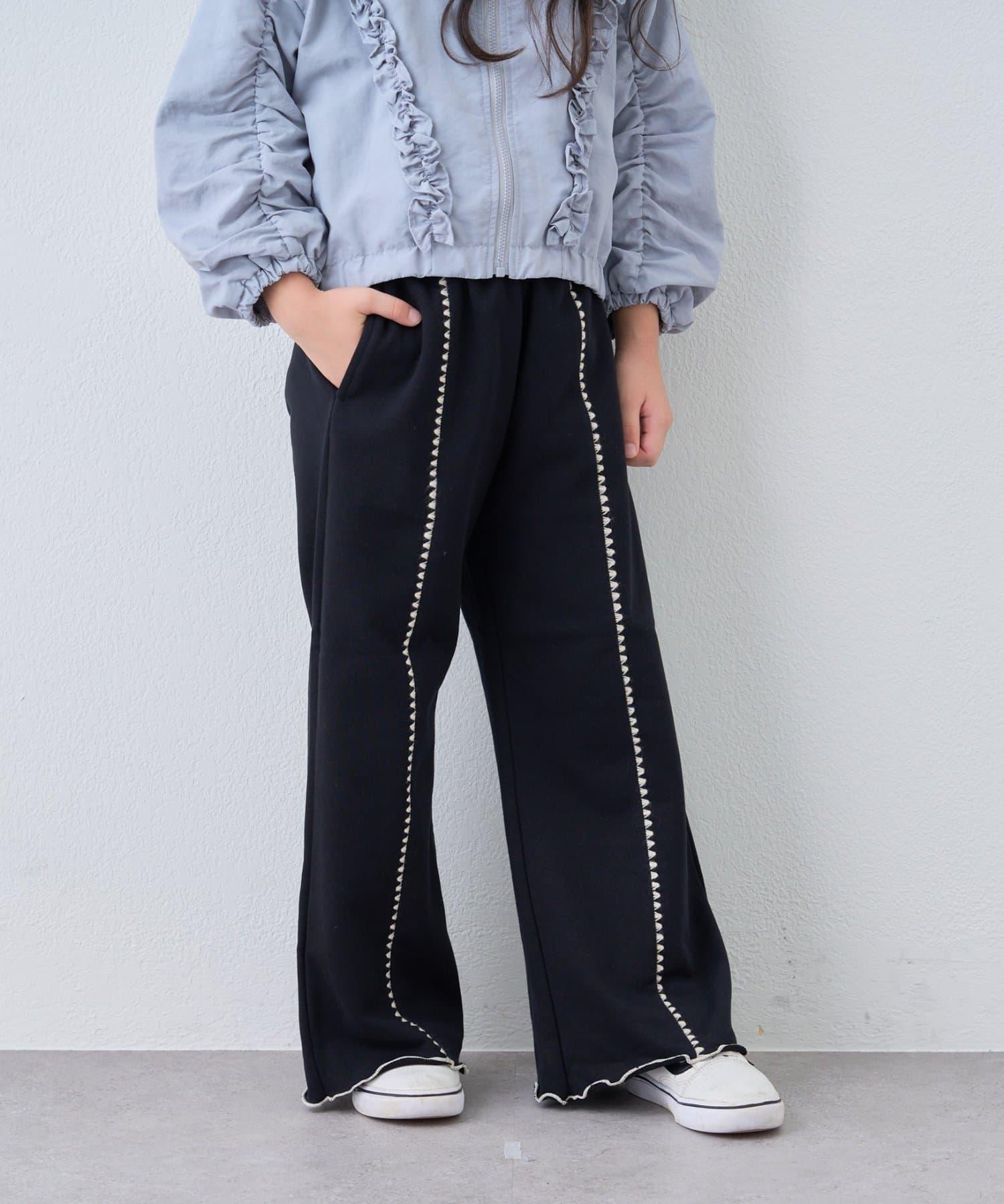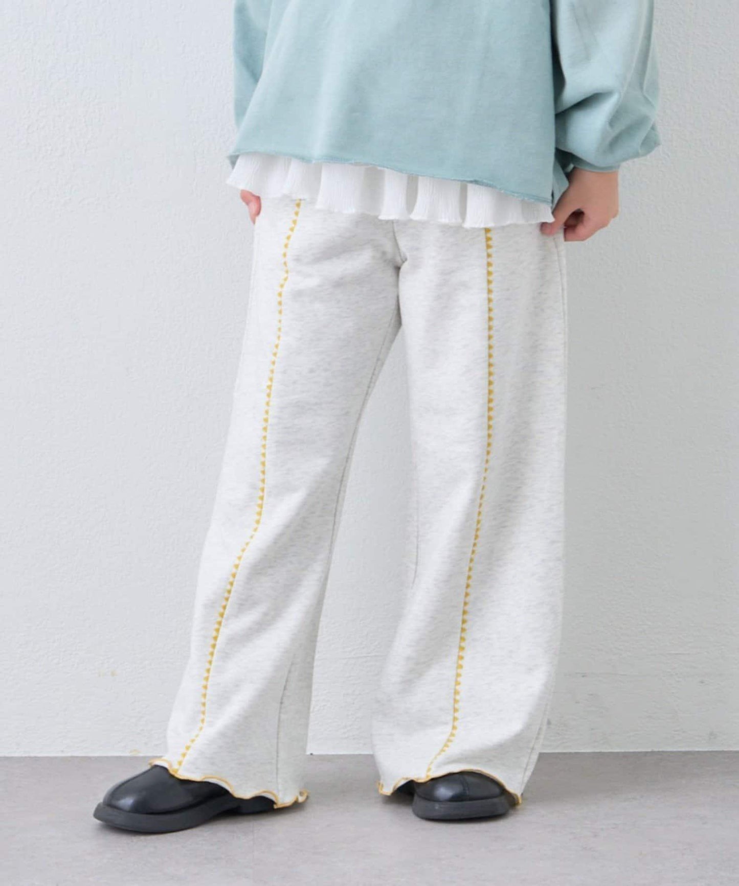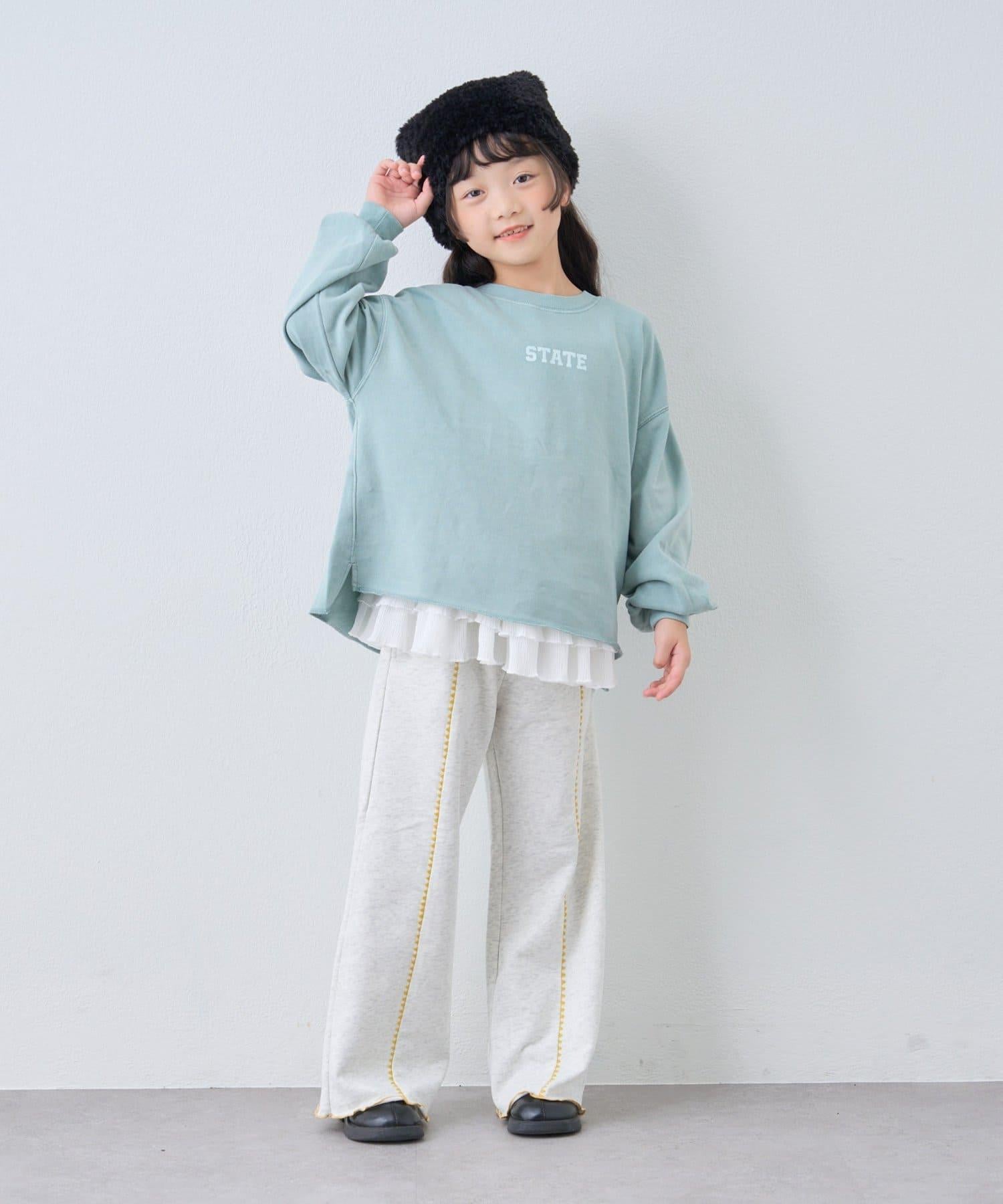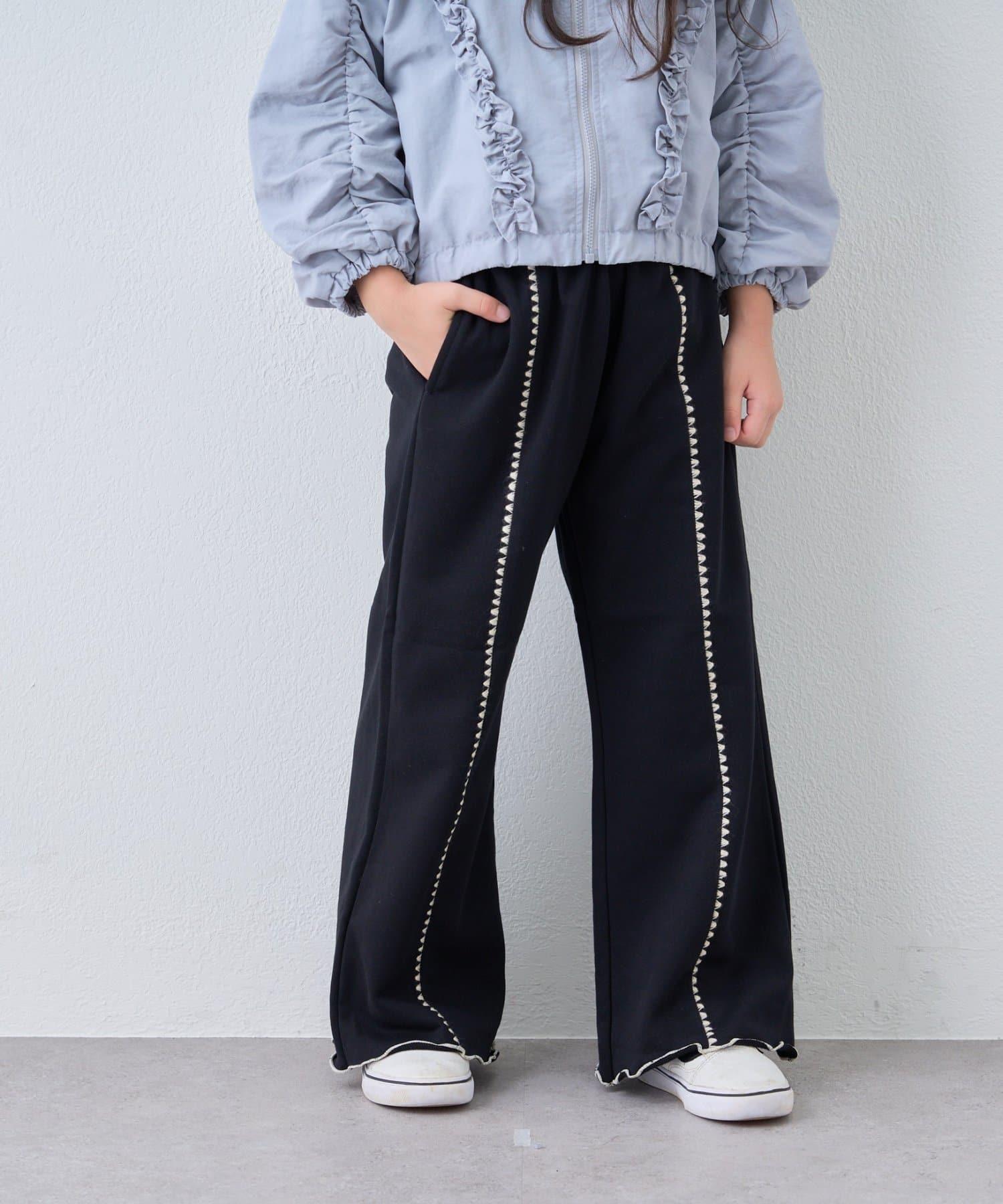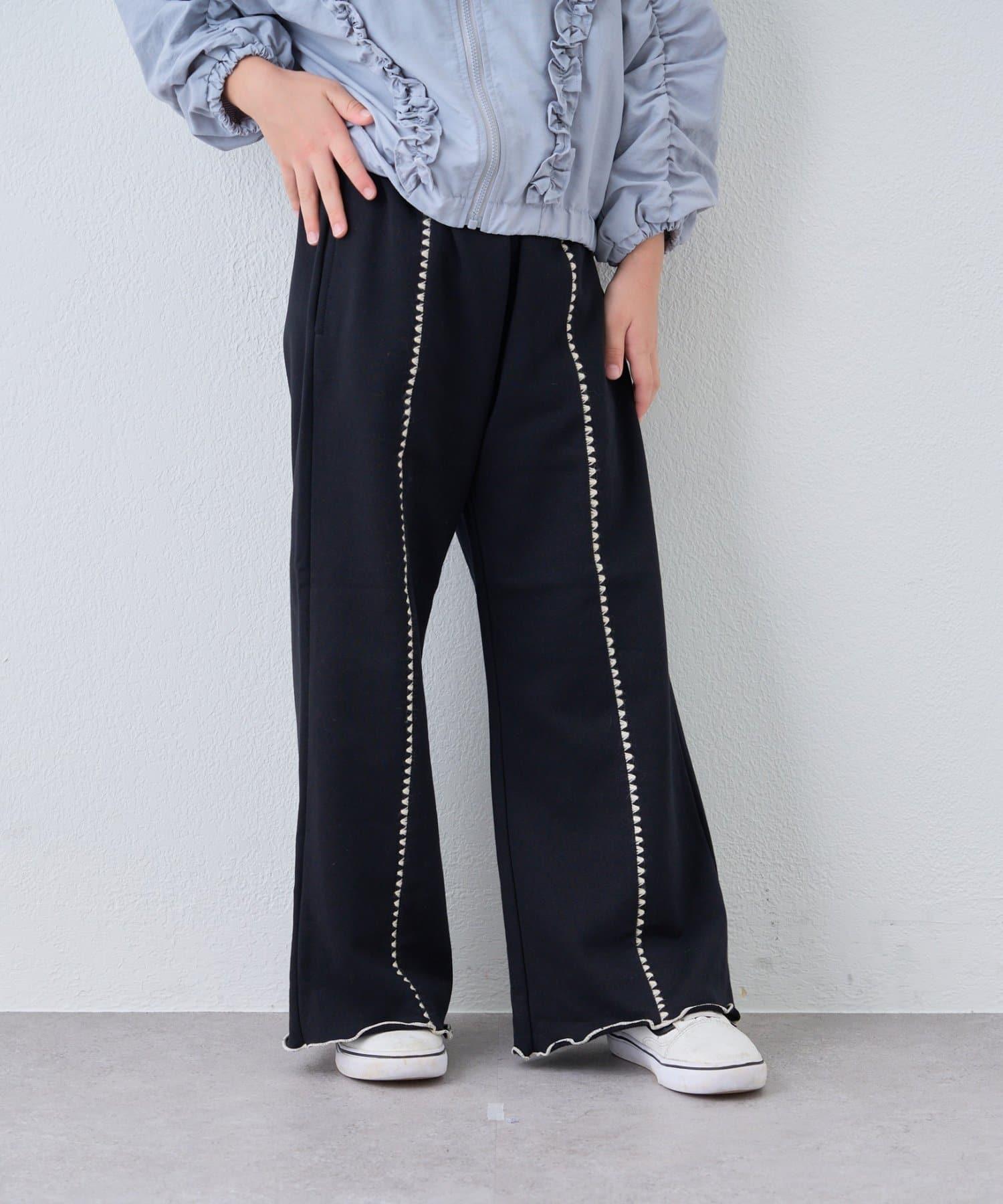【KIDS】拼色蛤殼縫線微喇叭褲