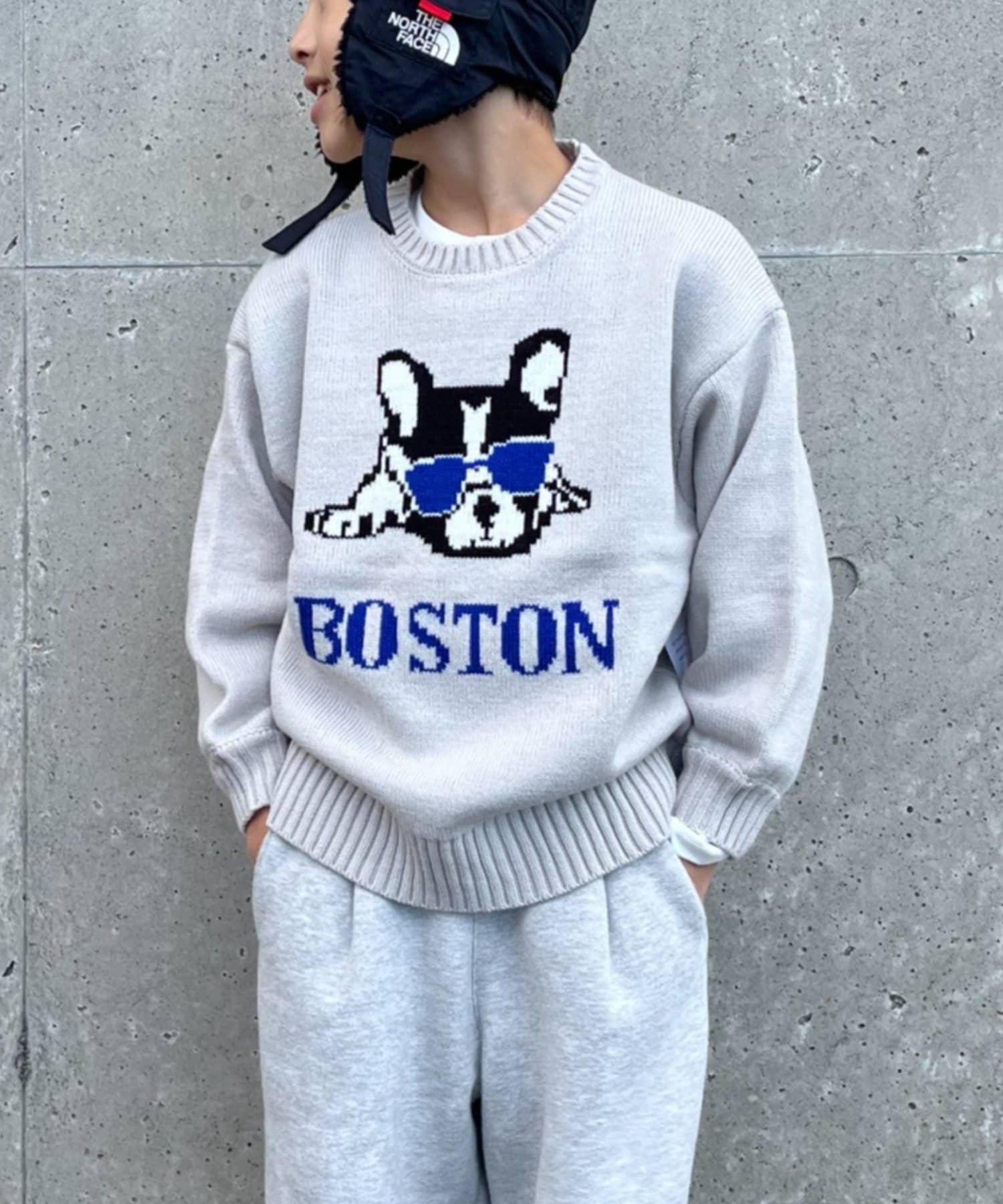 中性] 狗仔隊各種圖案徽標提花針織衫