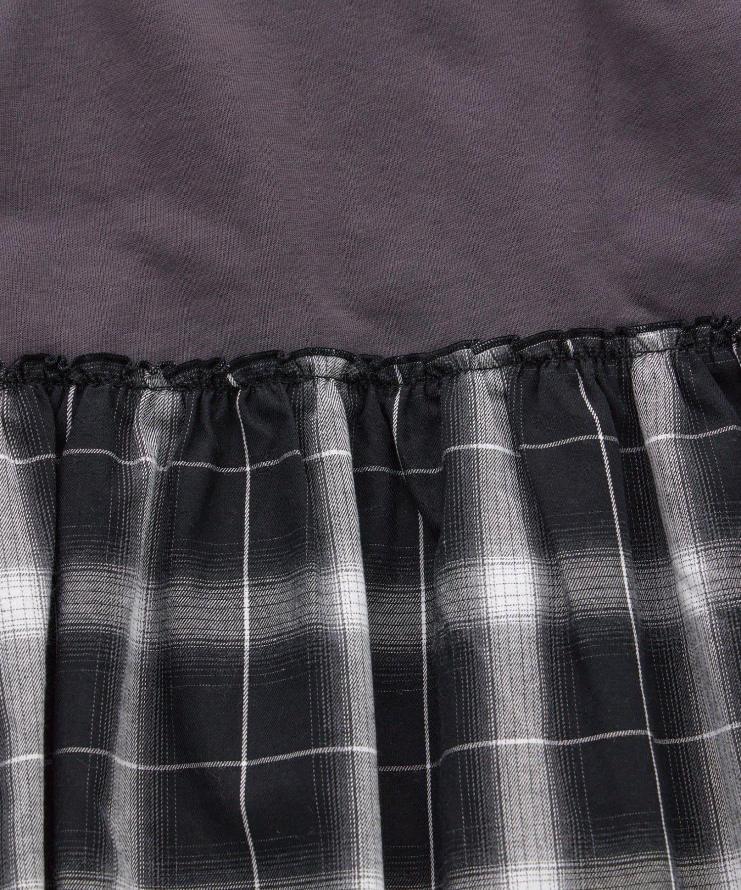 這款連衣裙混合了不同的材質,上半身是運動衫材質,休閒感十足;下半身是蓬鬆的黑色面料,更顯精緻。