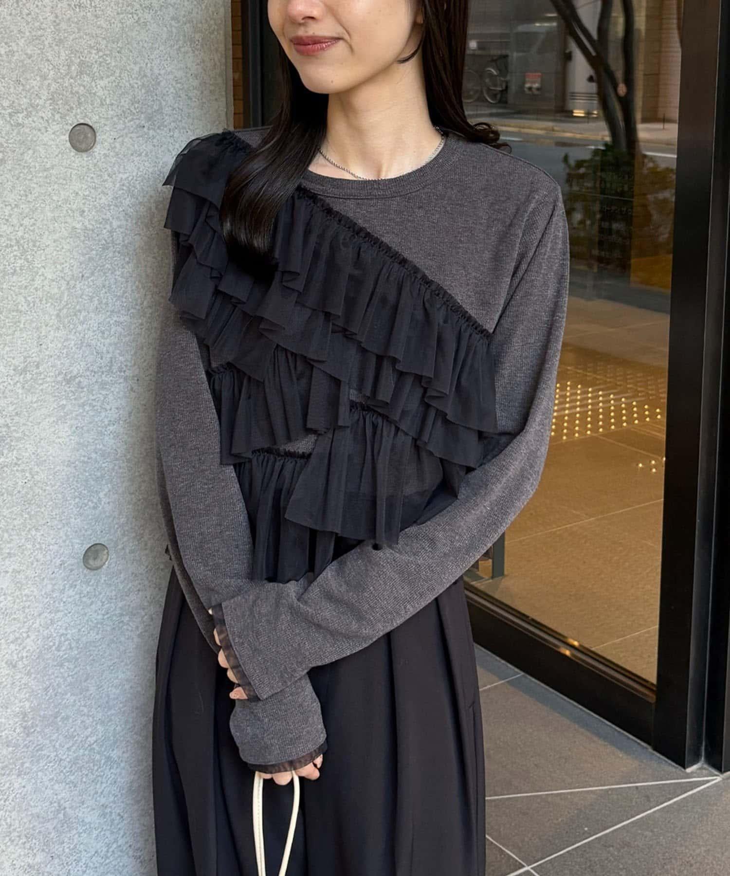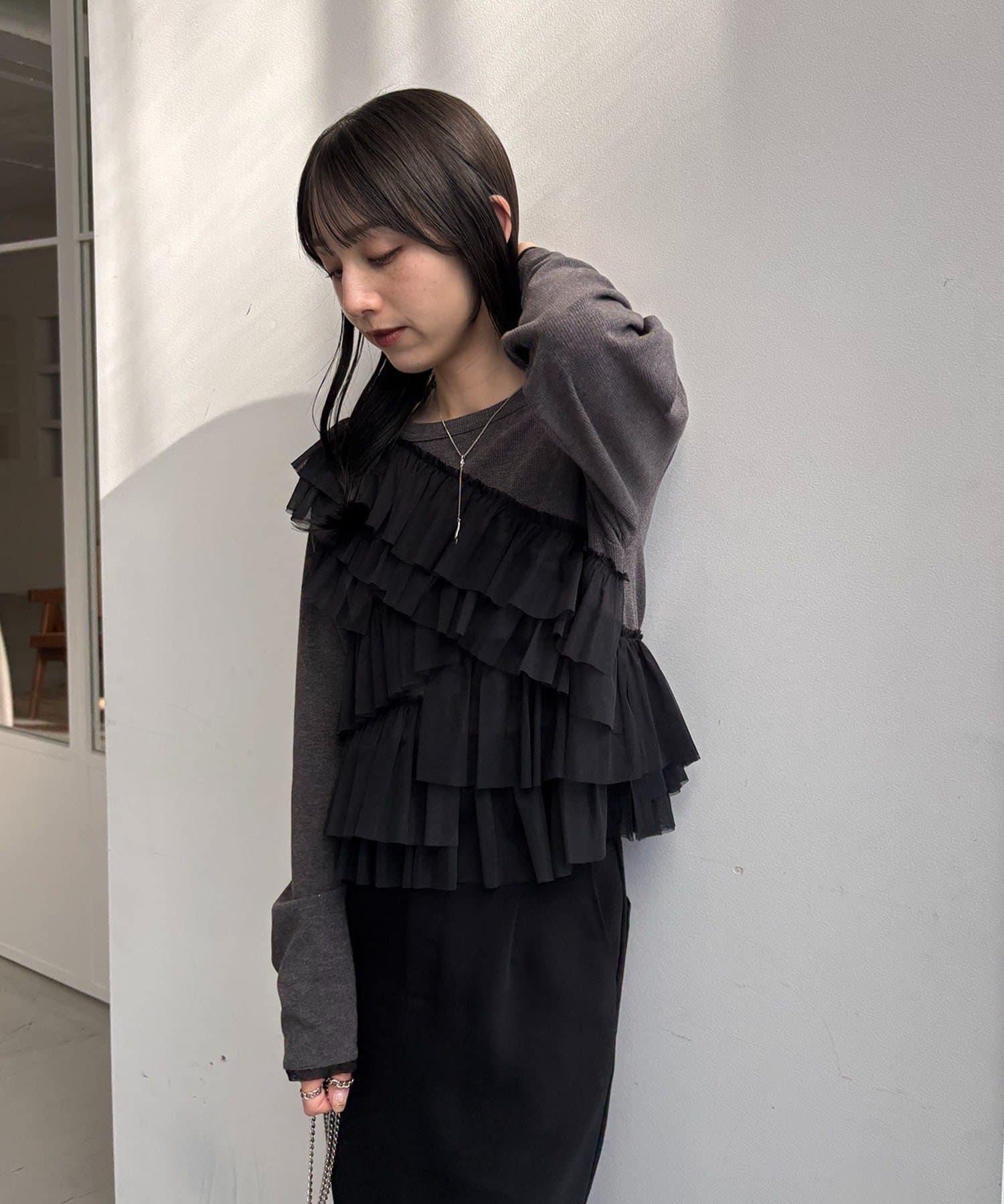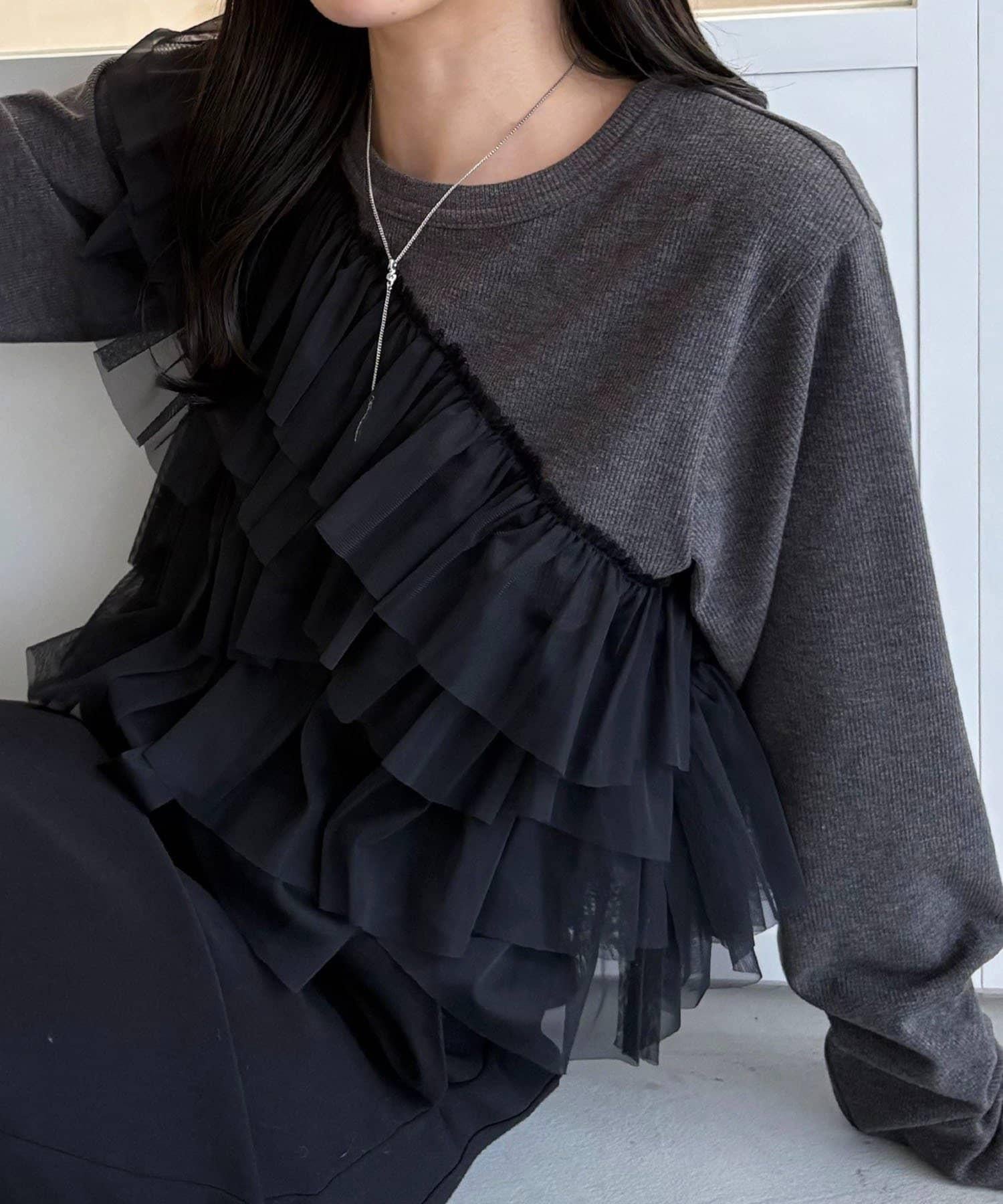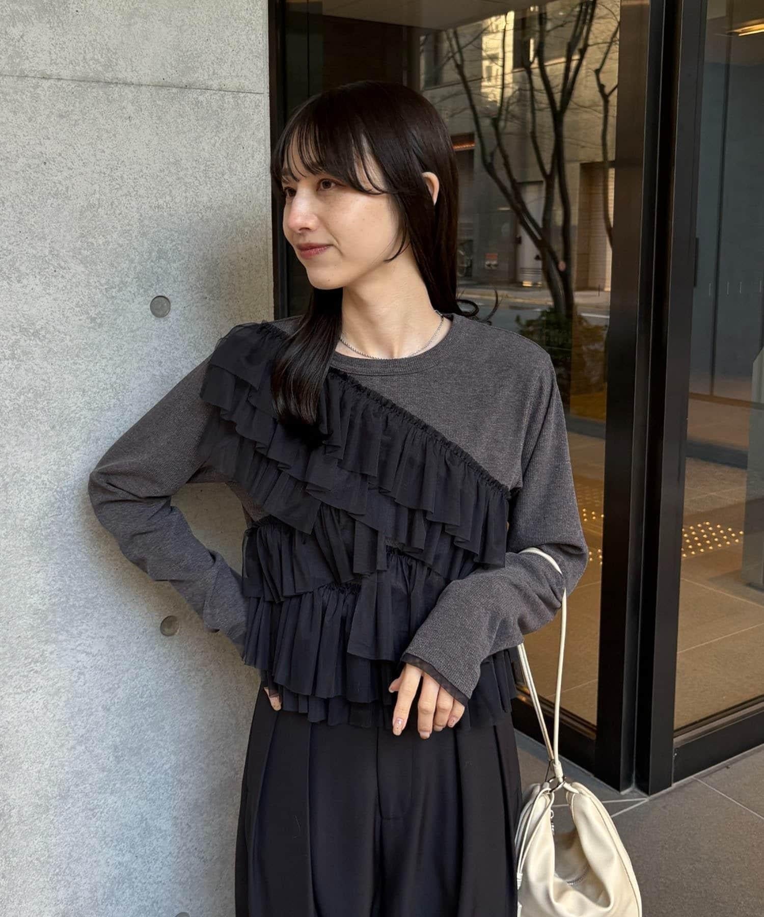kon企畫 荷葉邊拼接長袖T恤