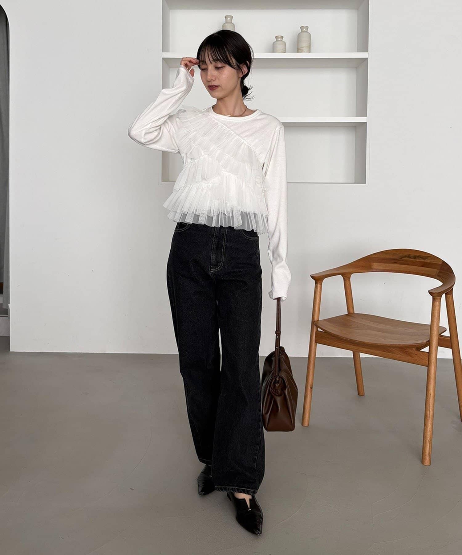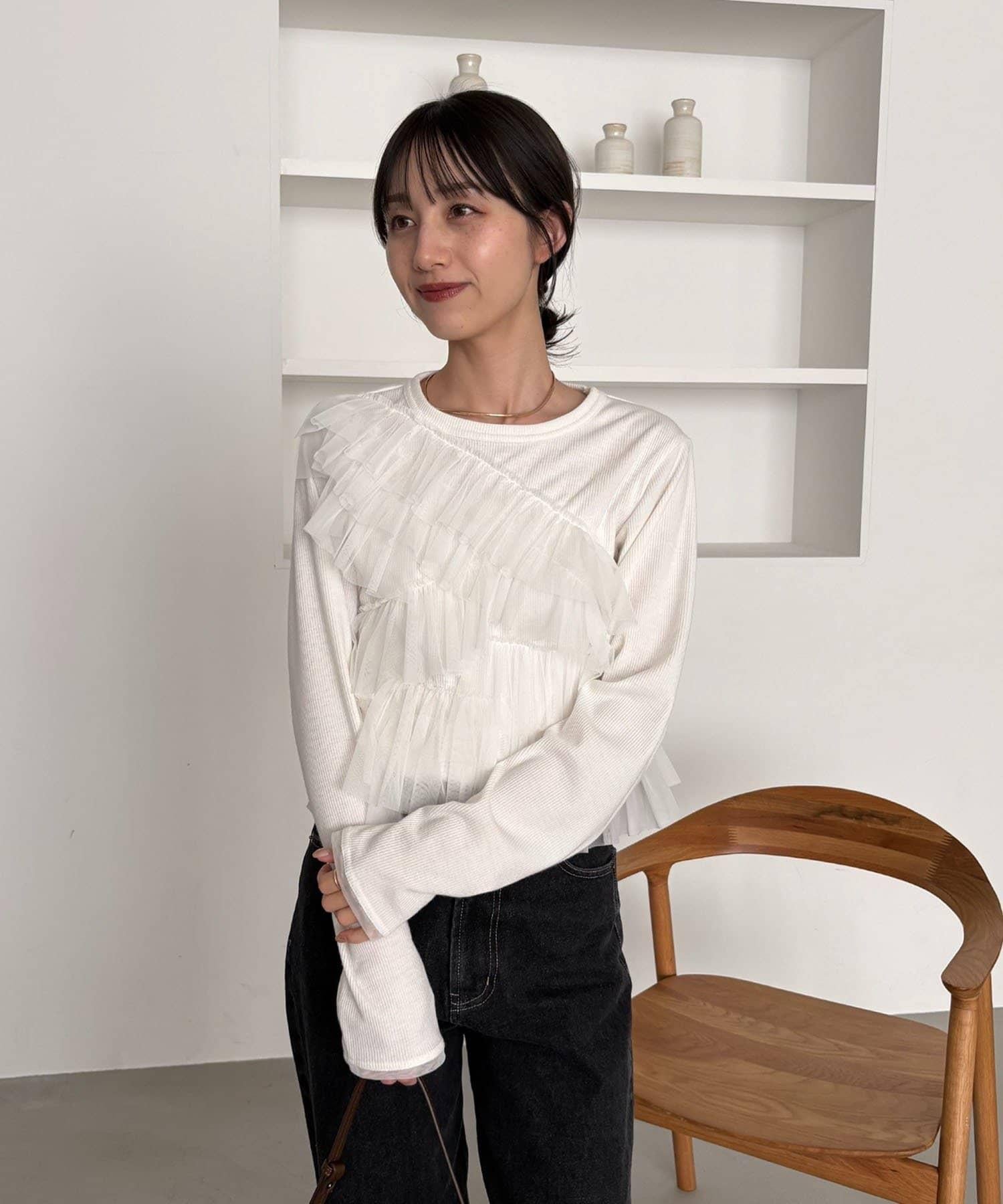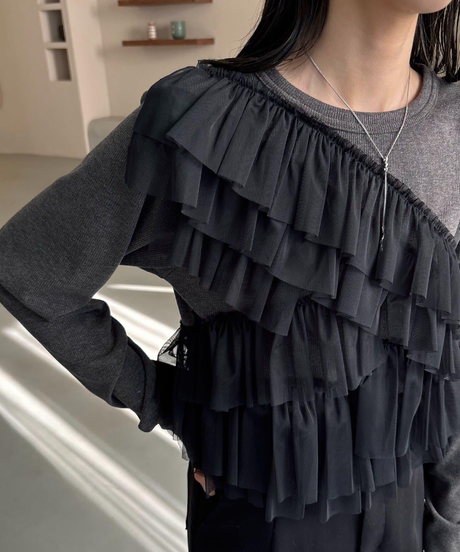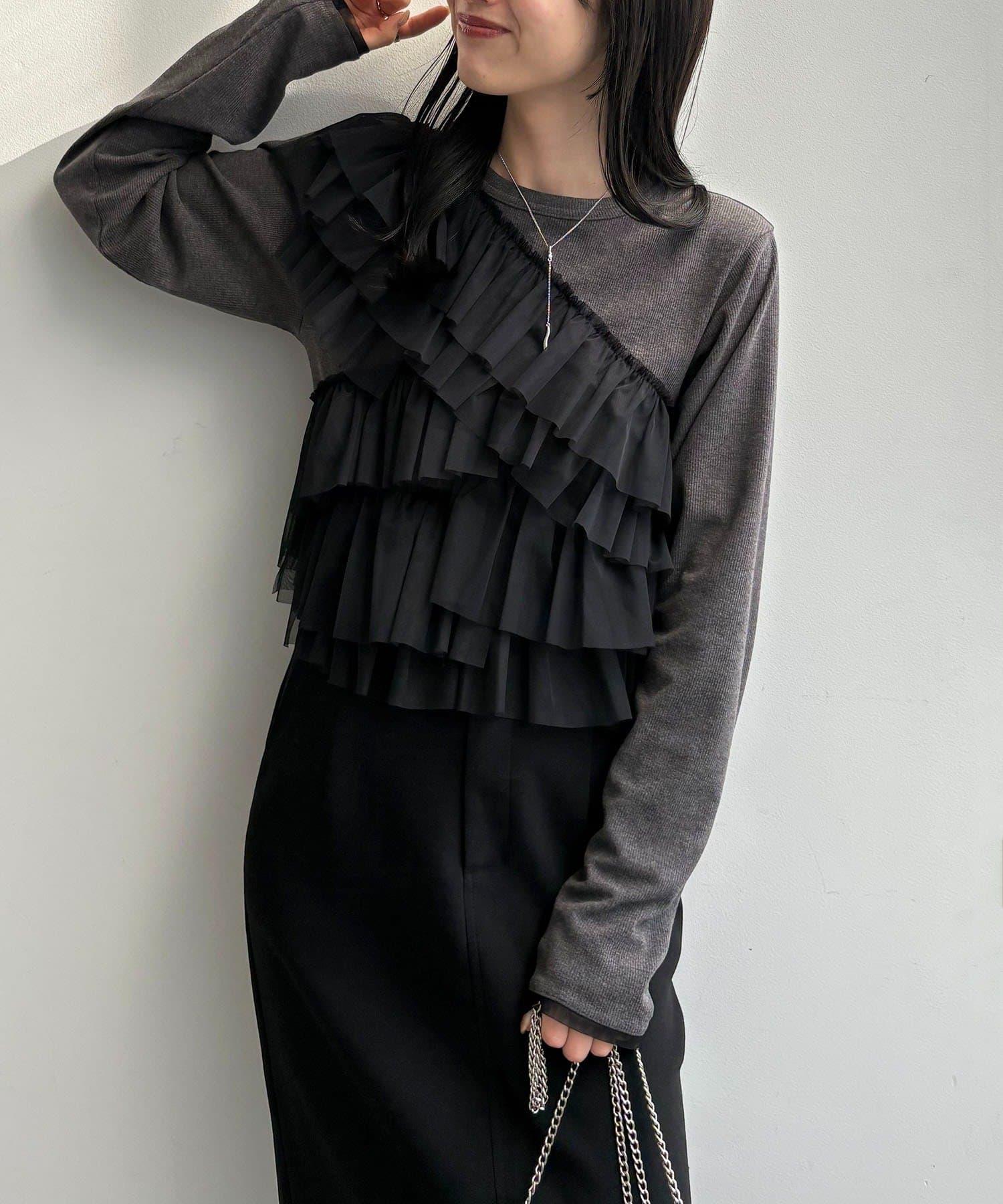 kon企畫 荷葉邊拼接長袖T恤