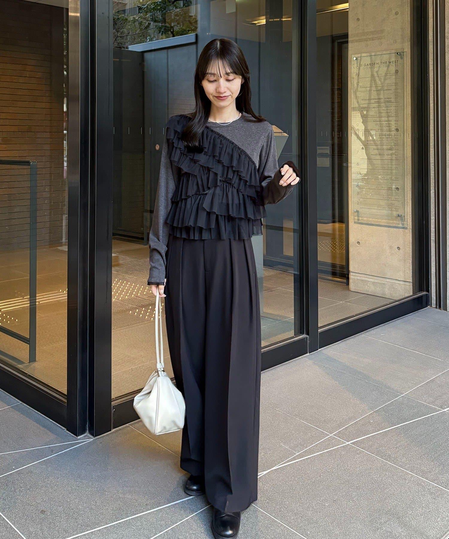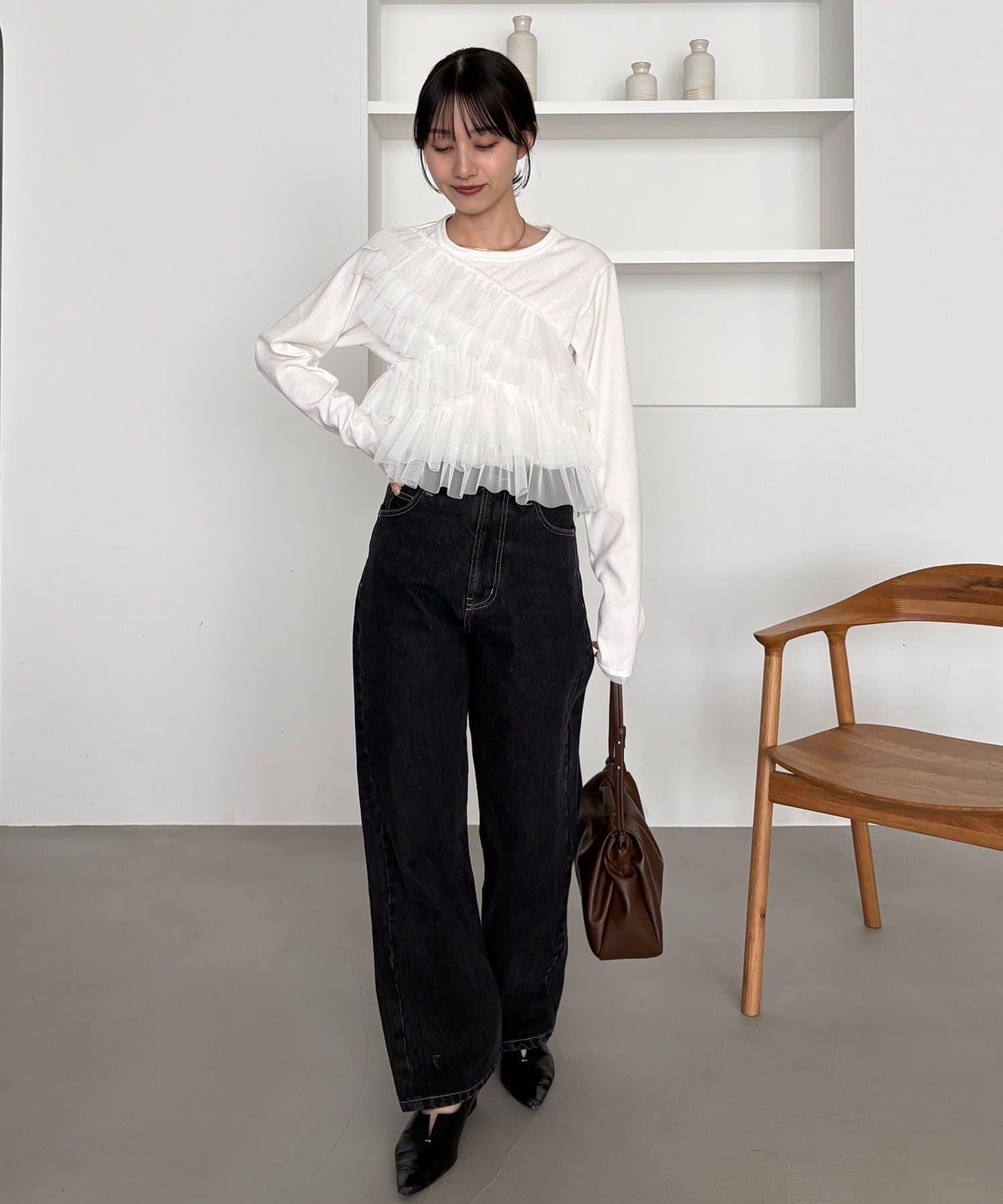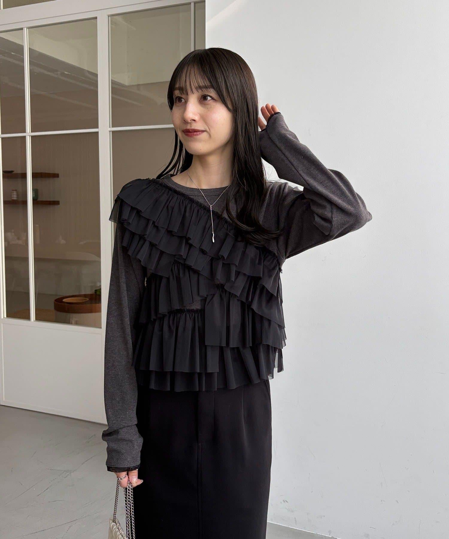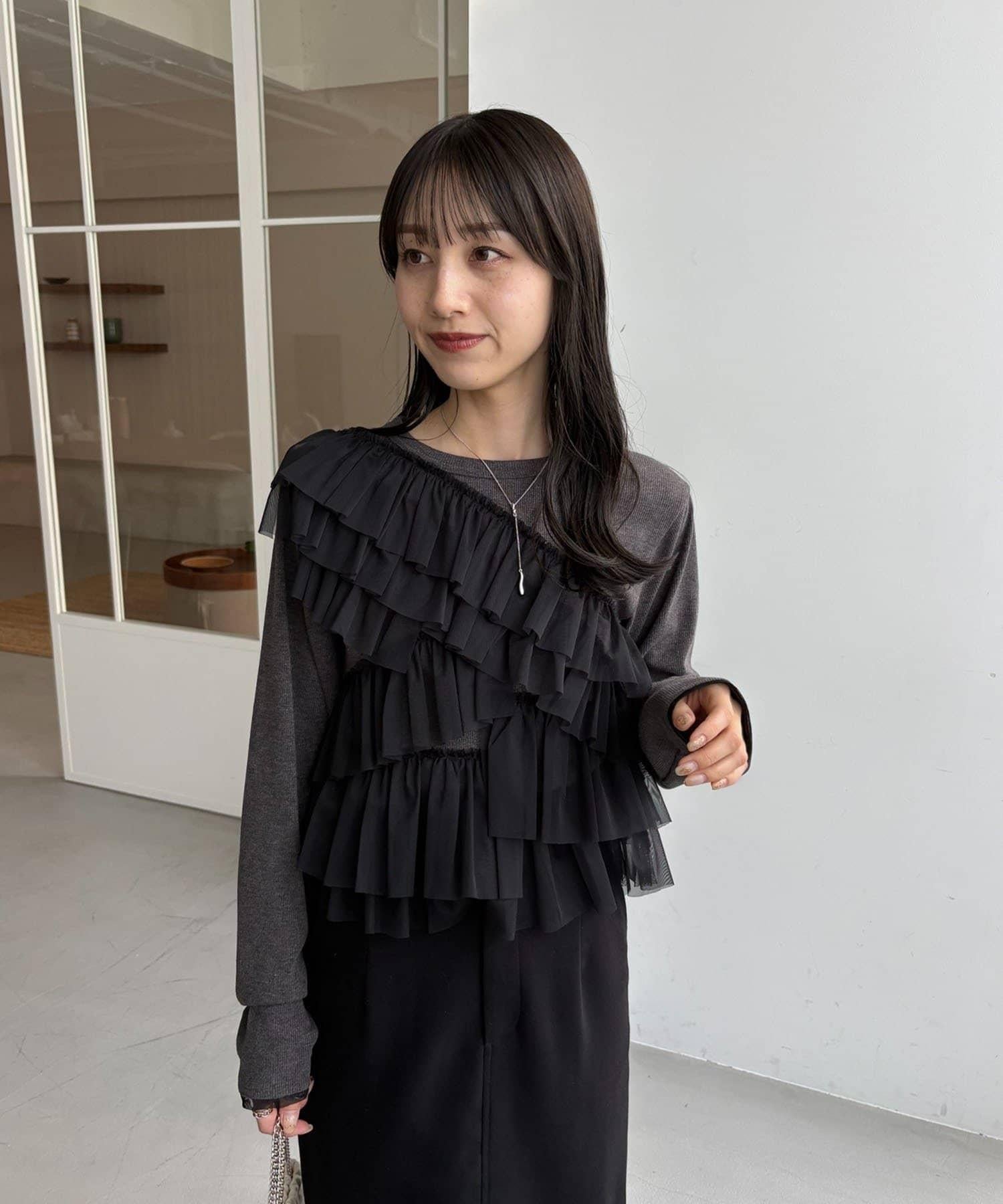 kon企畫 荷葉邊拼接長袖T恤