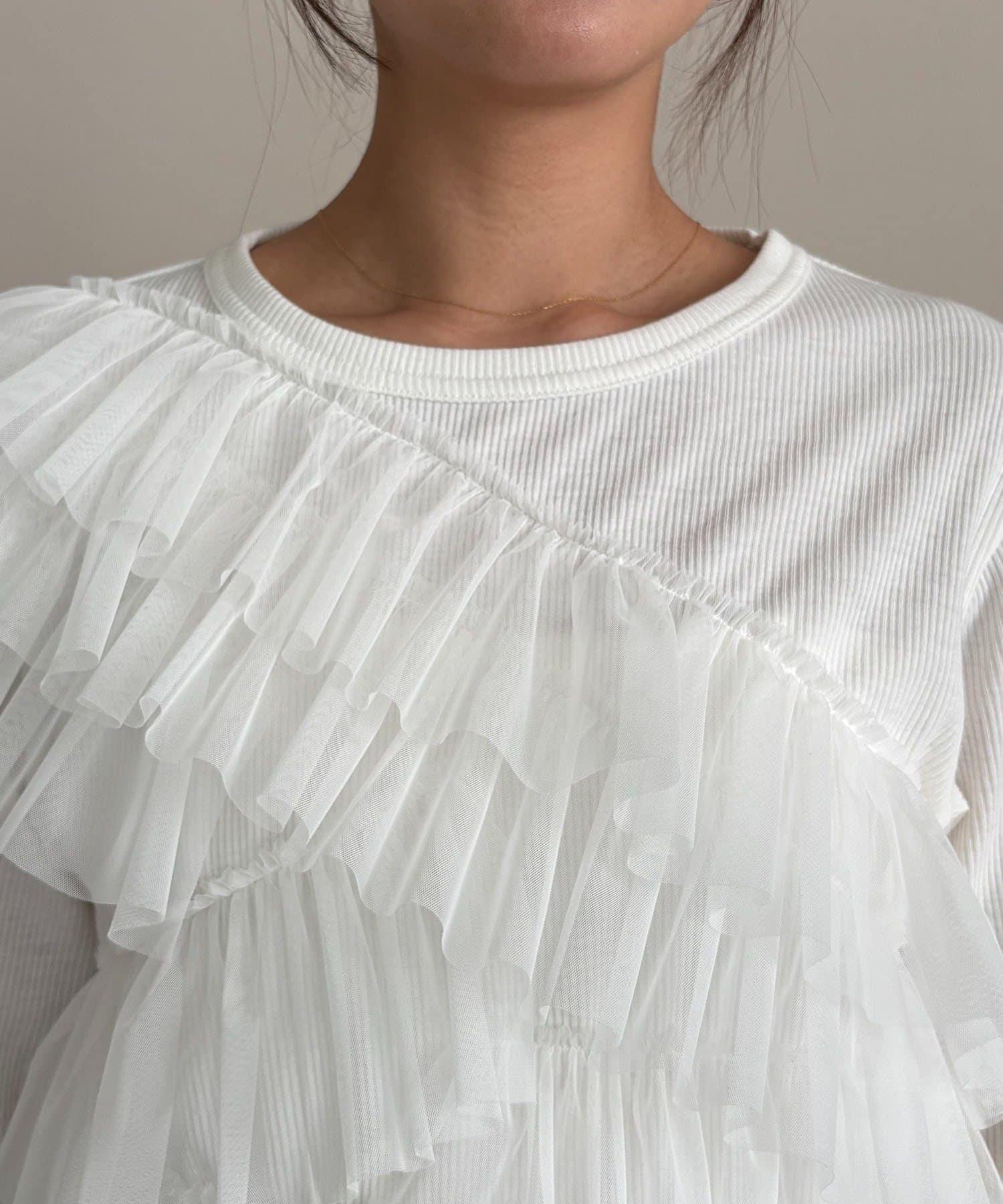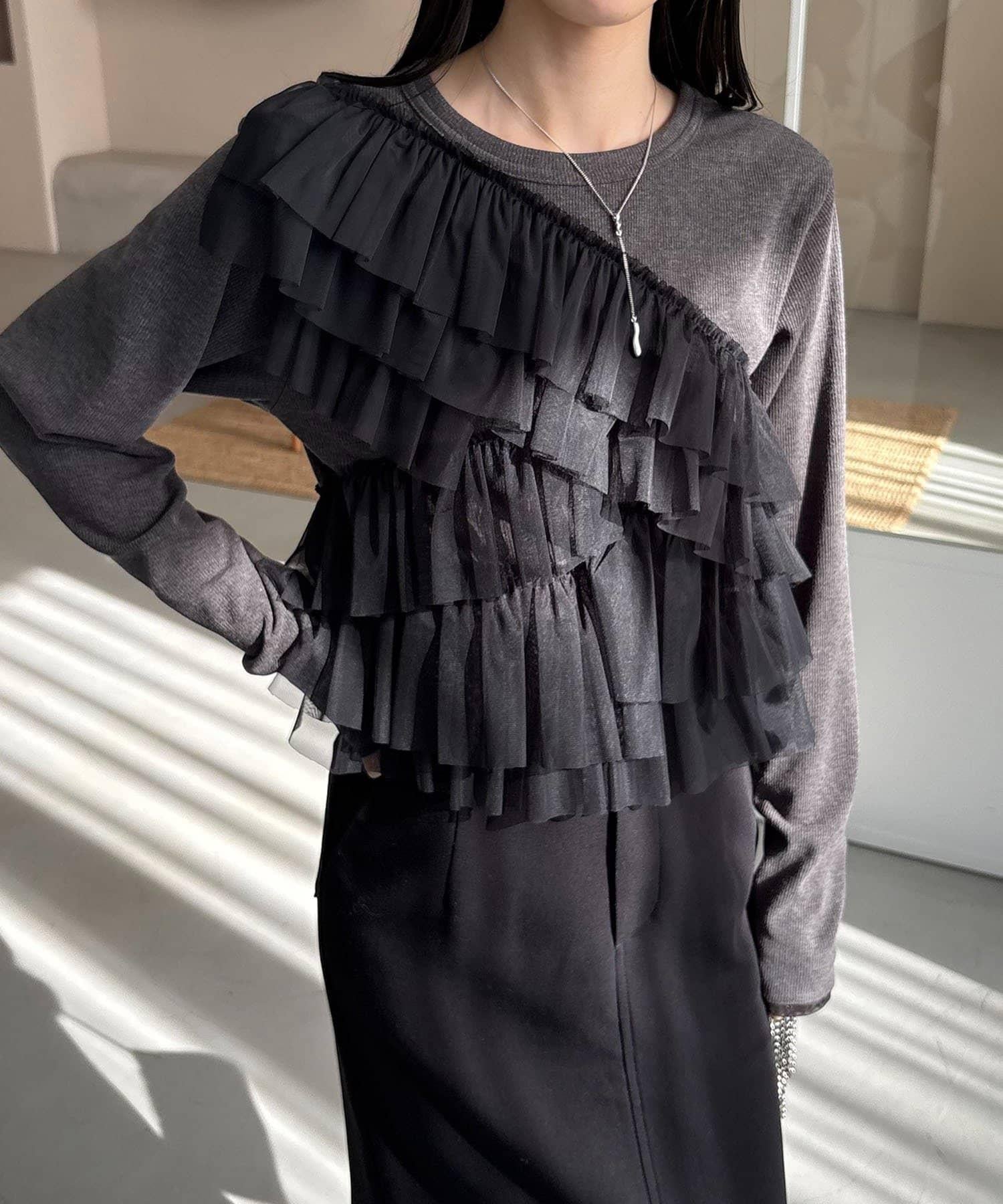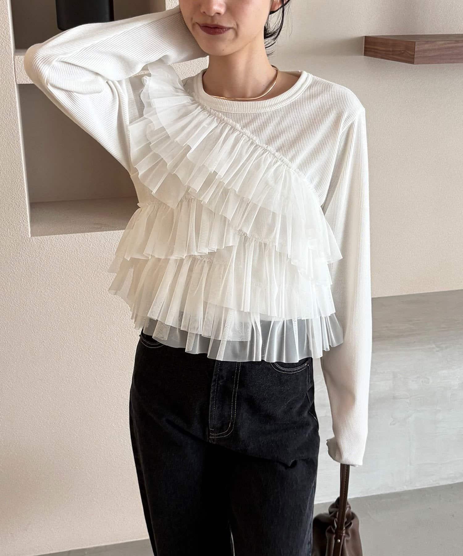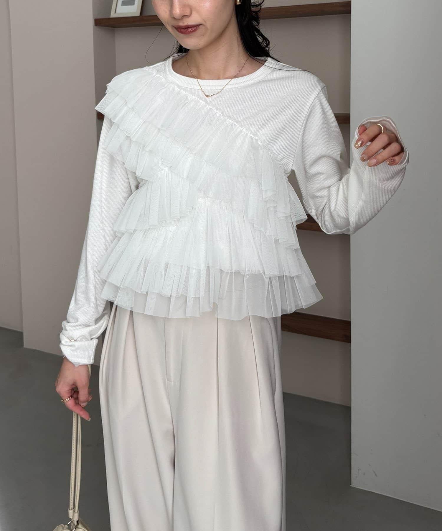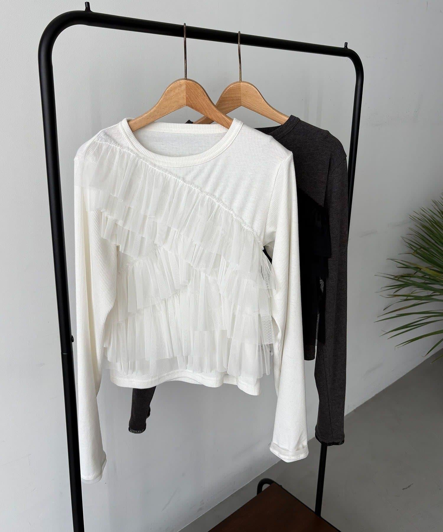 長 T,不對稱荷葉邊薄紗對接。