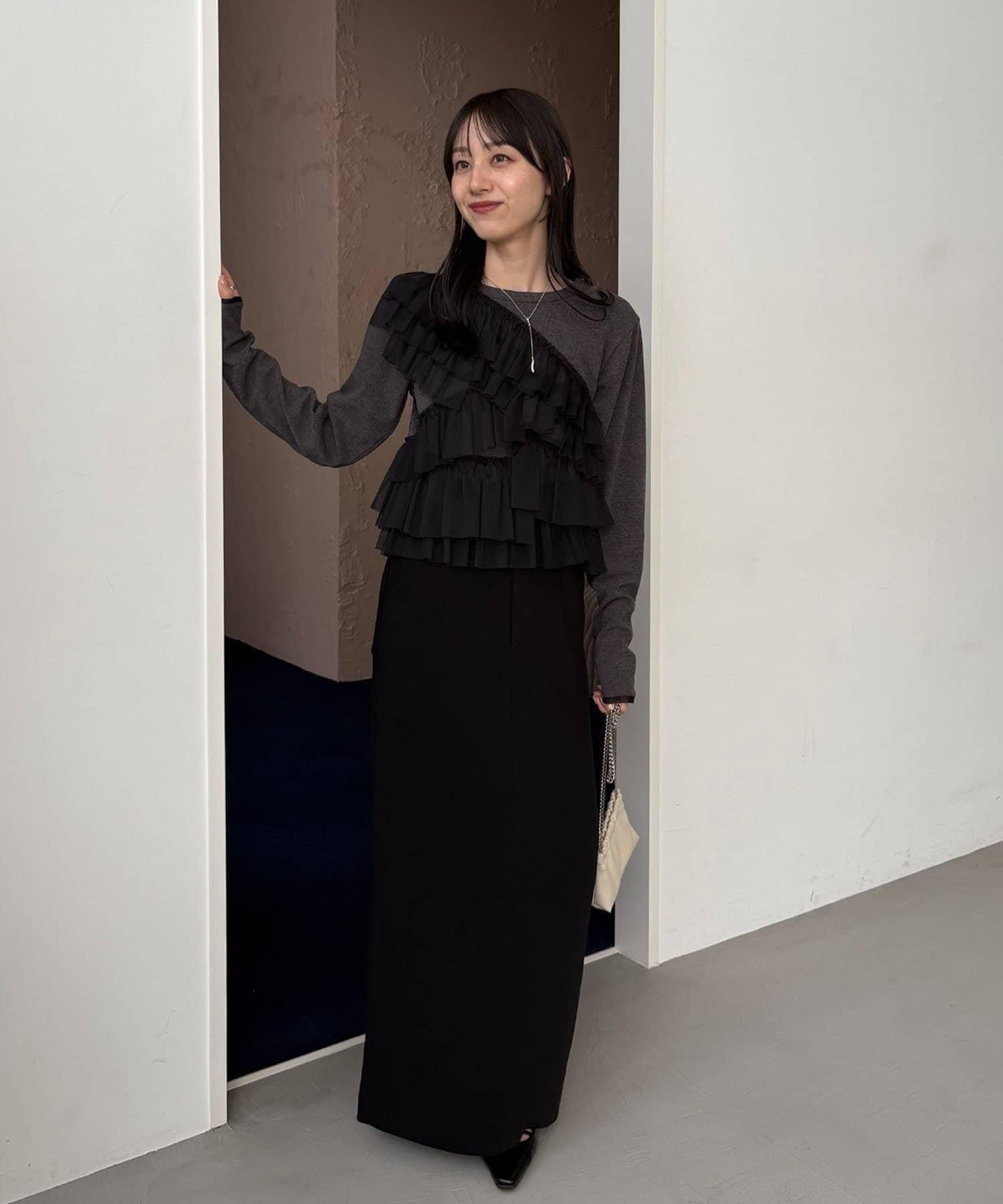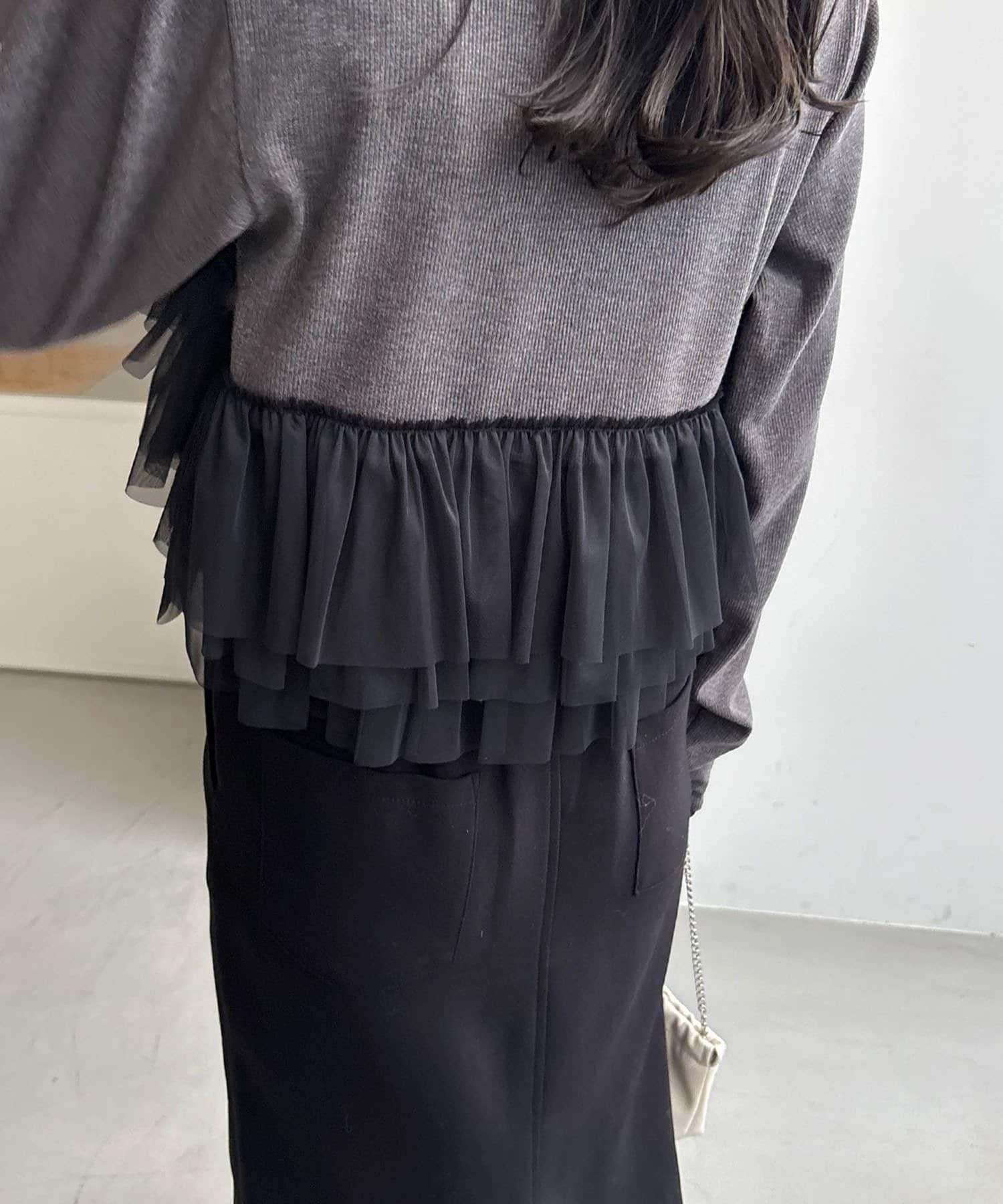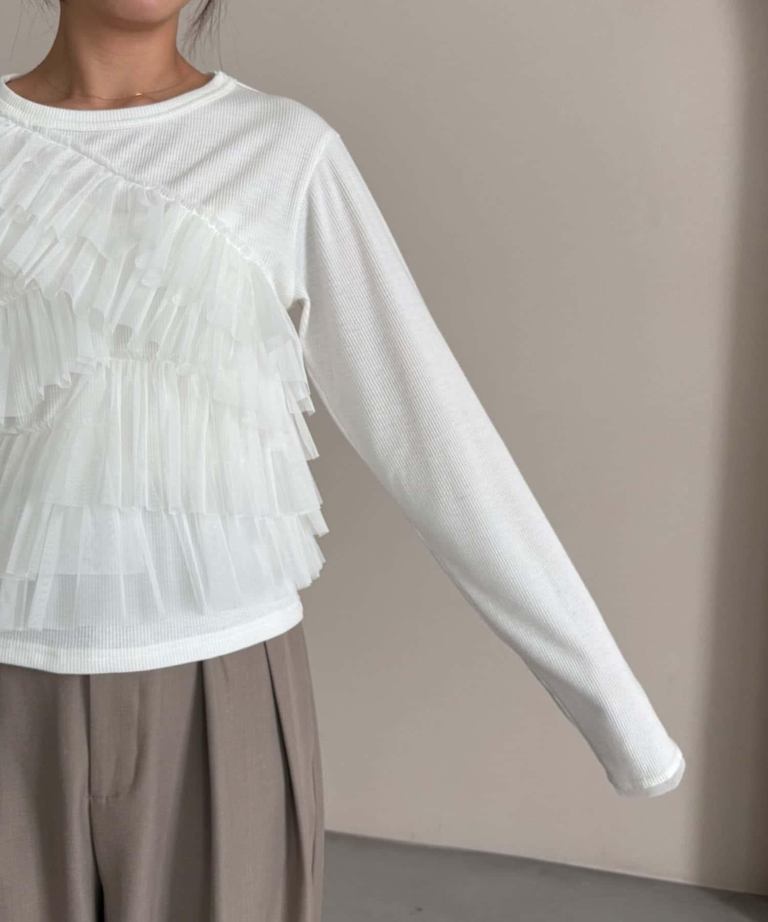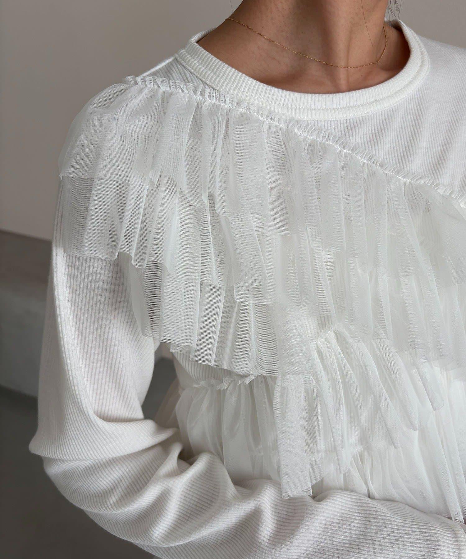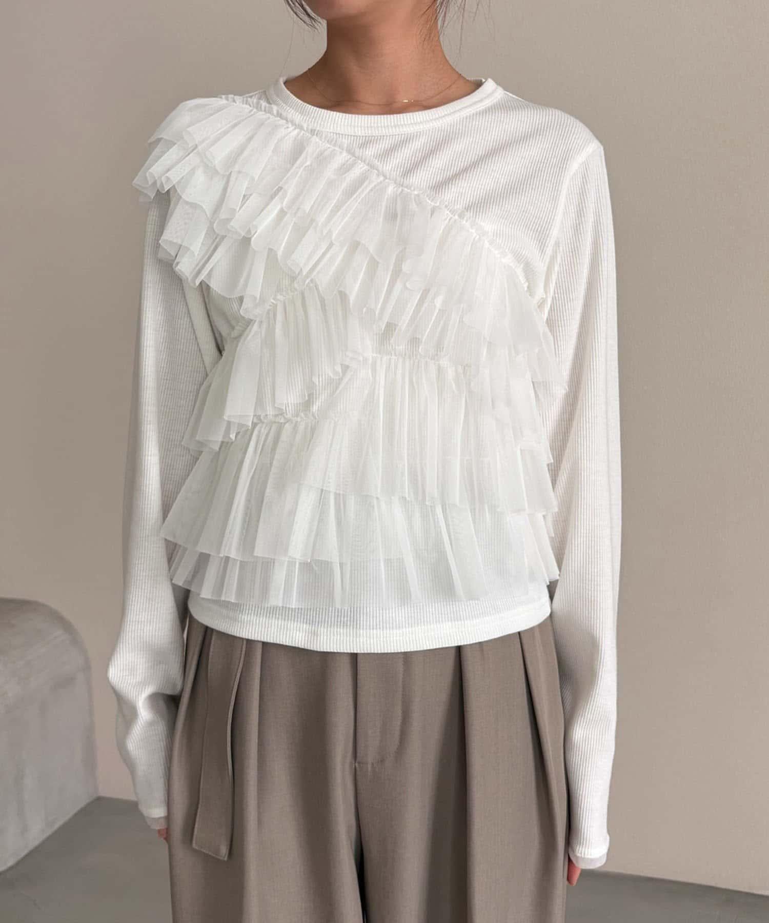 長 T,不對稱荷葉邊薄紗對接。