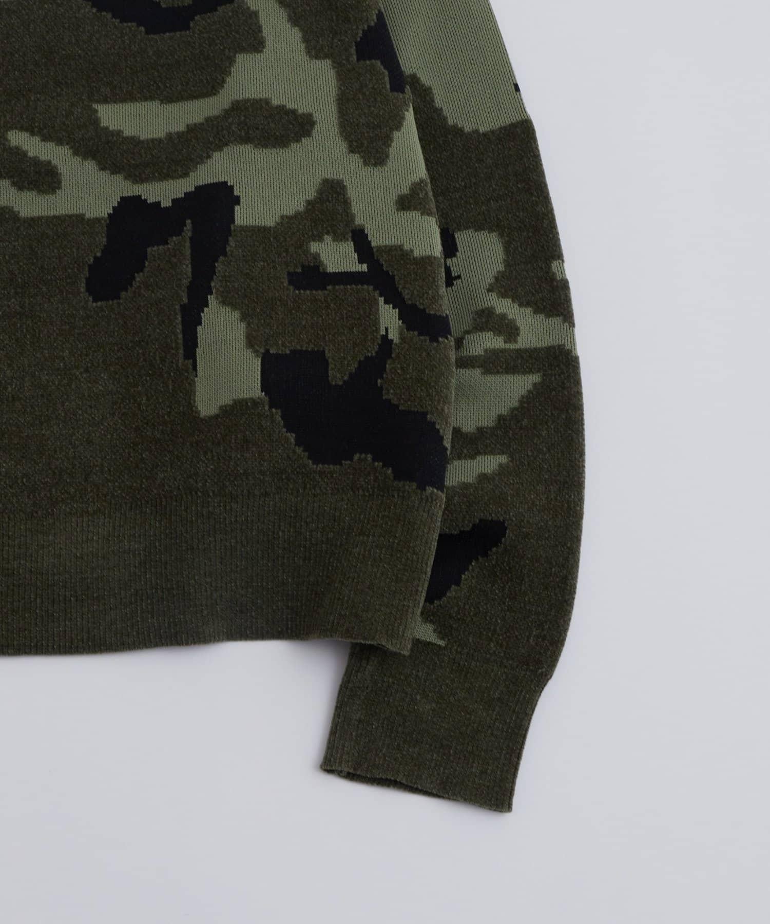 這款針織衫具有獨特的材質感和時尚的迷彩圖案,能突出你的協調性。