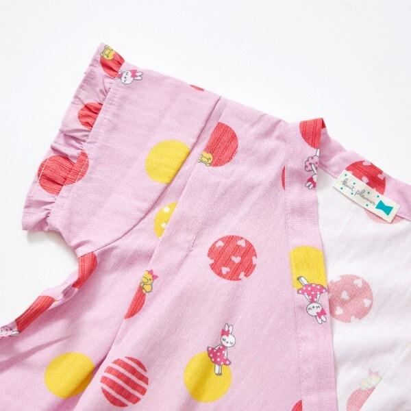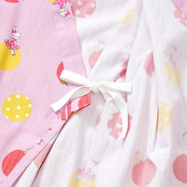 帶有圓點印花和咪咪兔圖案的可愛人字拖。袖口和腳部的褶皺設計讓它充滿了少女氣息♪您還可以將它與相同圖案的浴衣或睡衣搭配在一起。它輕薄舒適,非常適合節日和煙花節等夏季活動,也適合浴後穿著或作為家居服。還建議用於慶祝出生。