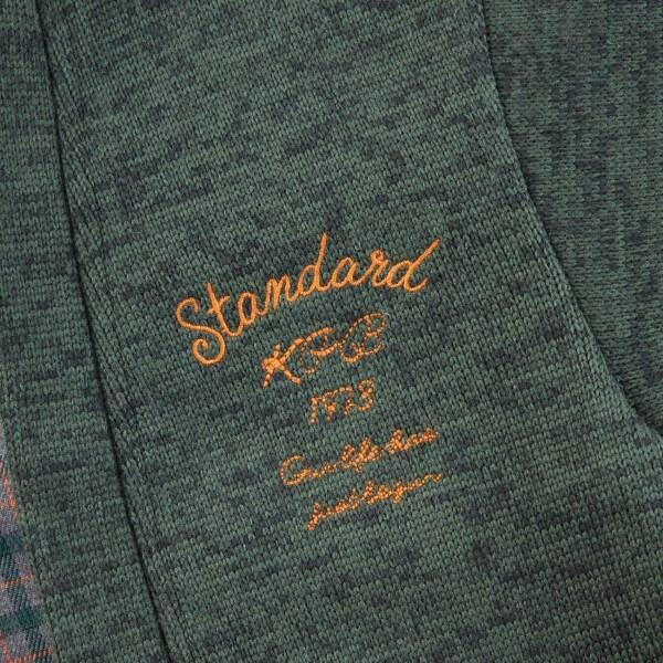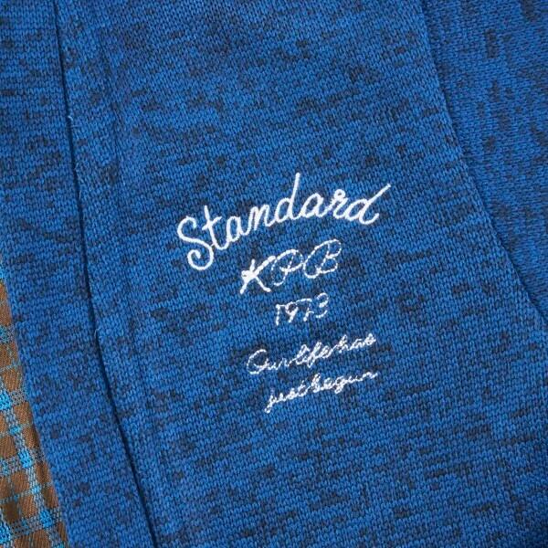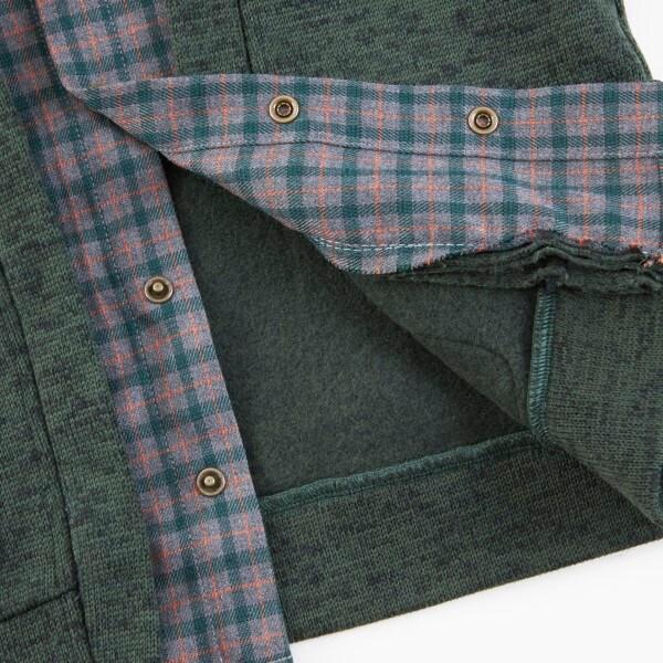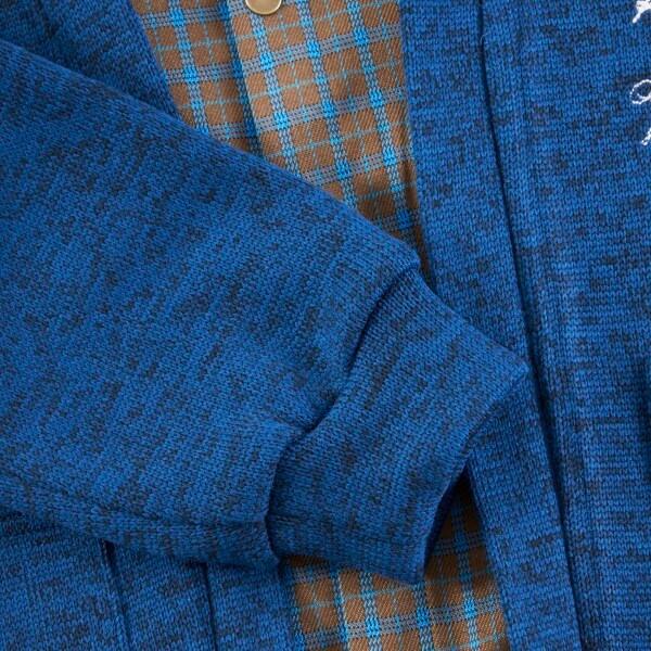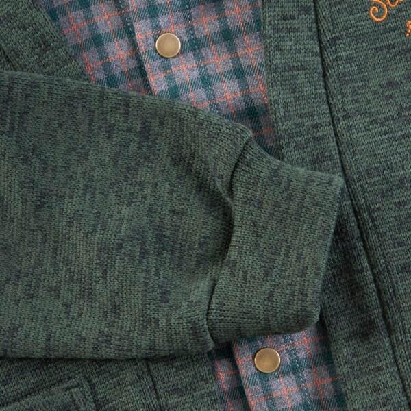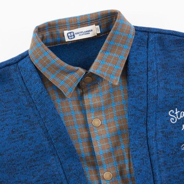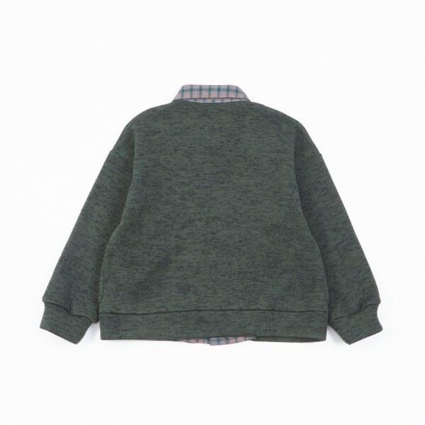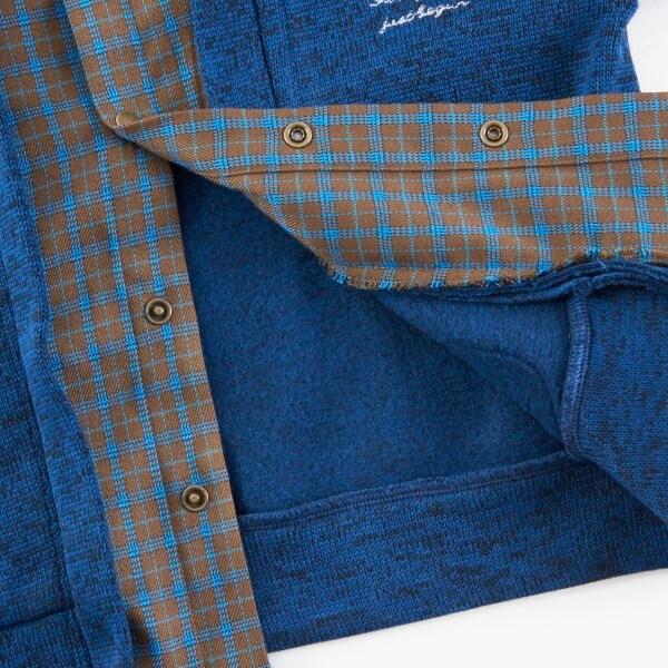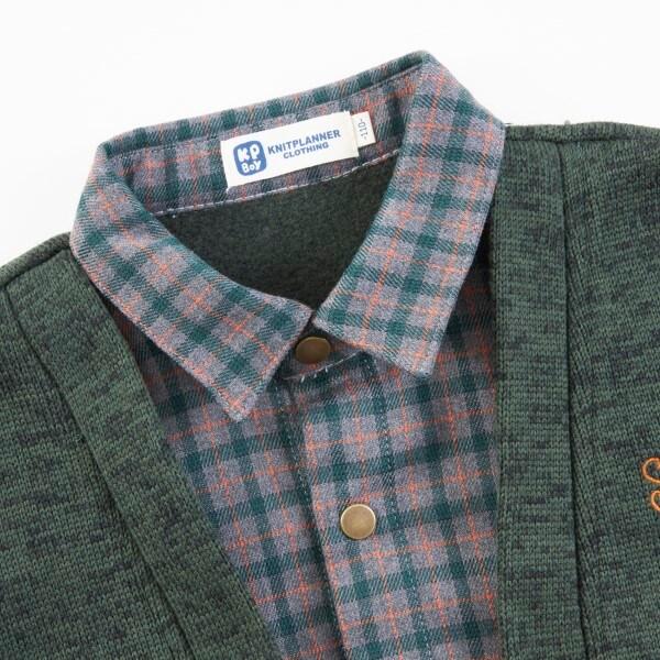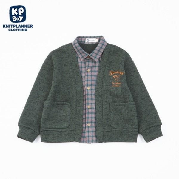 層疊式羊毛針織開衫,內搭格紋襯衫。胸前精緻的刺繡是點睛之筆。面料輕薄保暖。推薦單品。