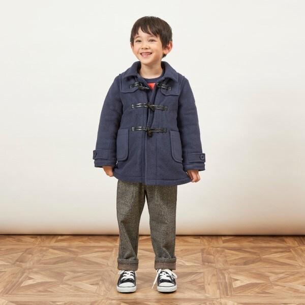 KPBOY男童羊羔絨內襯格紋牛角扣大衣(90~130)