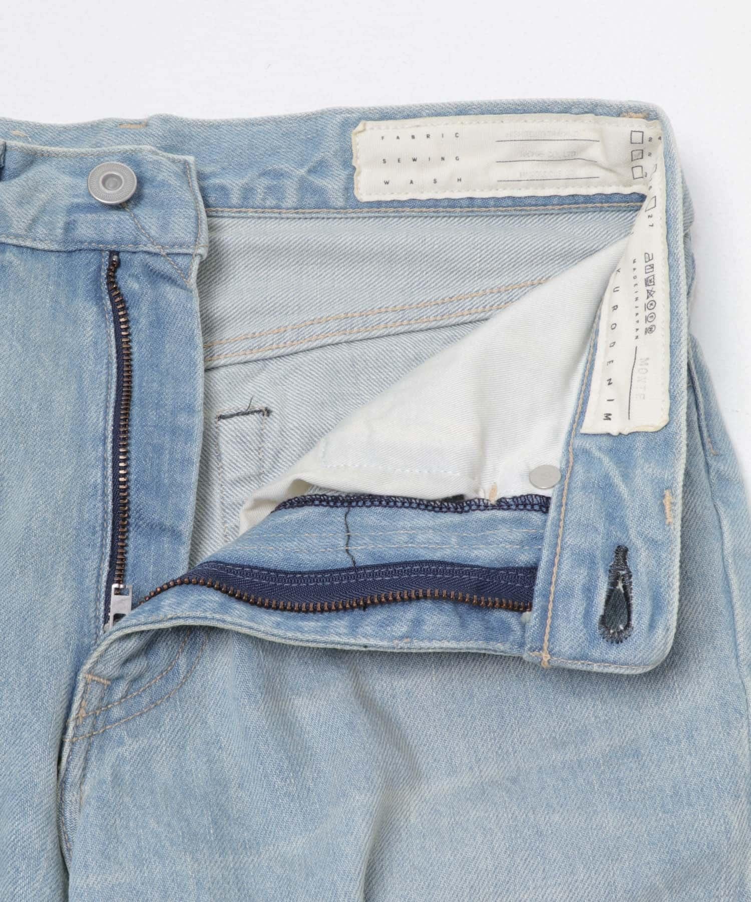 為了再現逼真的舊衣外觀,面料經過特殊處理而變質。染色不均勻、斷線、布料破損等都是產品的特徵。