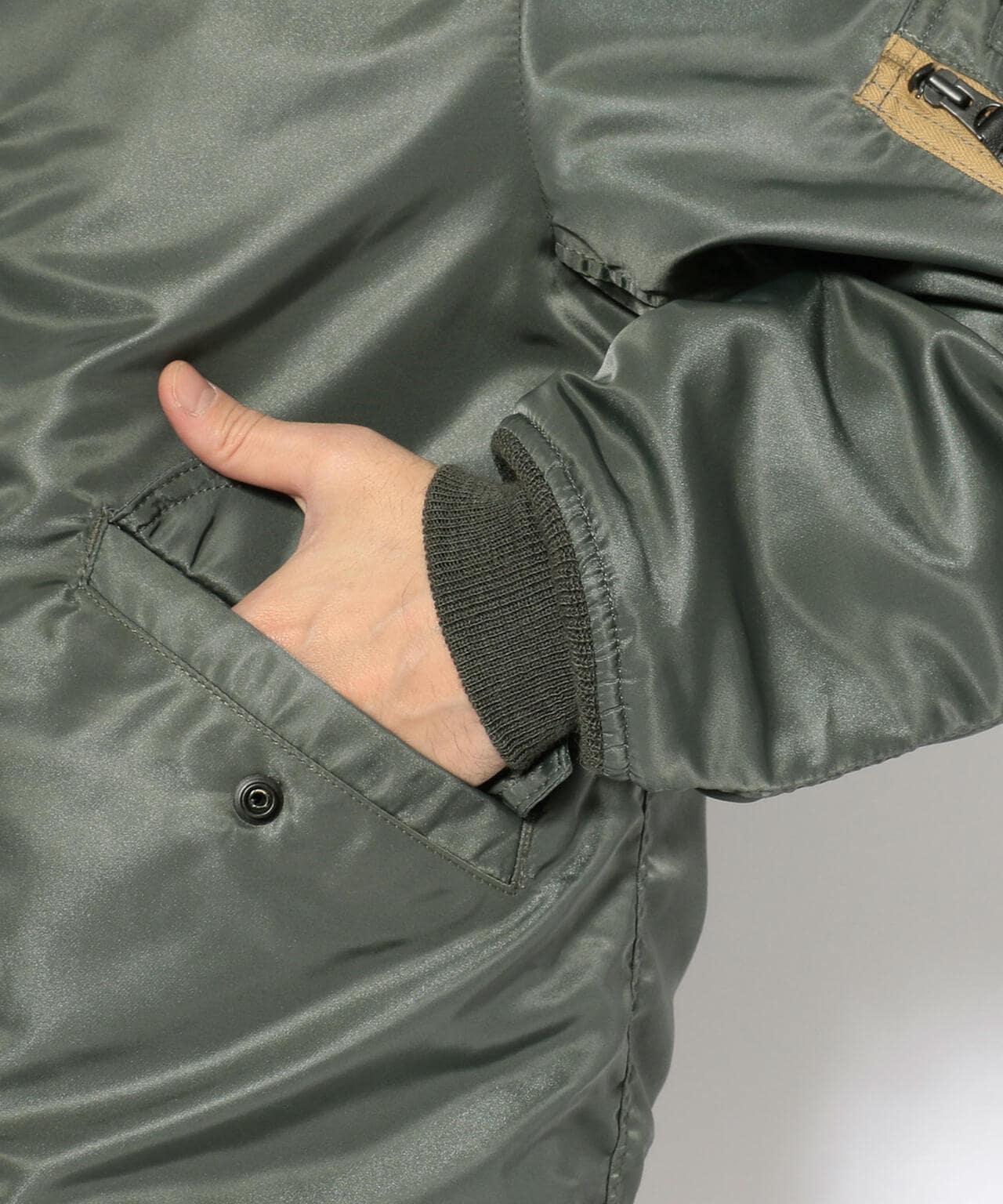 VINTAGE FLIGHT JACKET]20世紀50年代初採用的L-2B,再現了朝鮮戰爭後出現的改進型號 "SPEC.MIL-J-7448A "的早期型號。內襯通常使用人造絲和羊毛混織材料,但 AVIREX 將材料改為人造絲棉緞,並進行了整理,使其可以長期穿著且易於保養。AVIREX] AVIREX 已將多款飛行夾克作為官方用品交付,還製作了將飛行夾克的元素與高功能性相結合的剩餘服裝,以便向普通市場傳播其吸引力。該品牌精益求精的設計和懷舊風味享譽全球。
