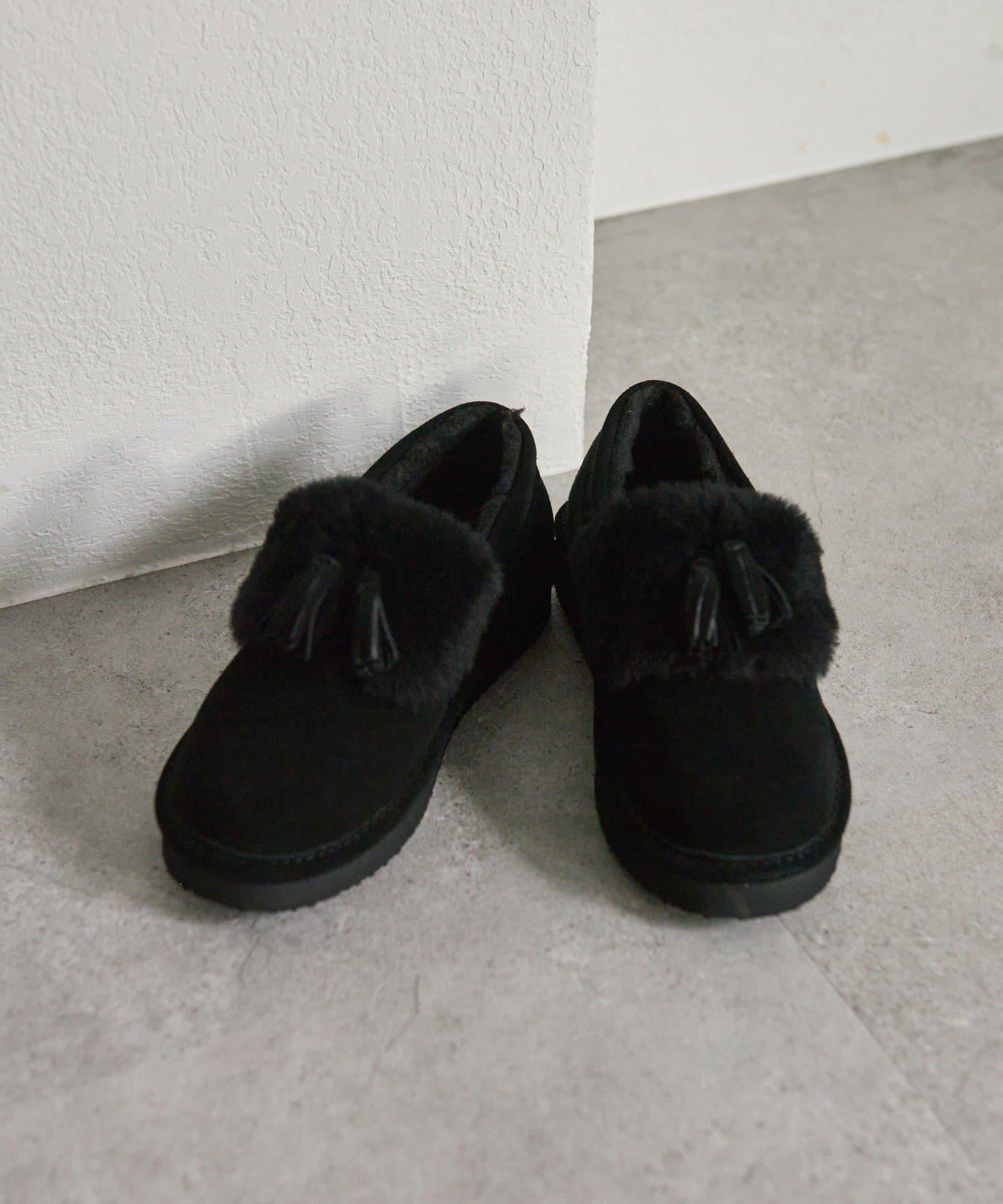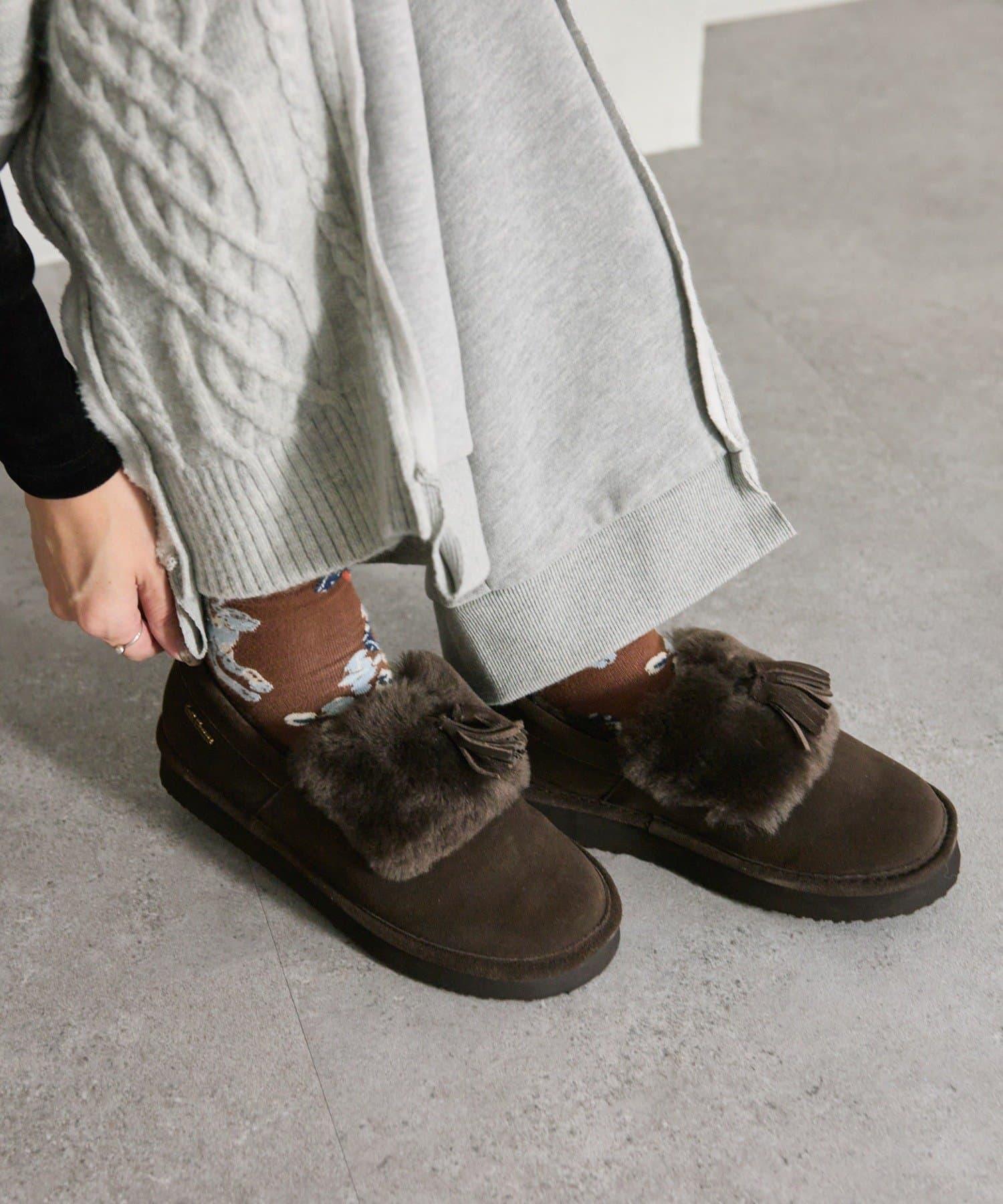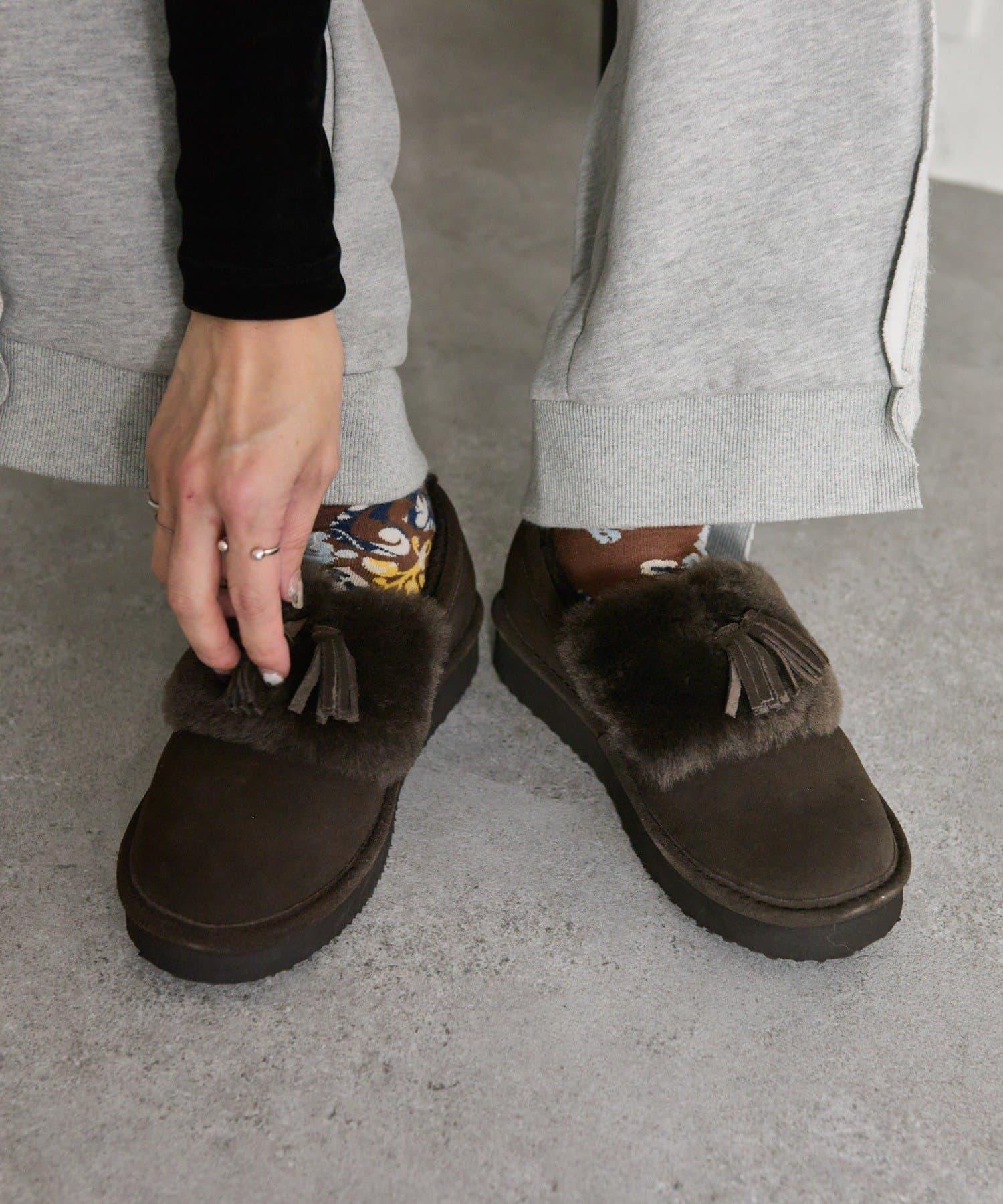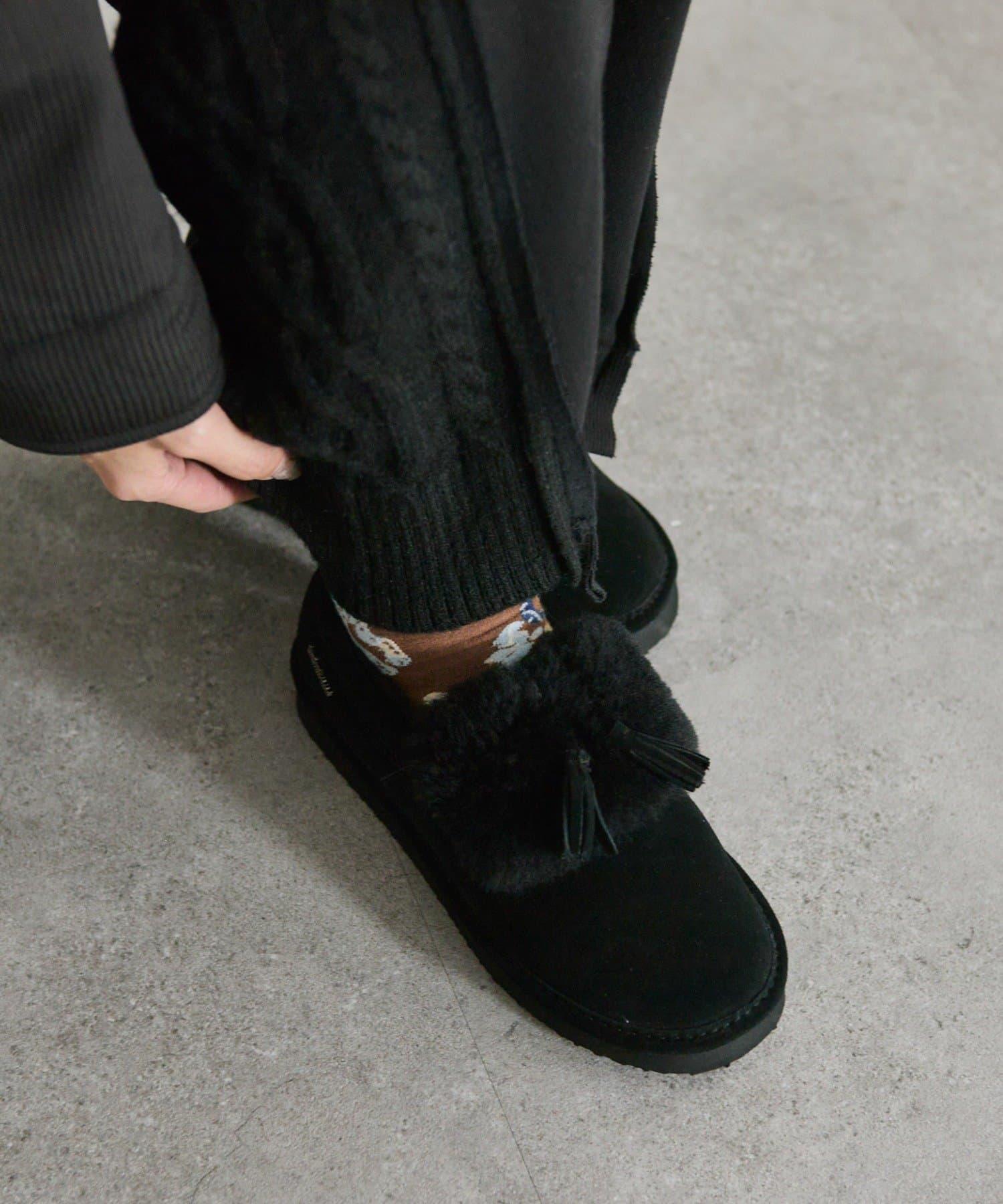 鞋舌部分由羊皮製成,並飾有麂皮流蘇。