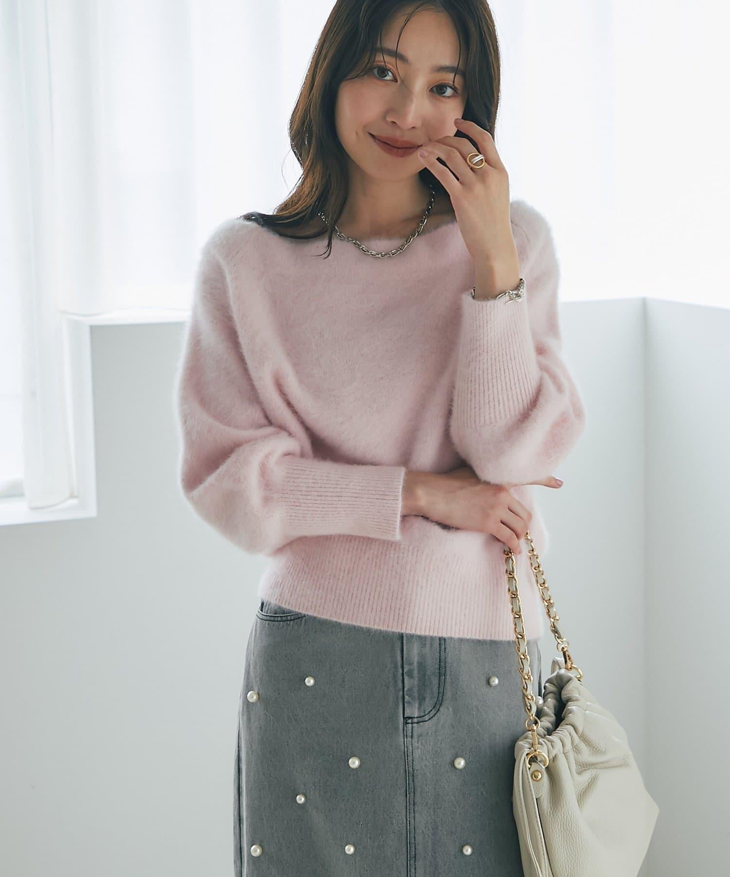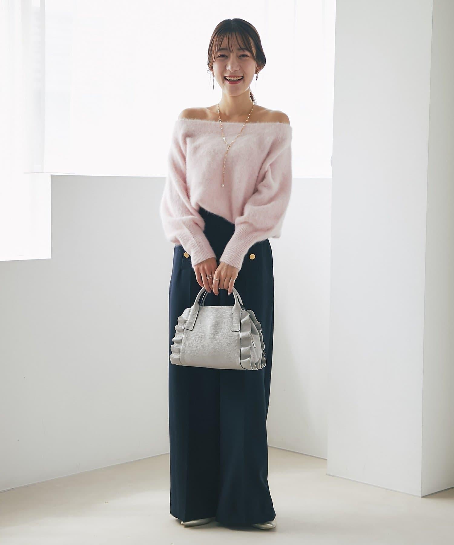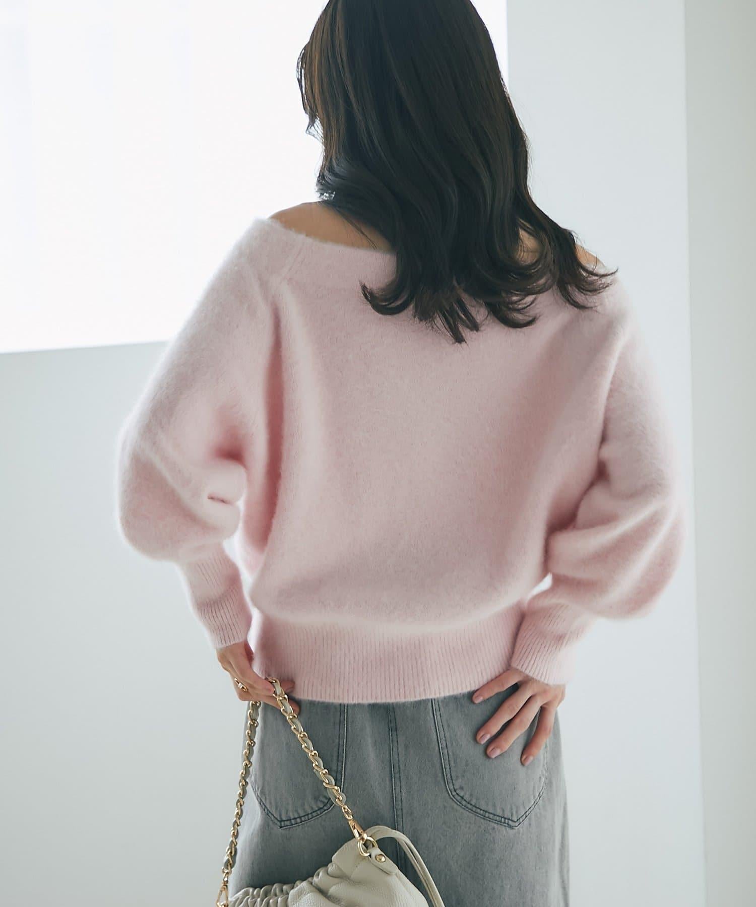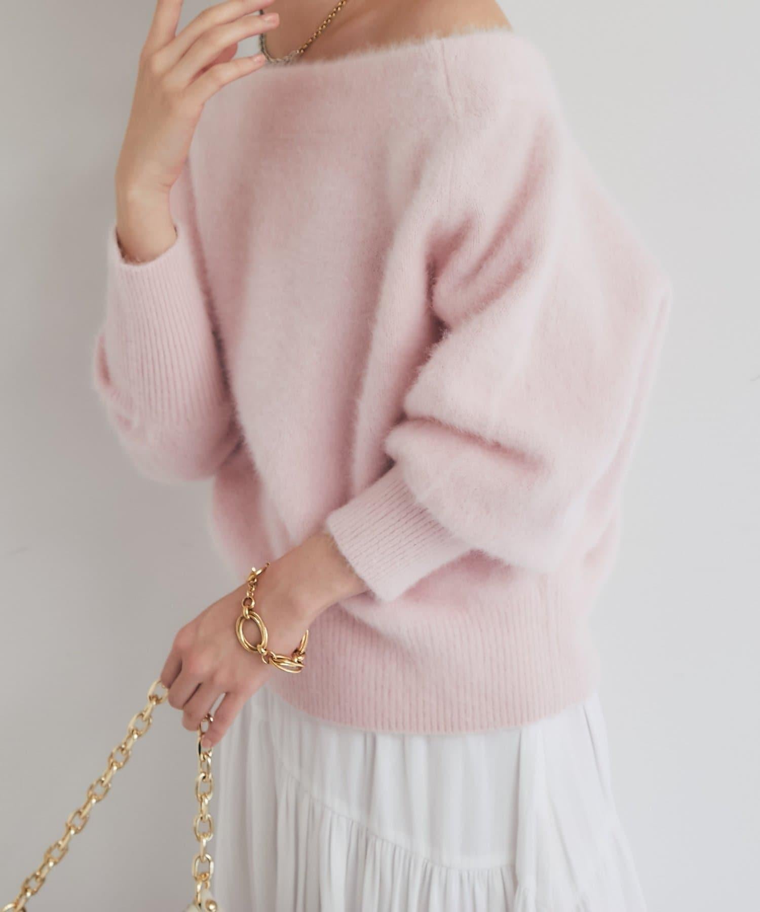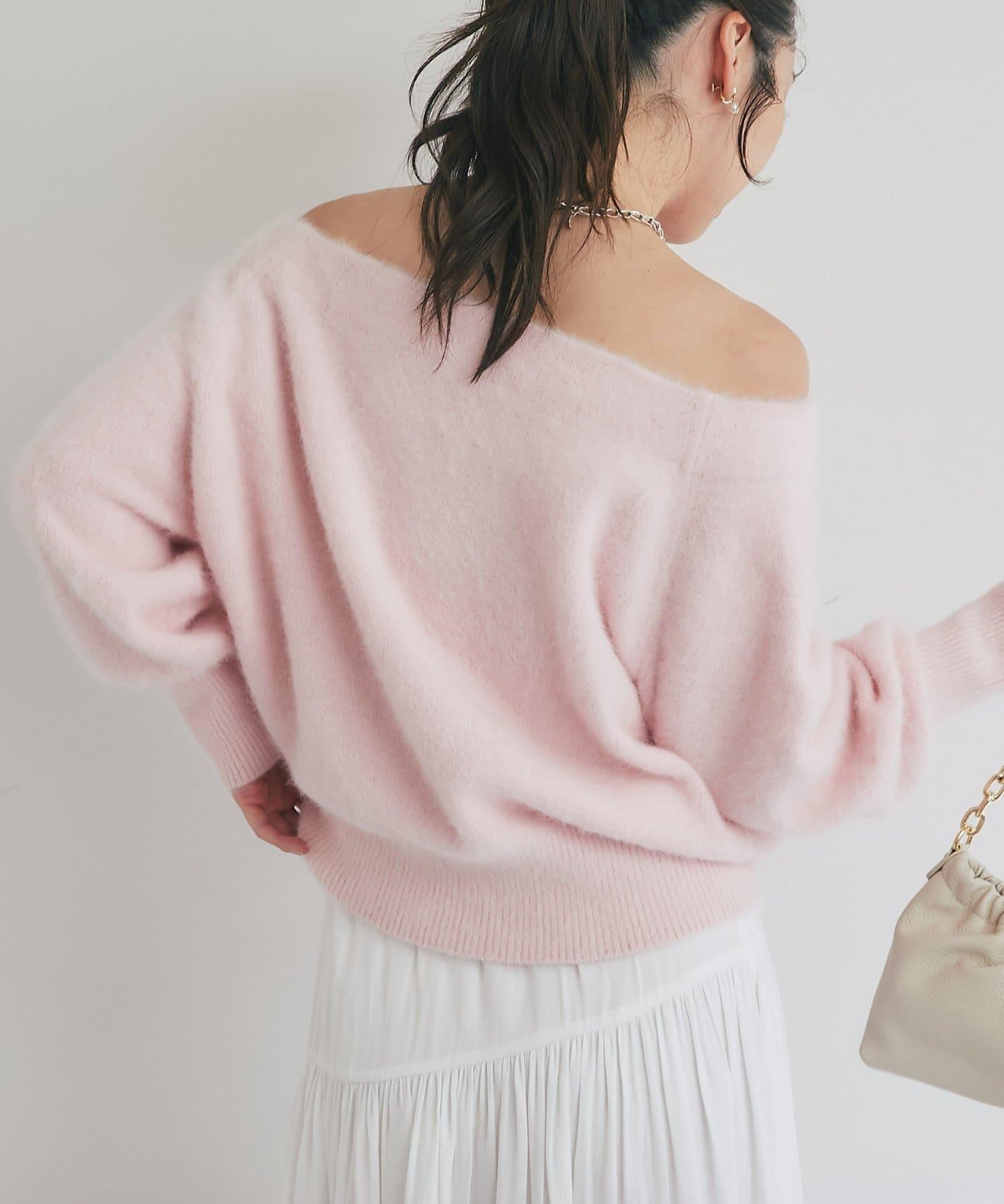 La boutique BonBon 毛感羊毛羊絨混紡露肩針織上衣
