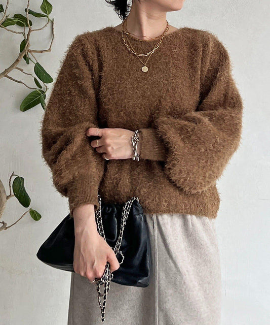 毛茸茸的狐狸混紡露肩針織衫,充滿女人味。