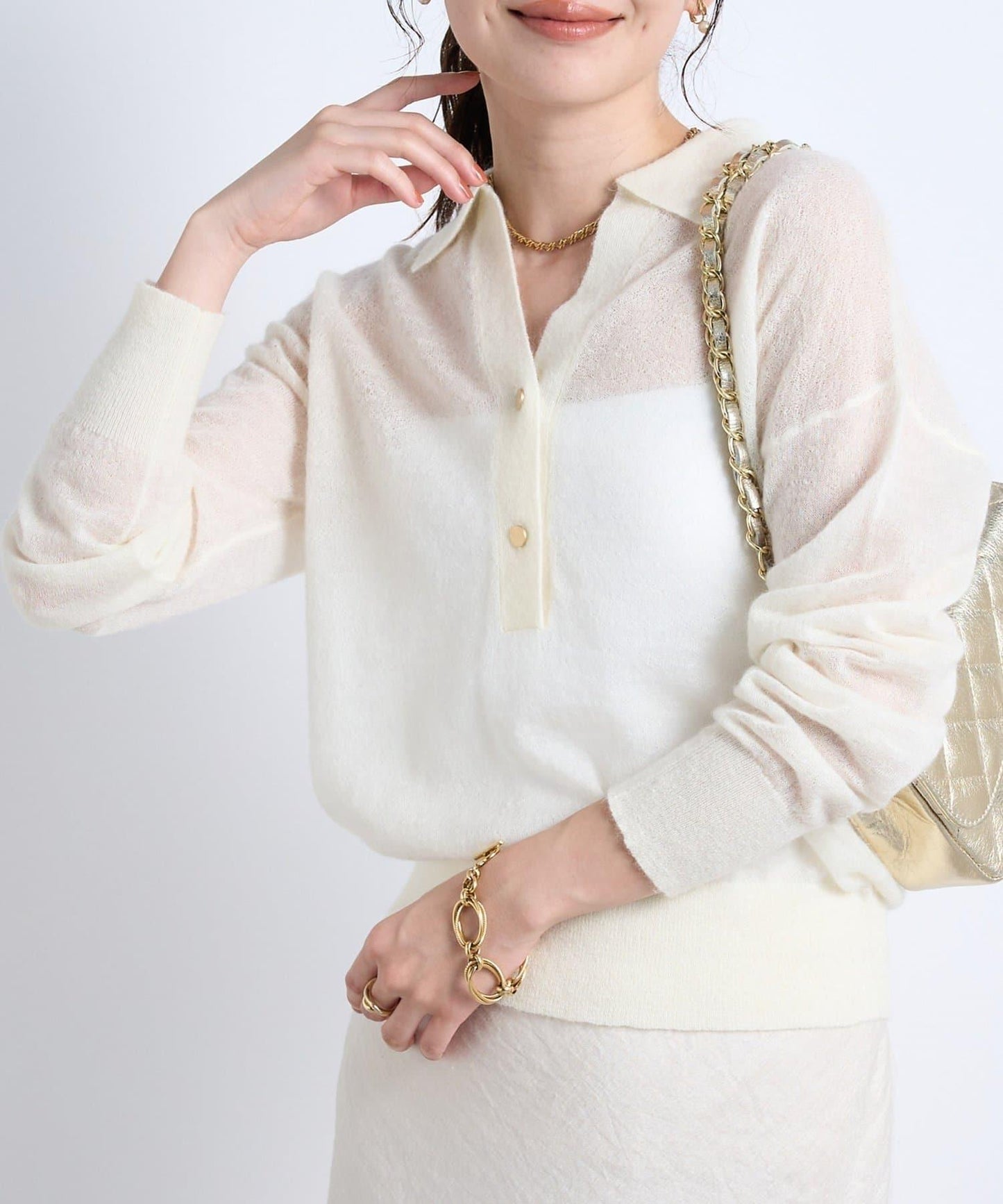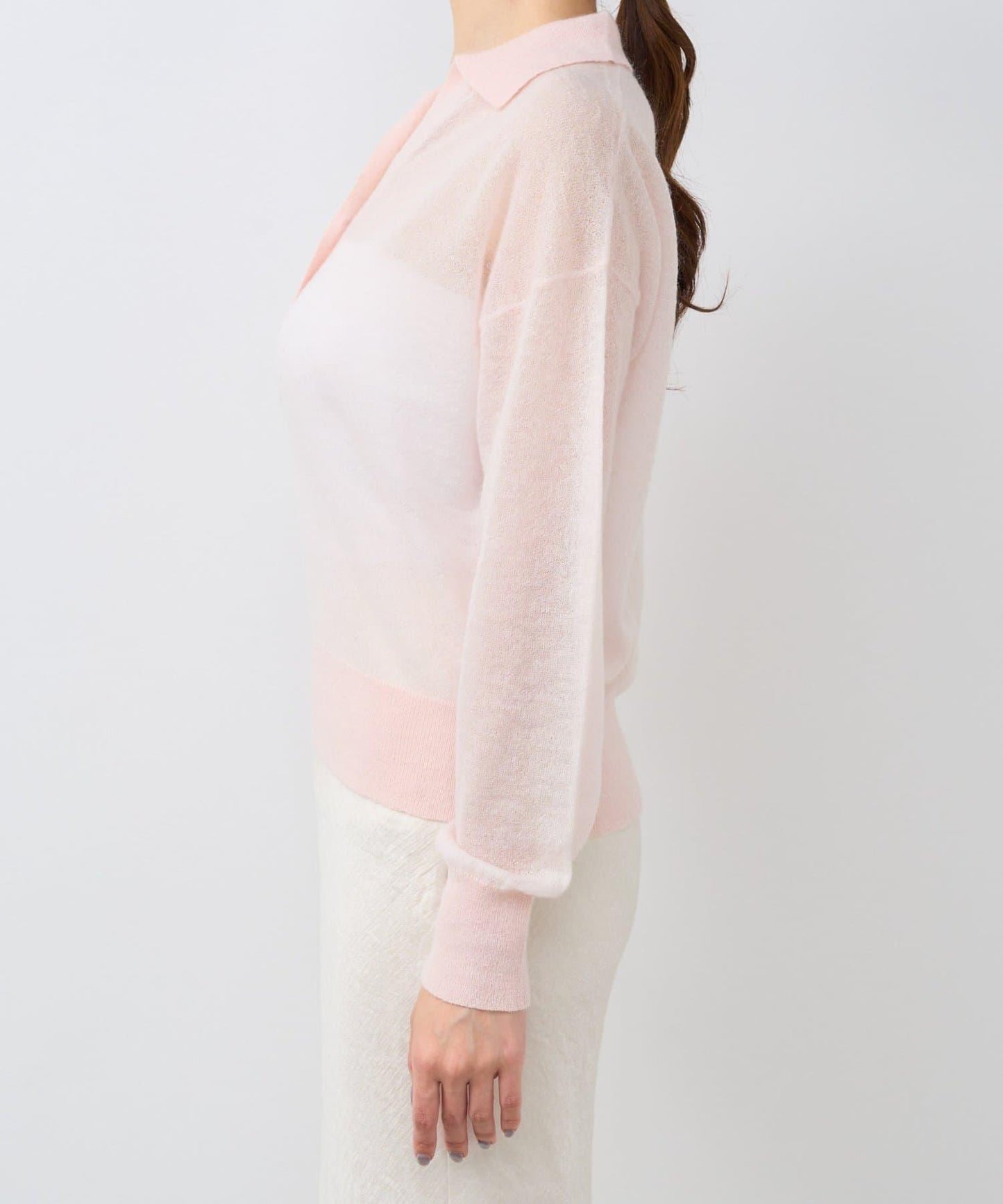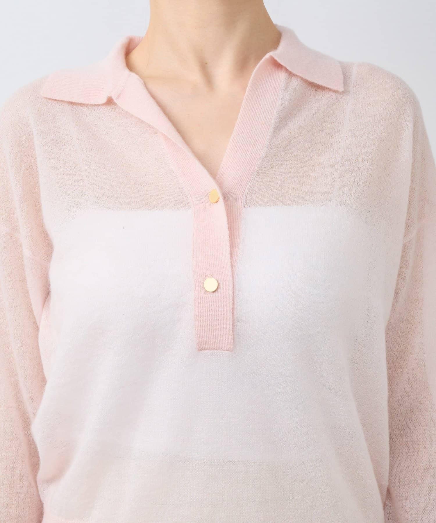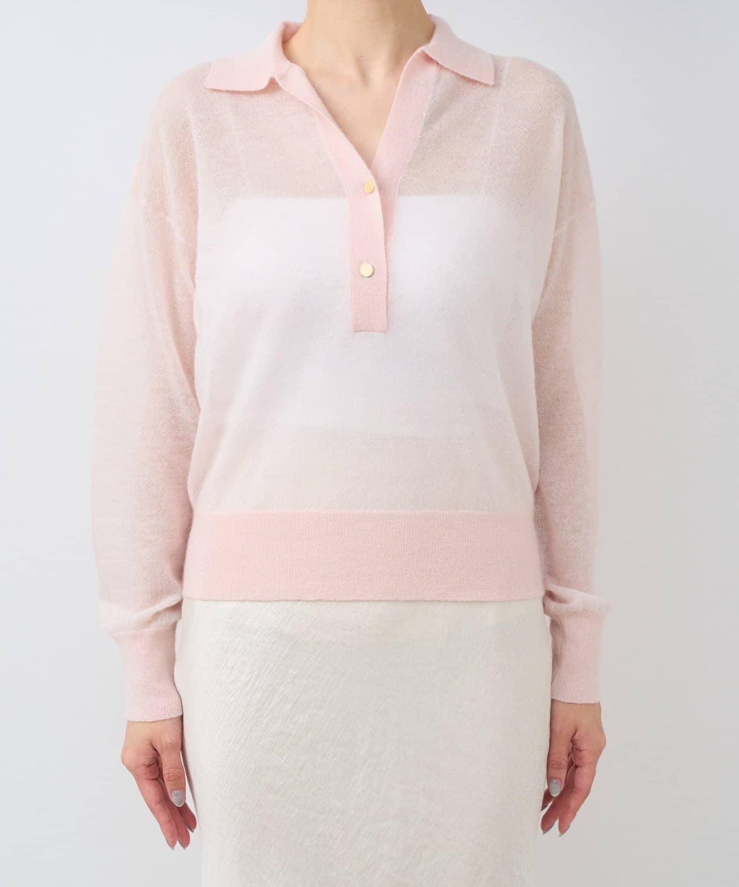 【La boutique BonBon】馬海毛混紡透視針織POLO衫