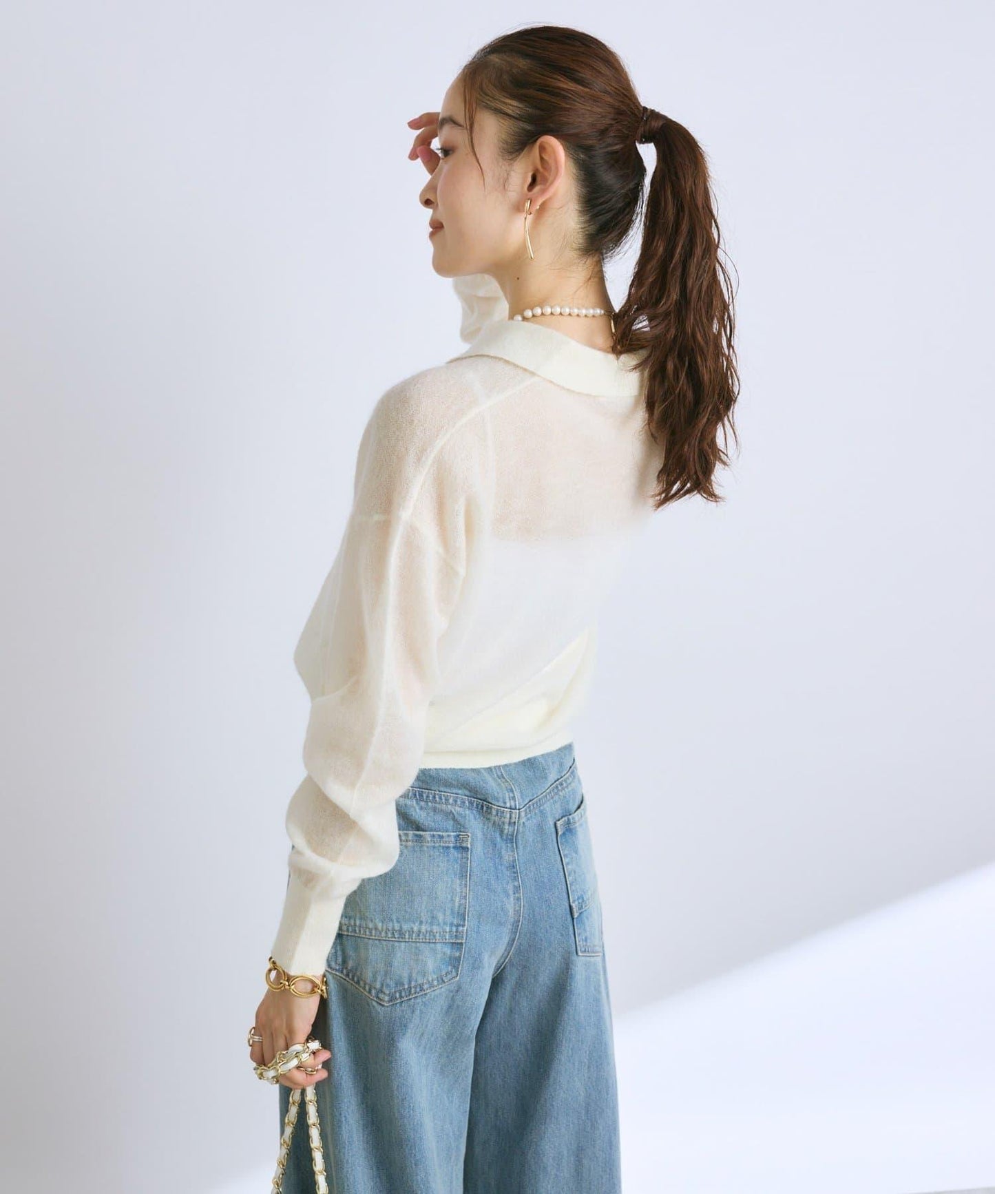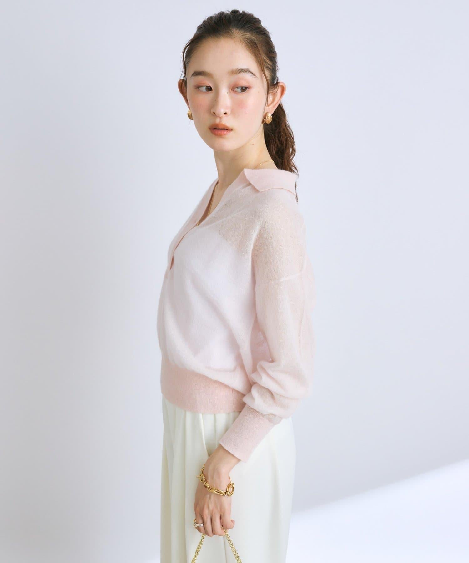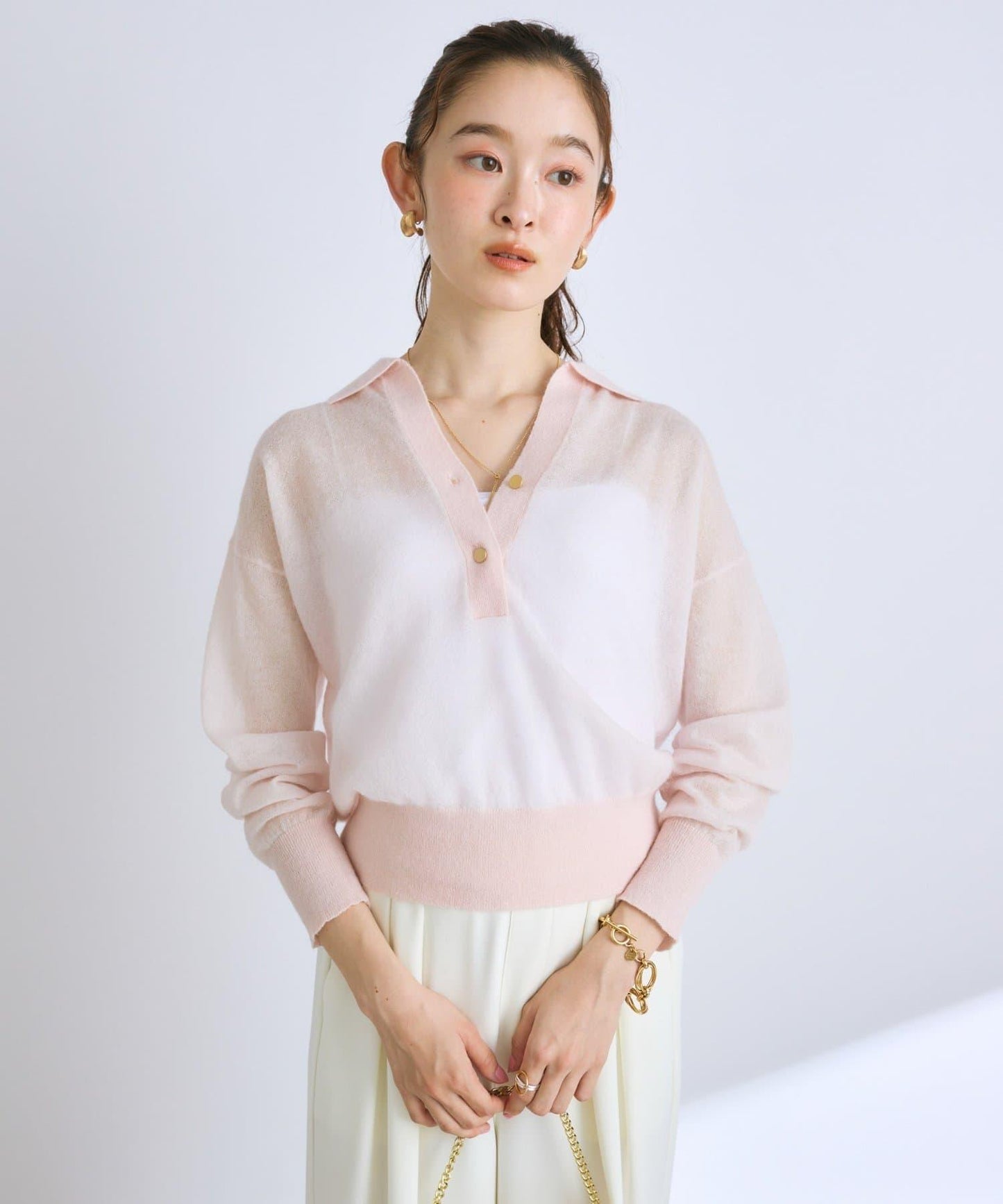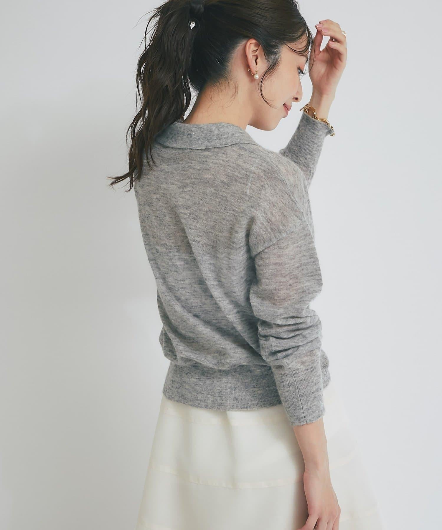 【La boutique BonBon】馬海毛混紡透視針織POLO衫