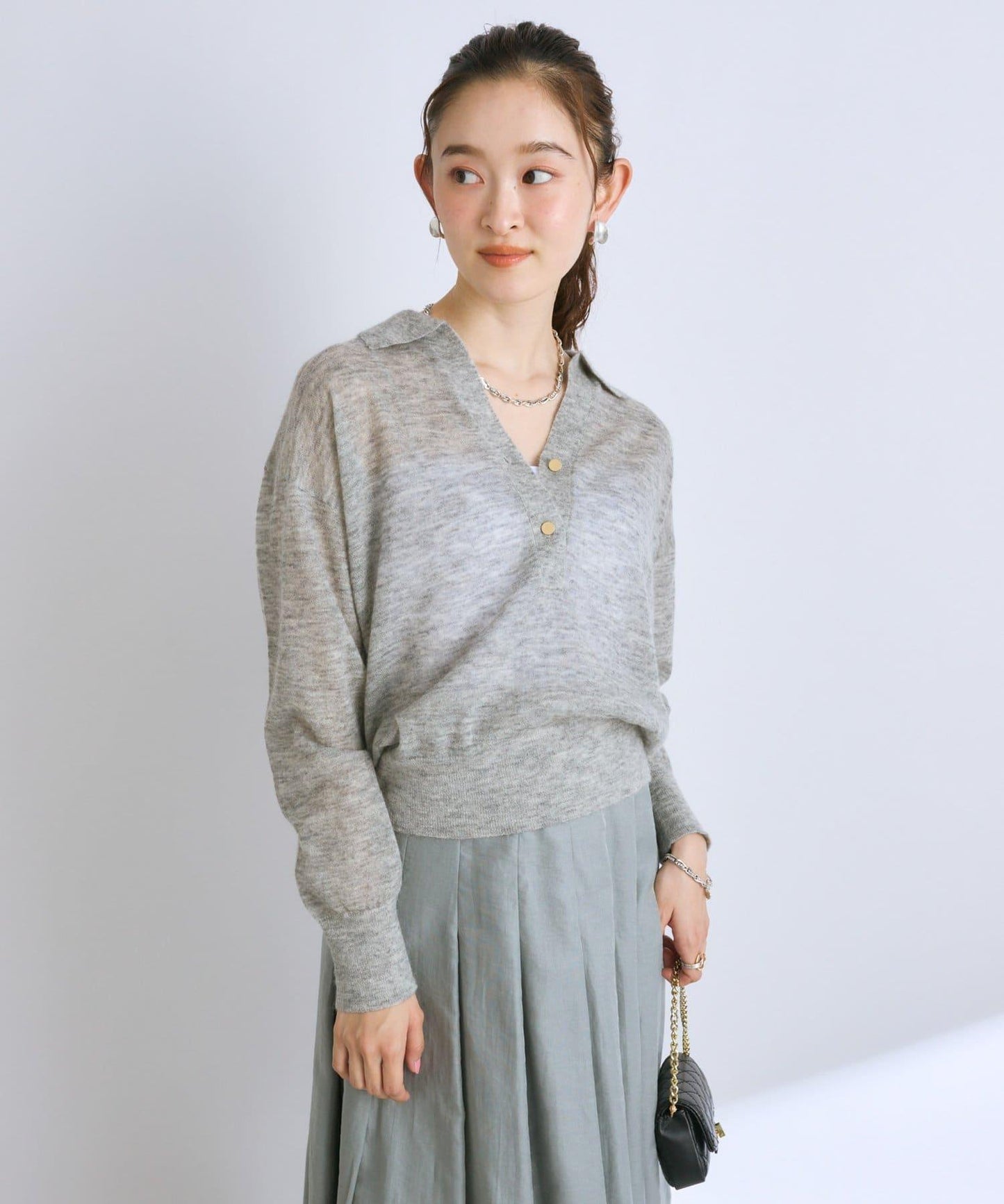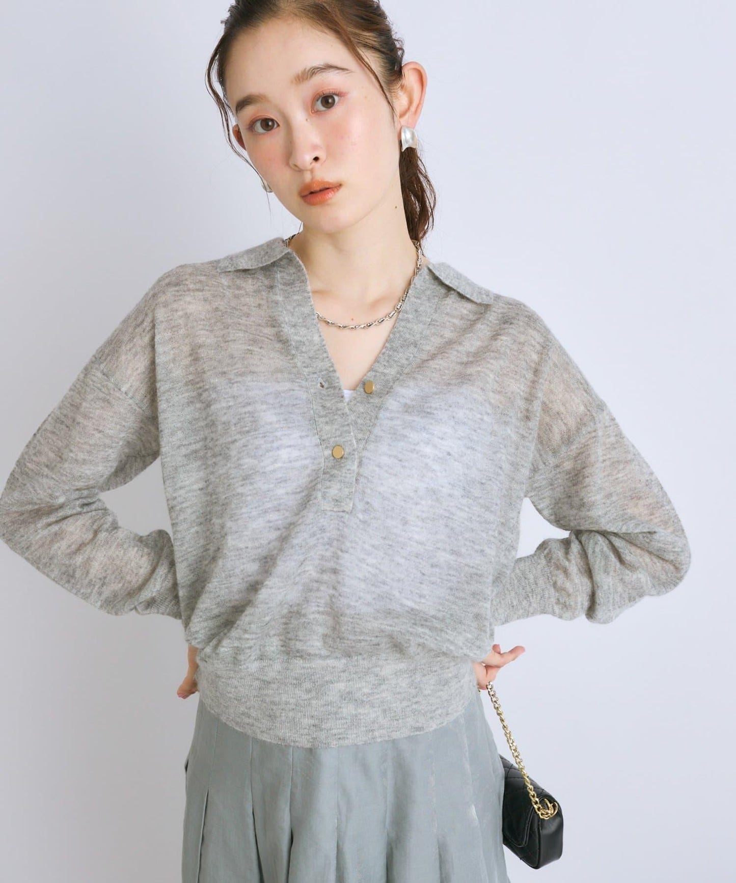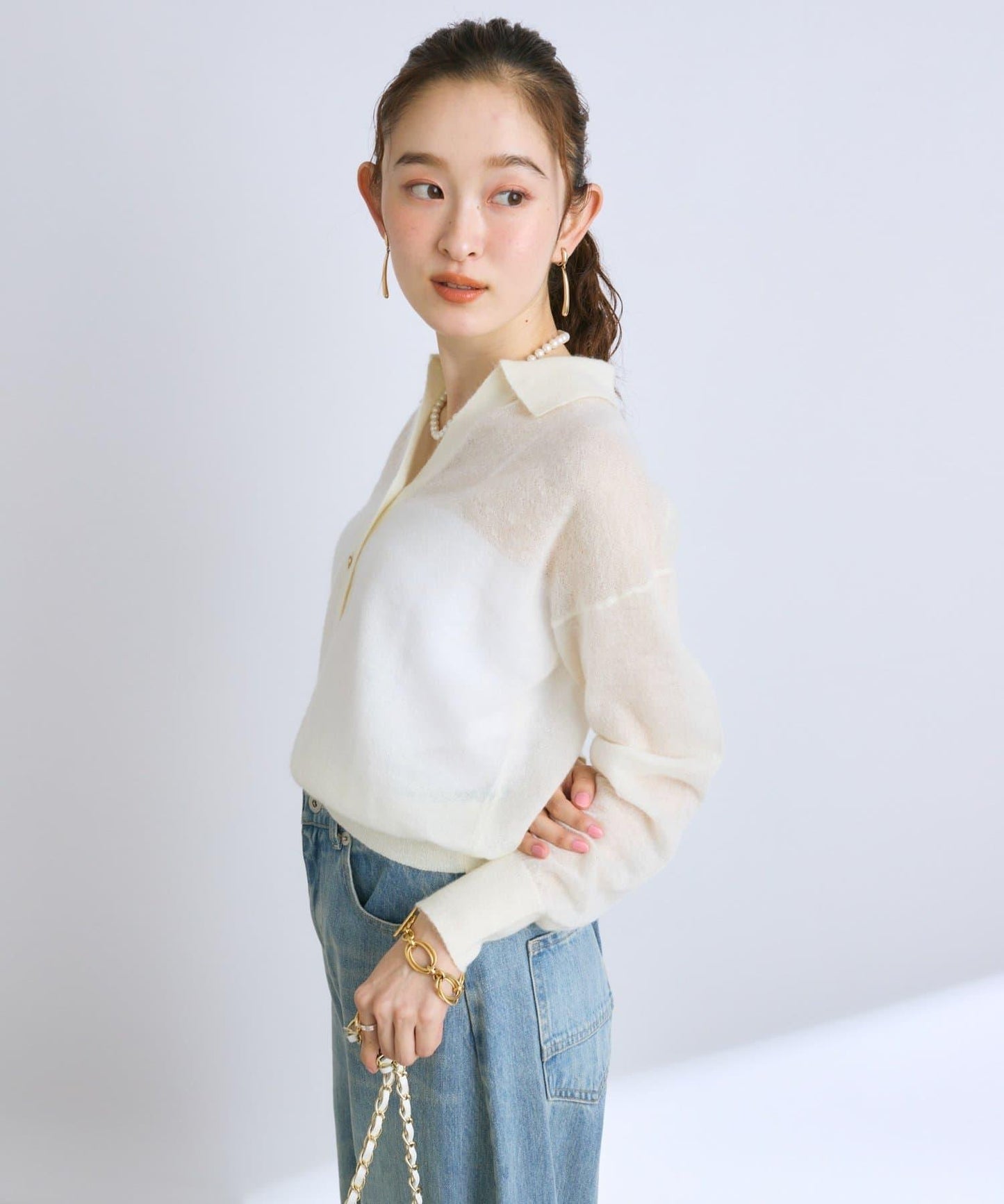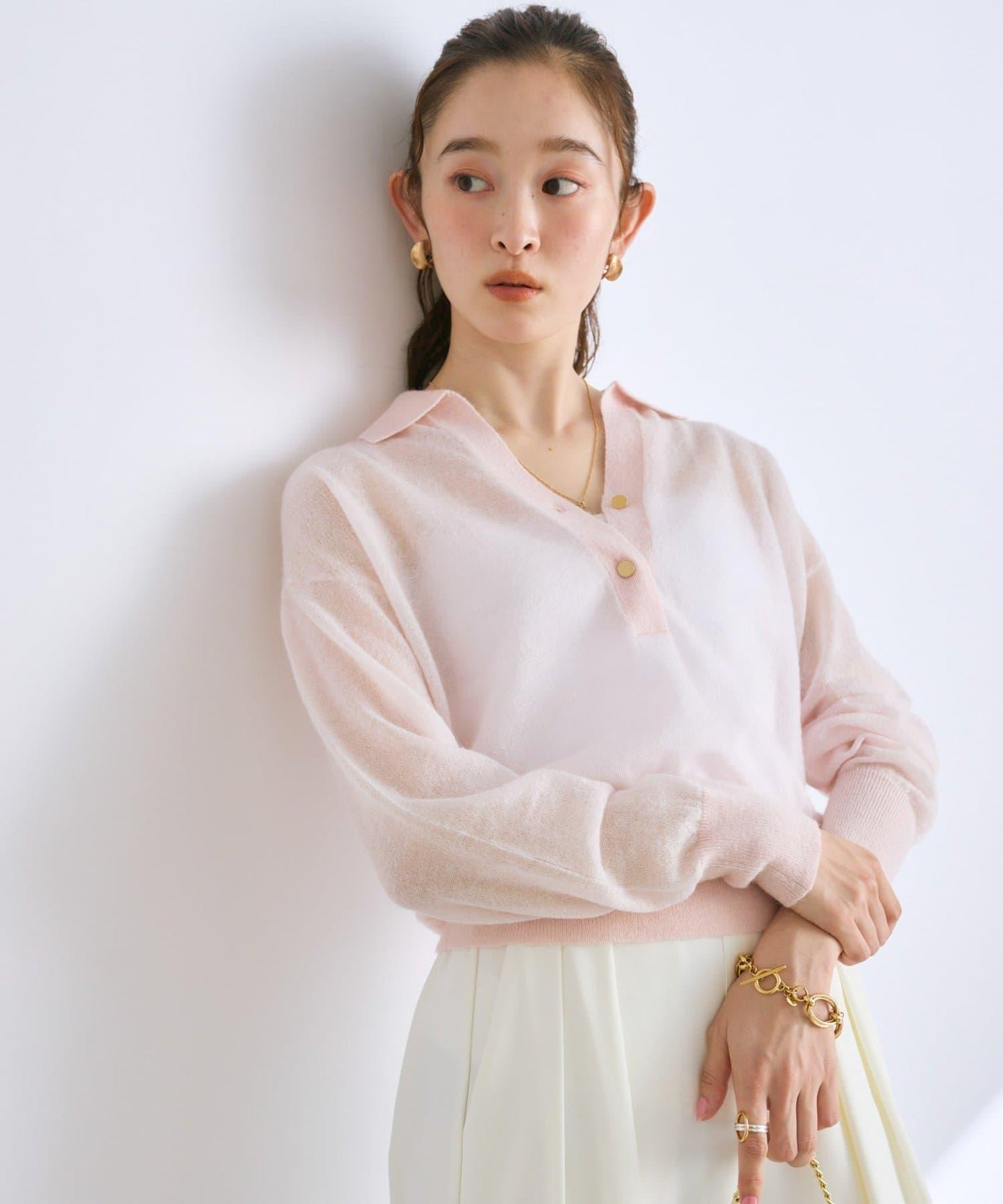 【La boutique BonBon】馬海毛混紡透視針織POLO衫