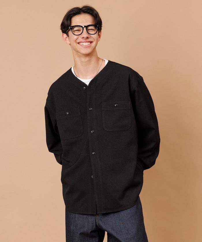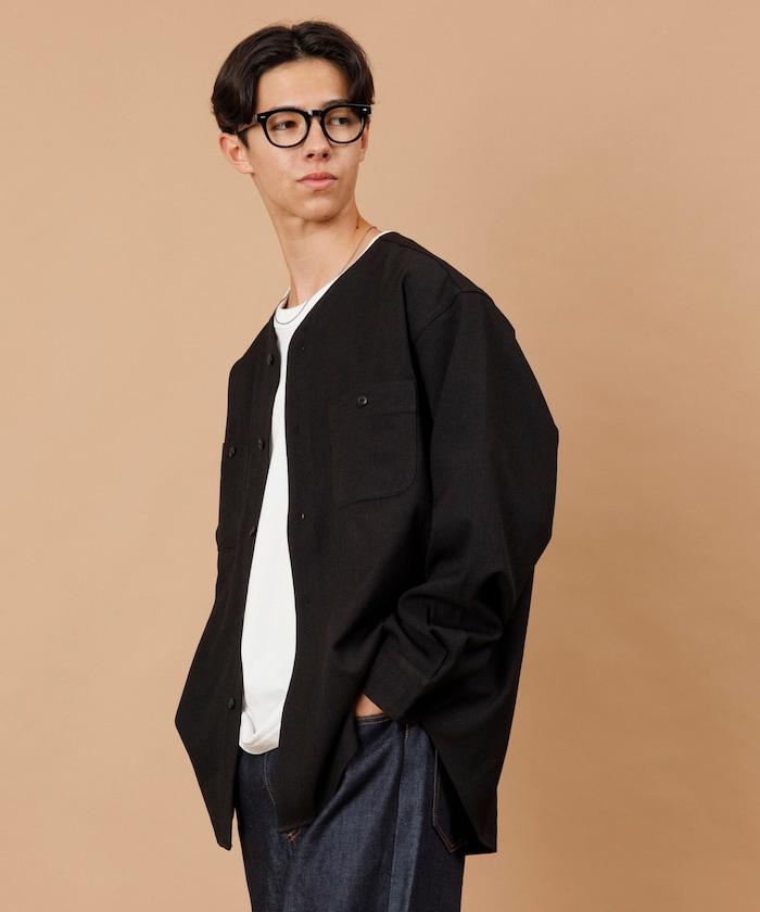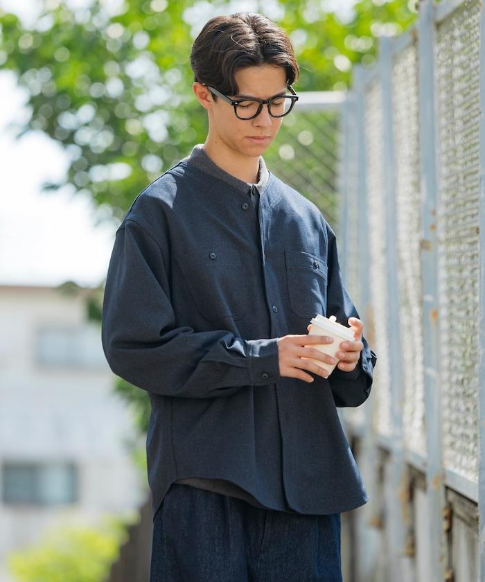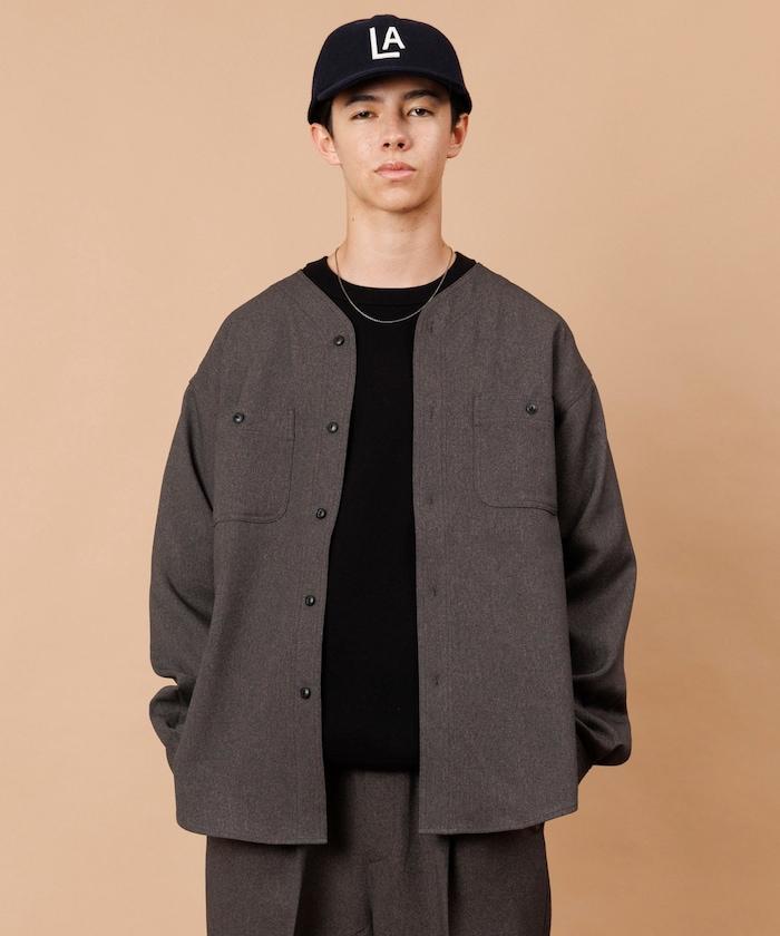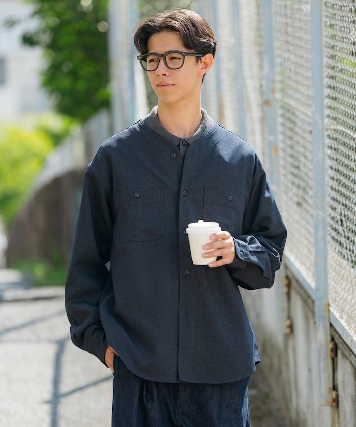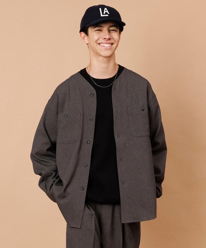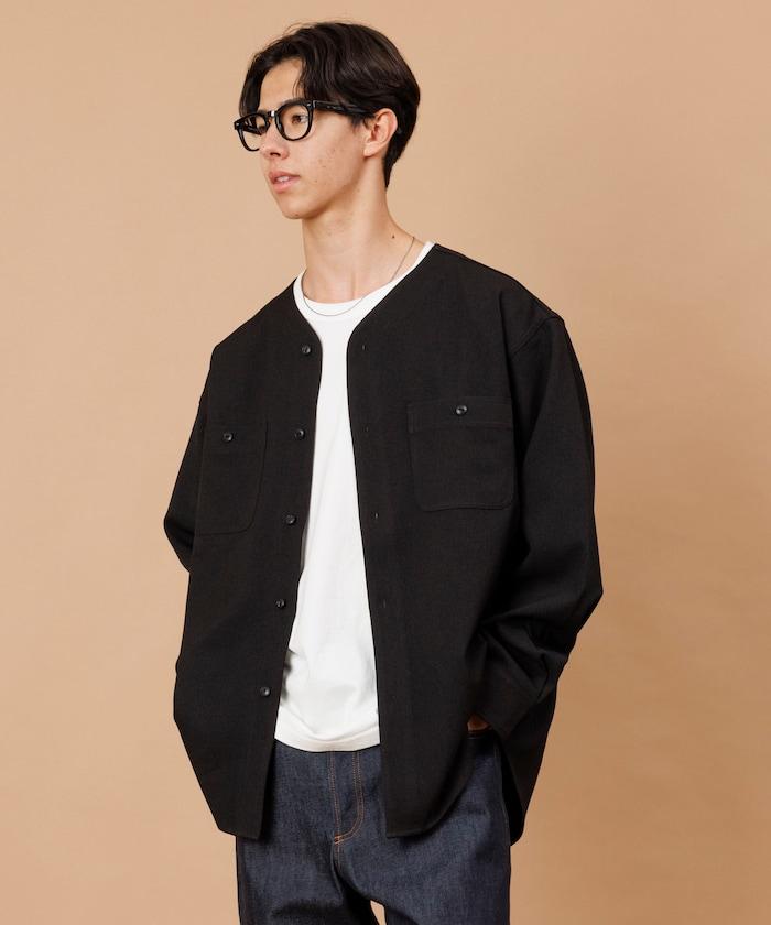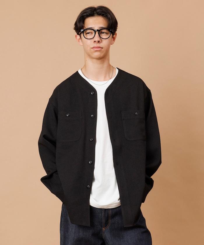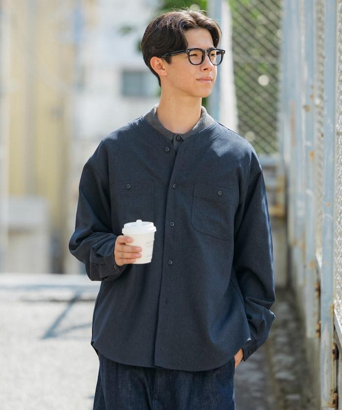 設計以復古工裝襯衫為藍本,採用了省略衣領的無領規格。穿上它就像穿上了一件開衫,這種高度的多功能性非常吸引人。