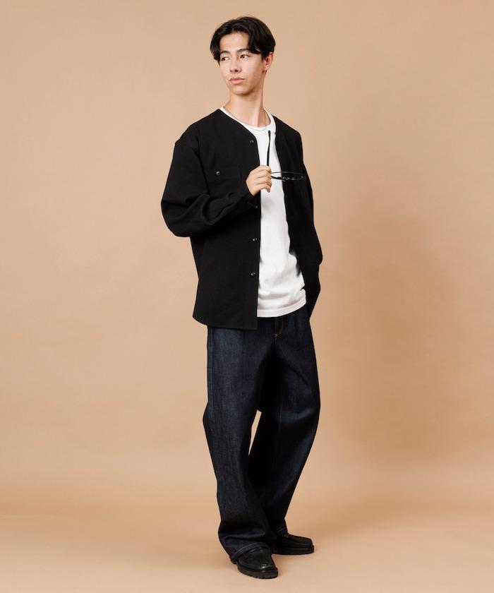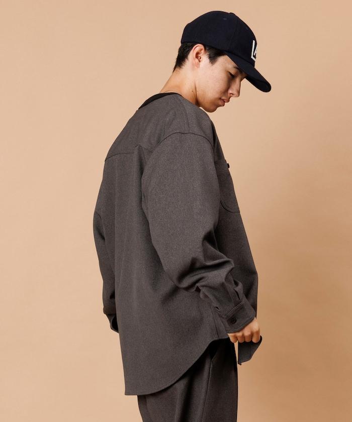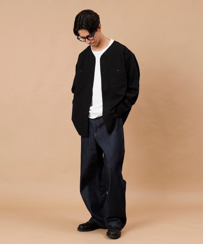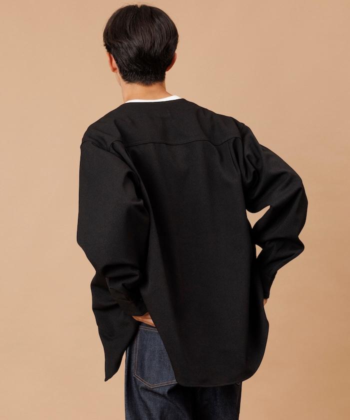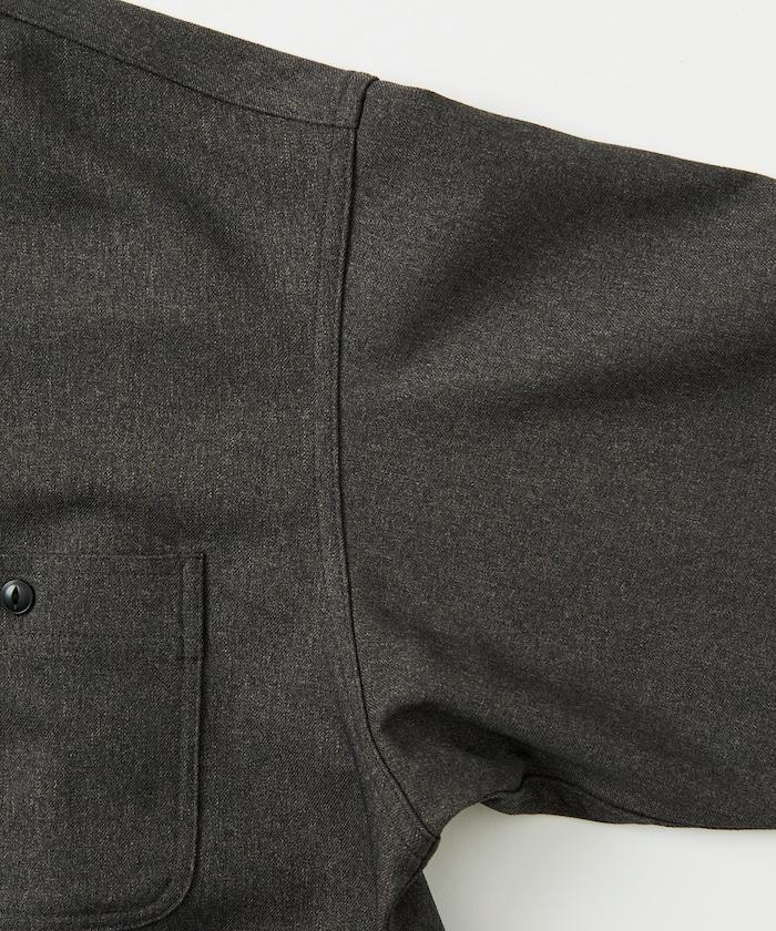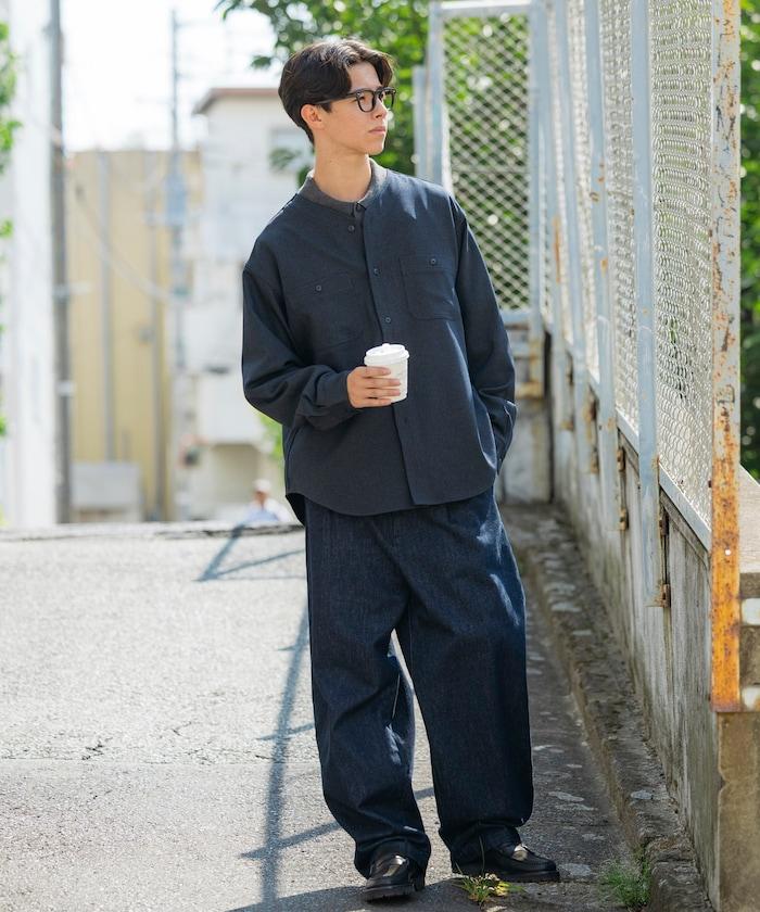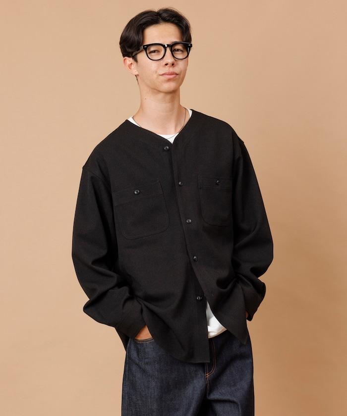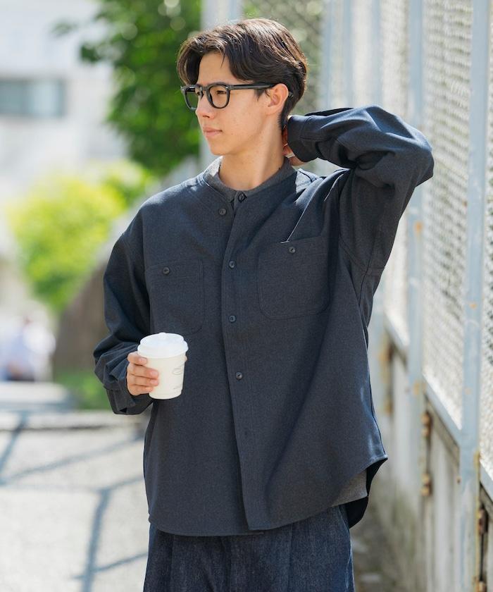 設計以復古工裝襯衫為藍本,採用了省略衣領的無領規格。穿上它就像穿上了一件開衫,這種高度的多功能性非常吸引人。