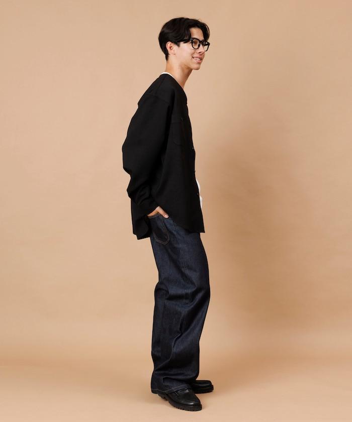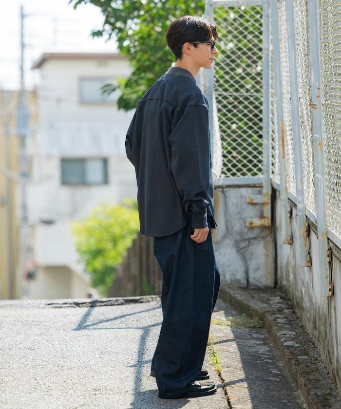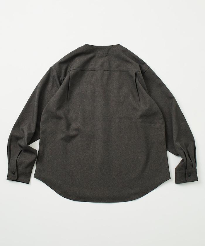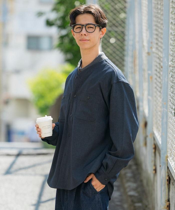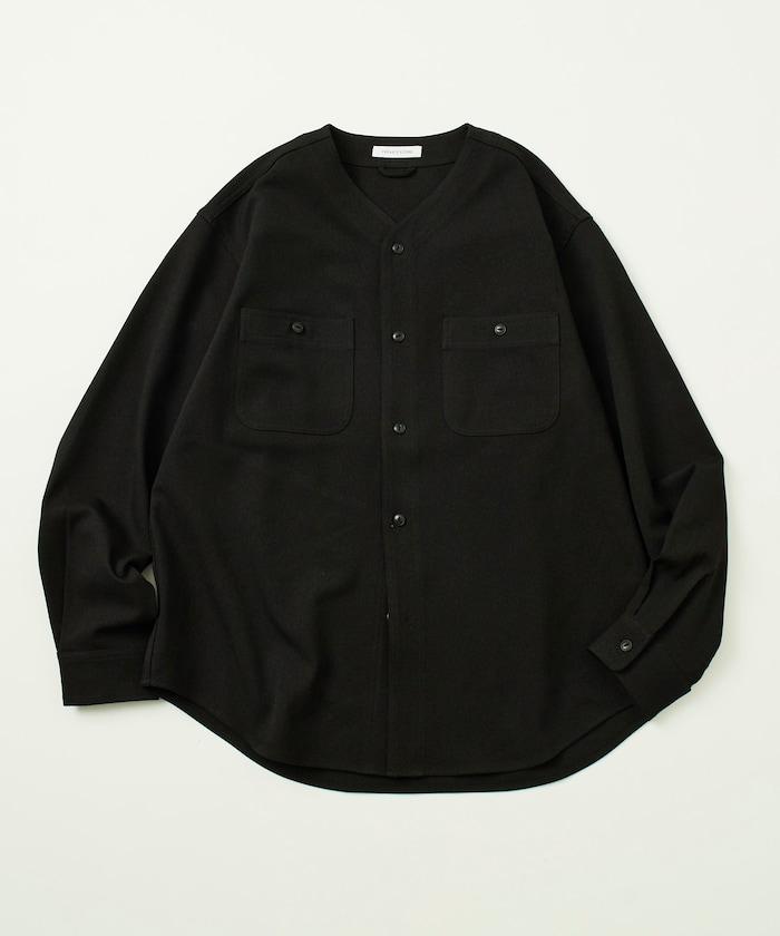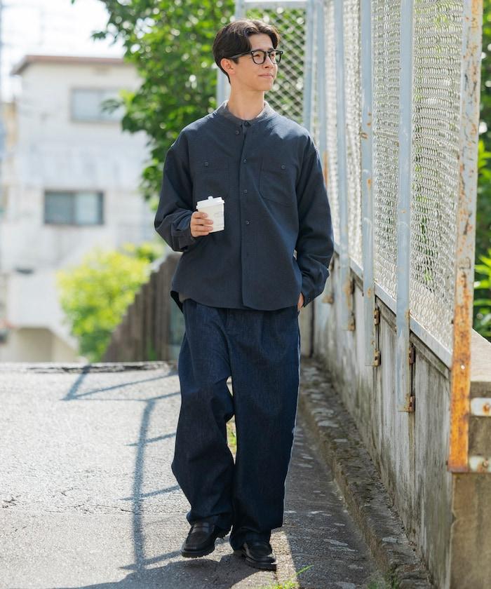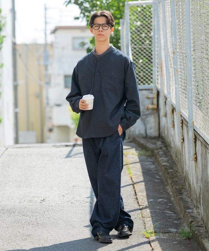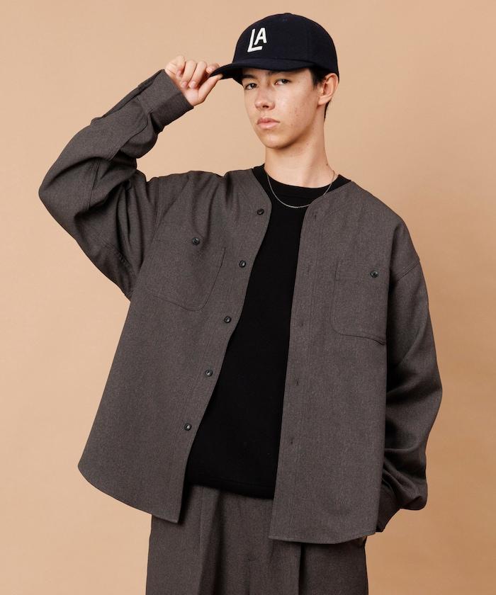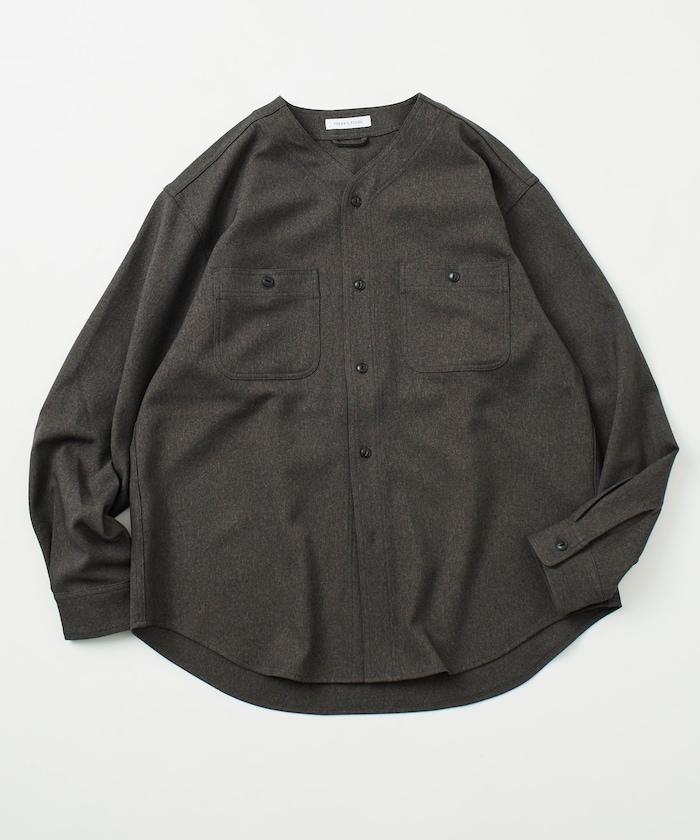 設計以復古工裝襯衫為藍本,採用了省略衣領的無領規格。穿上它就像穿上了一件開衫,這種高度的多功能性非常吸引人。