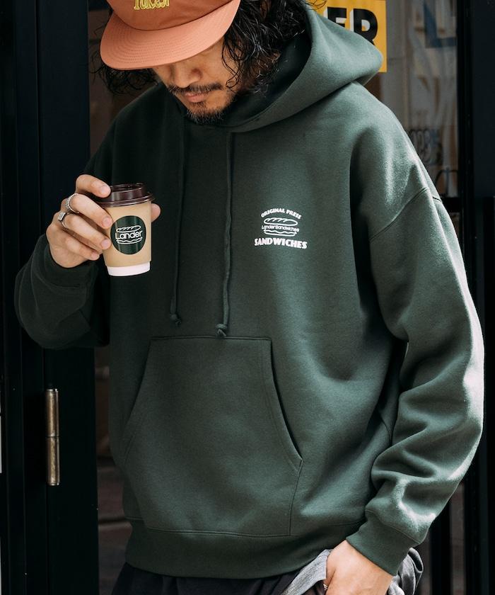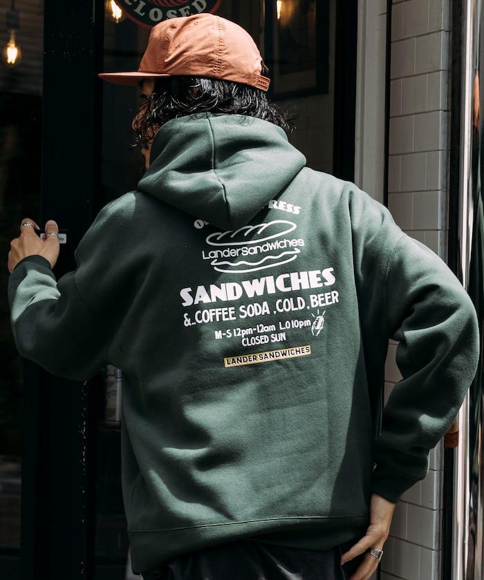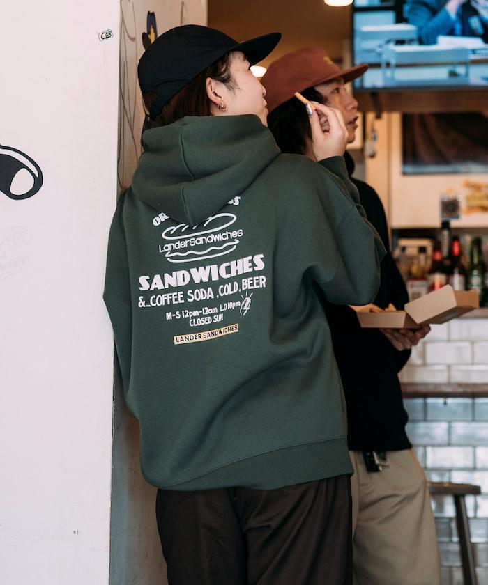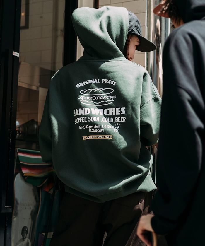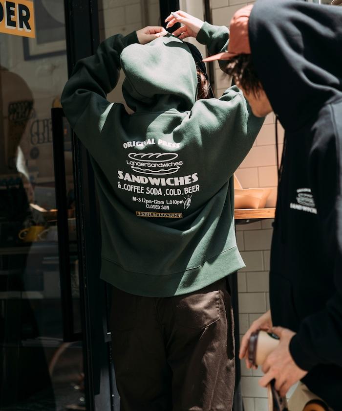 LANDER SANDWICHES×FREAK'S STORE/ランダー 聯名寬鬆版型背面印花衛衣連帽衫