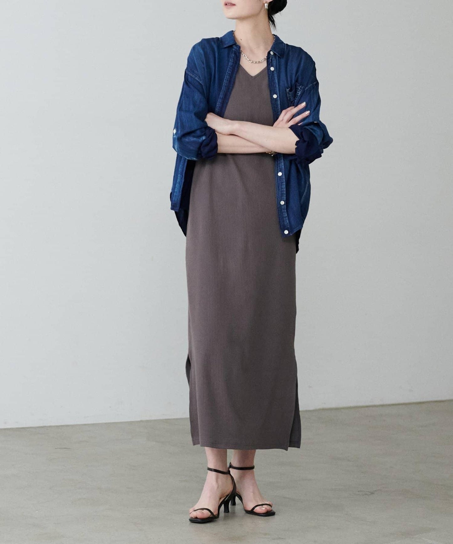 羅紋面料強調了這款連衣裙的垂直線條,自然讓你看起來更苗條。