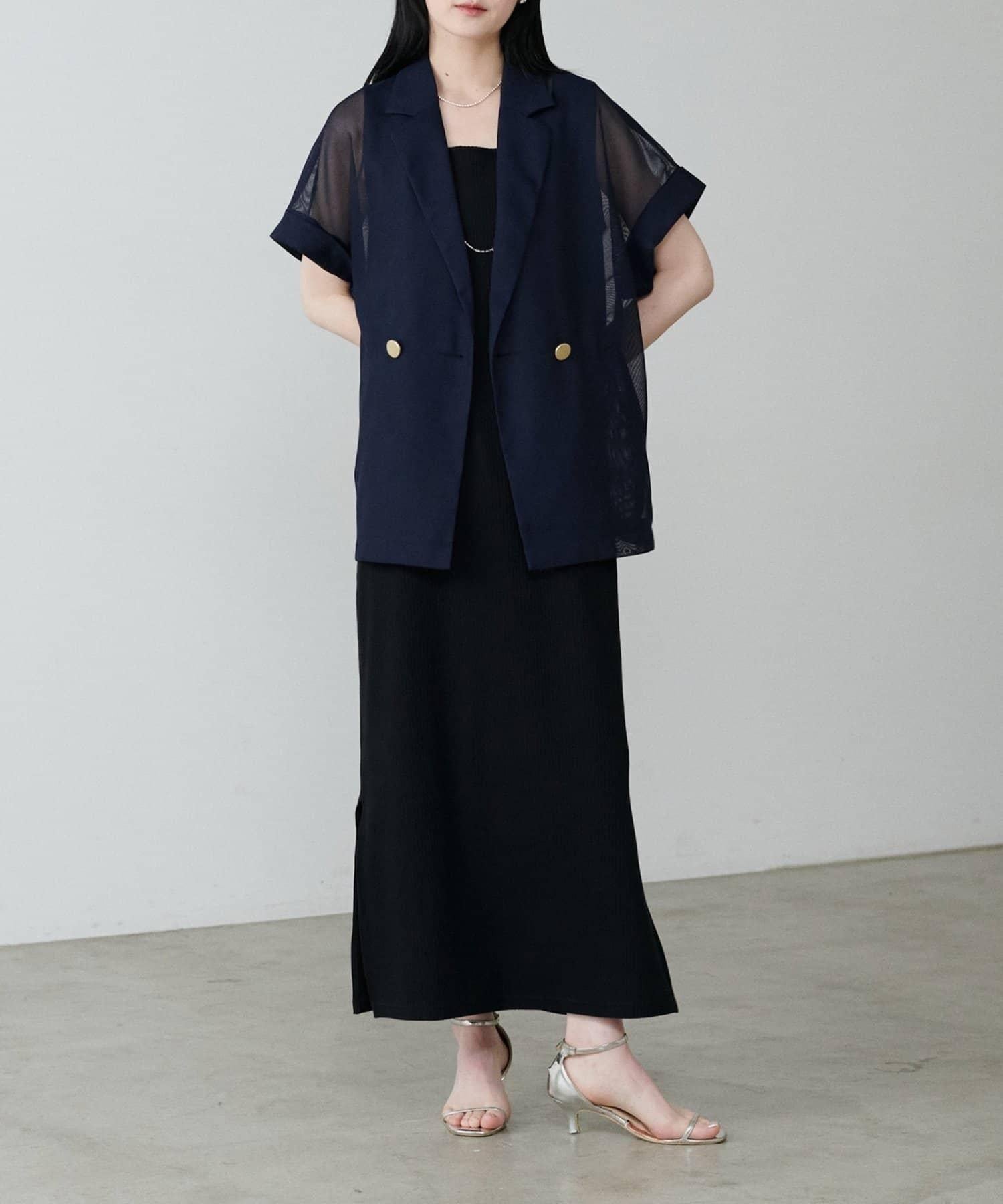 前後 2WAY 側開衩剪裁縫製連衣裙