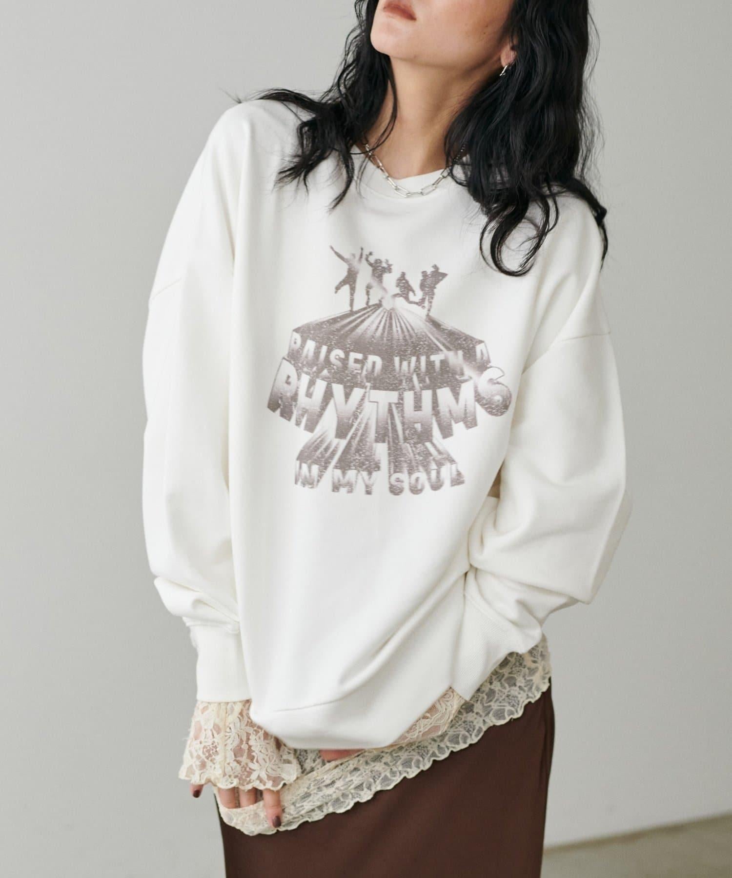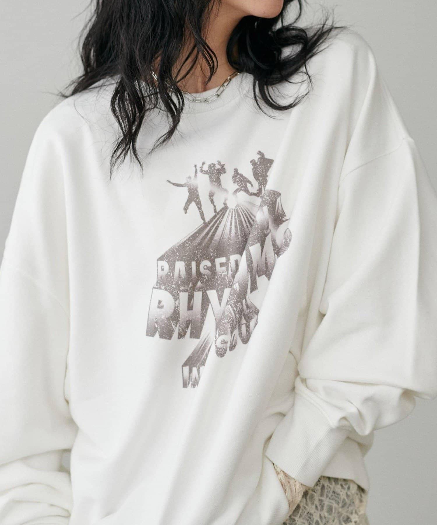 這款羊毛內襯套頭衫採用了以虛構樂隊徽標為原型的俏皮圖案印花。