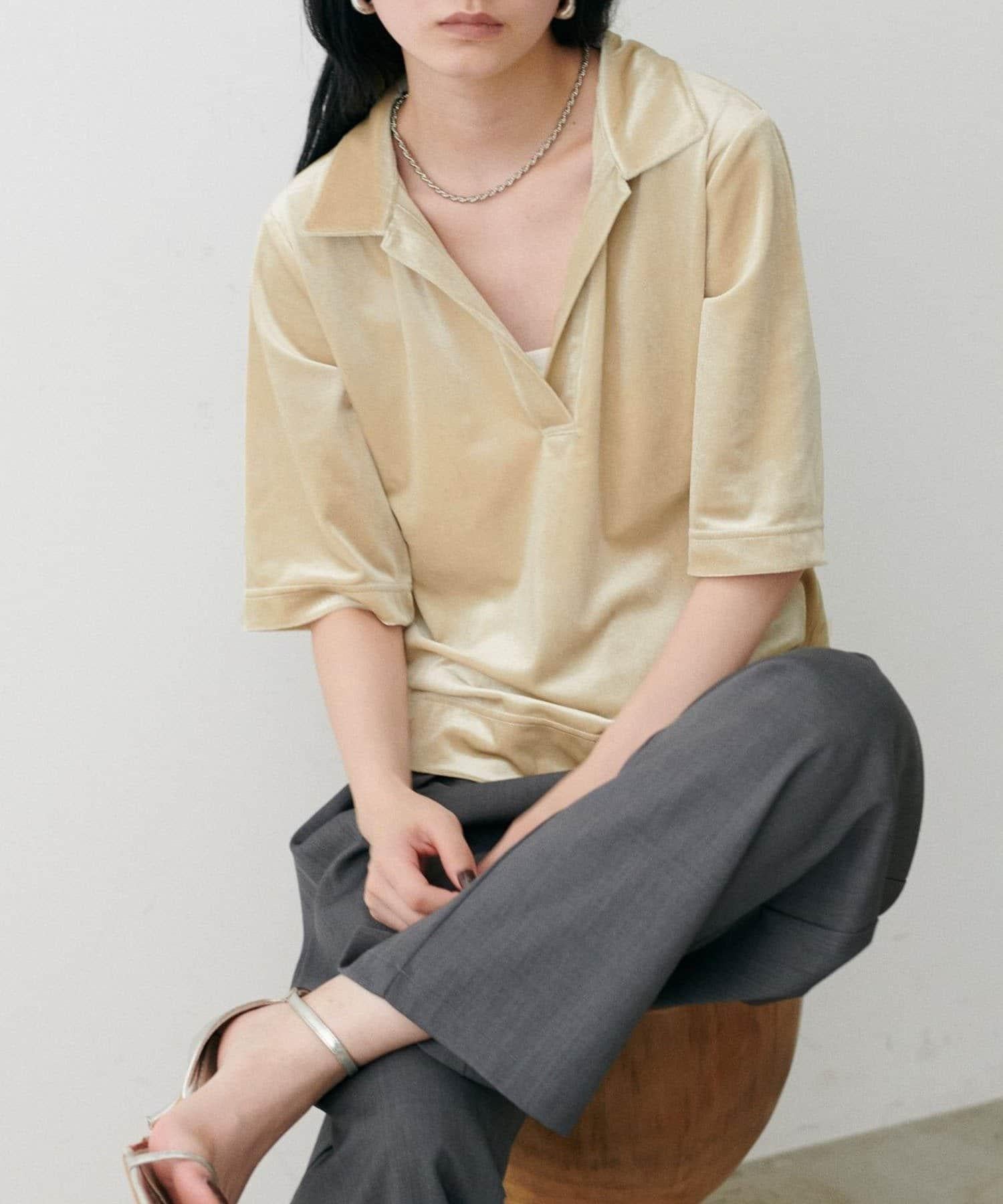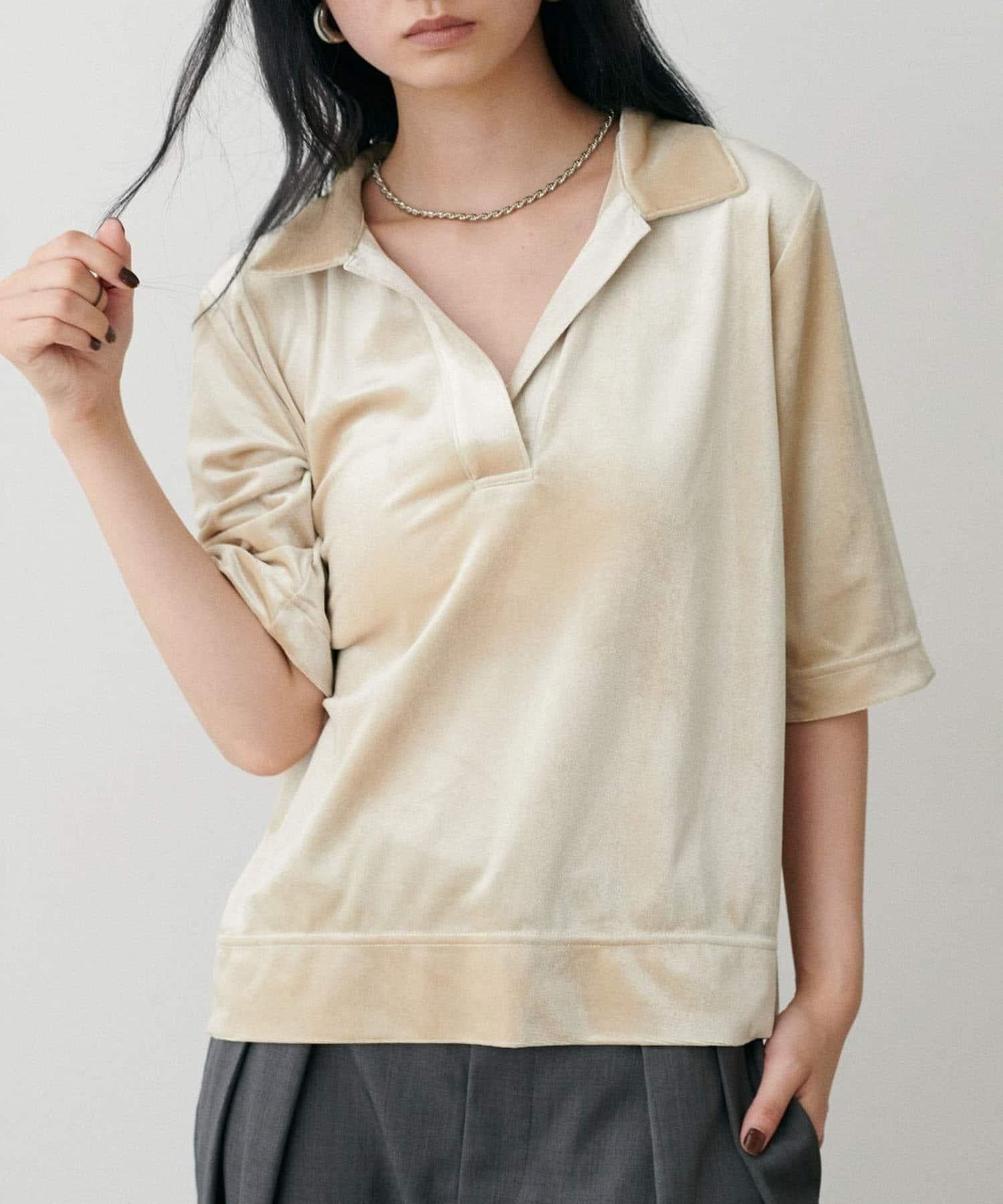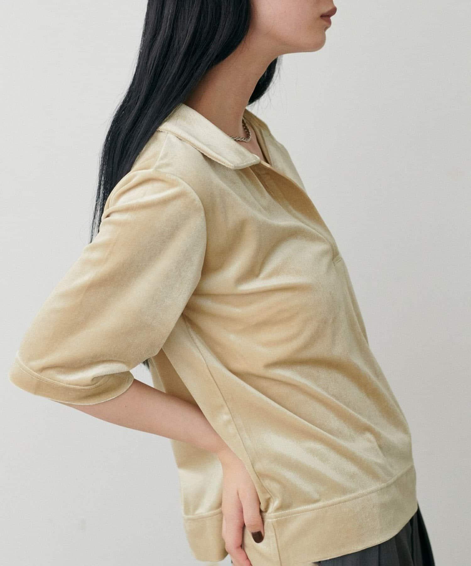 天鵝絨面料的 Polo 衫套頭衫具有優雅的光澤。