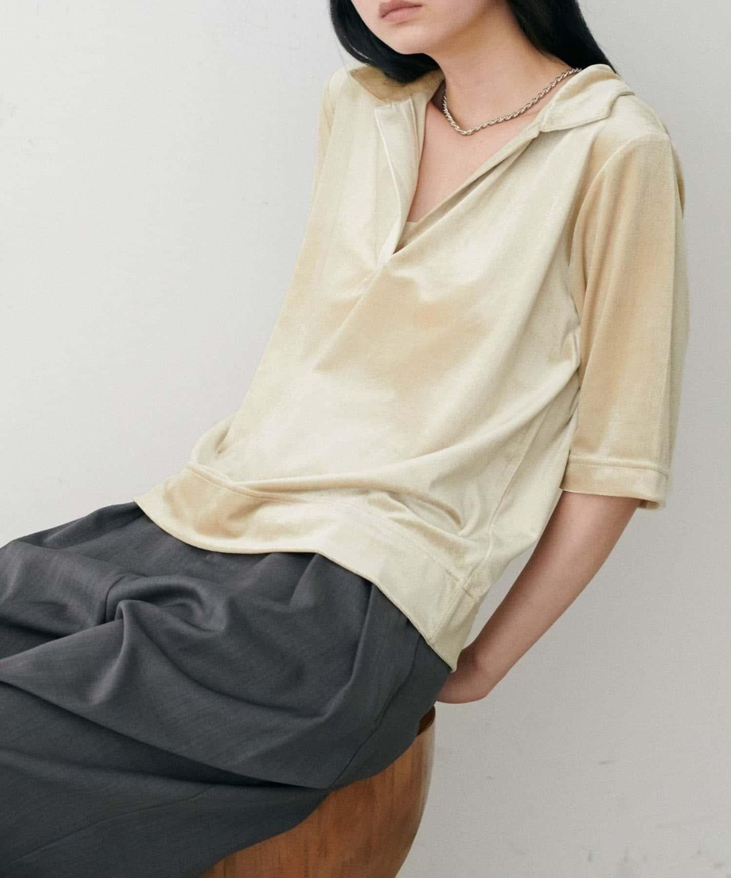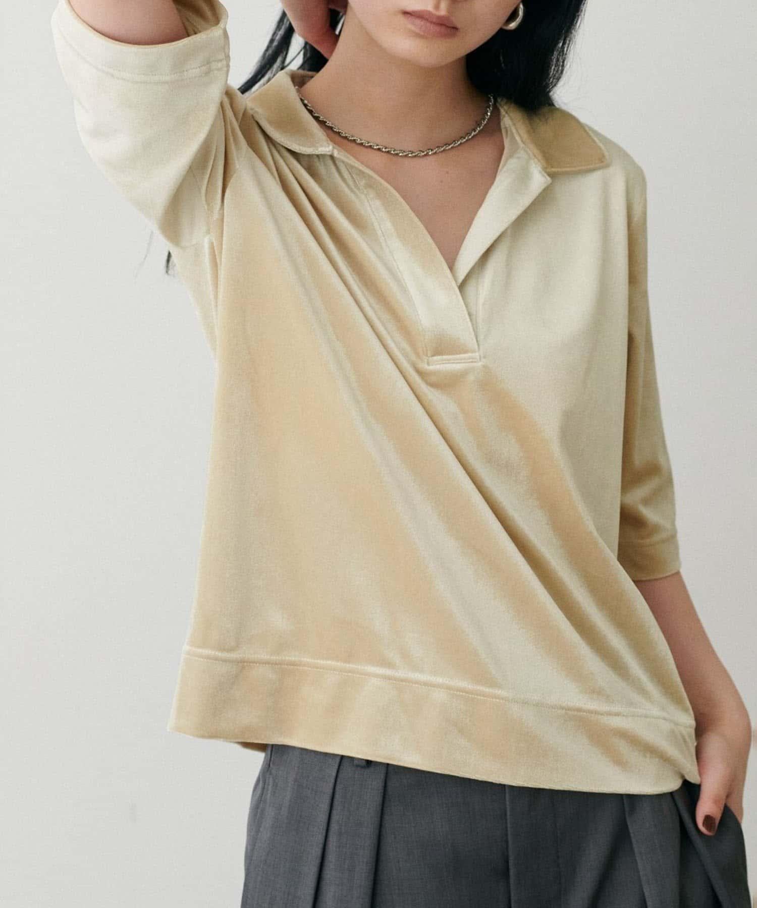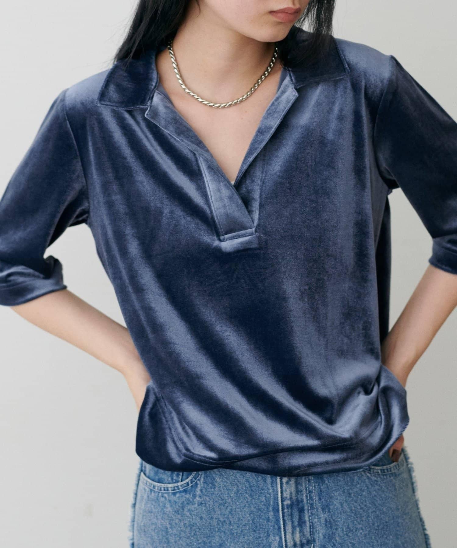 天鵝絨面料的 Polo 衫套頭衫具有優雅的光澤。