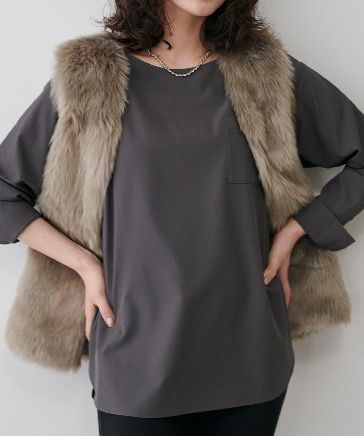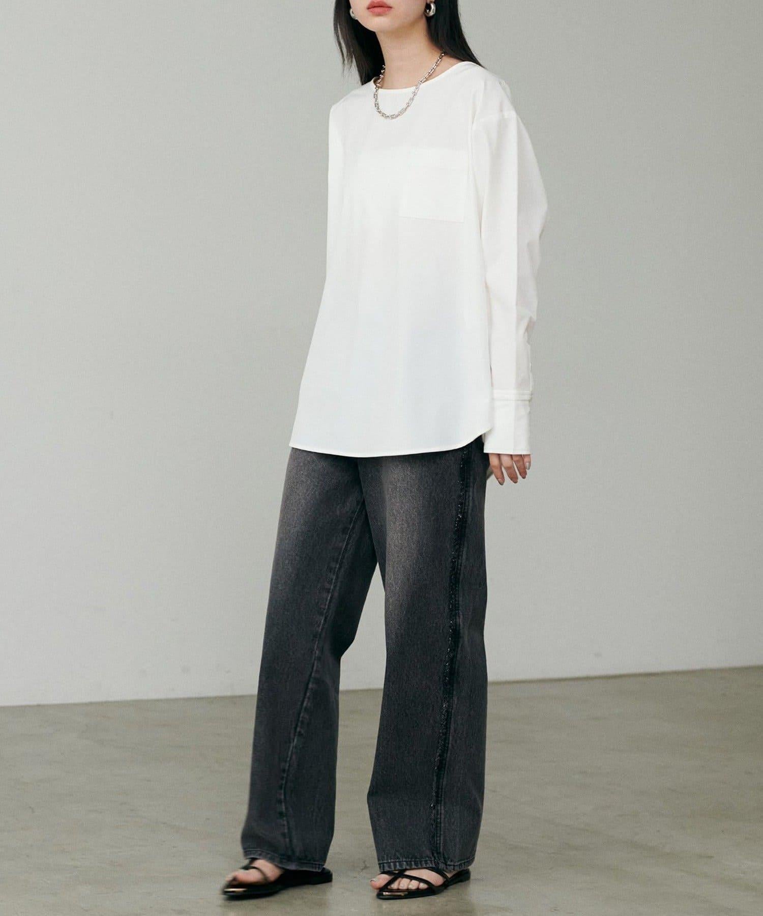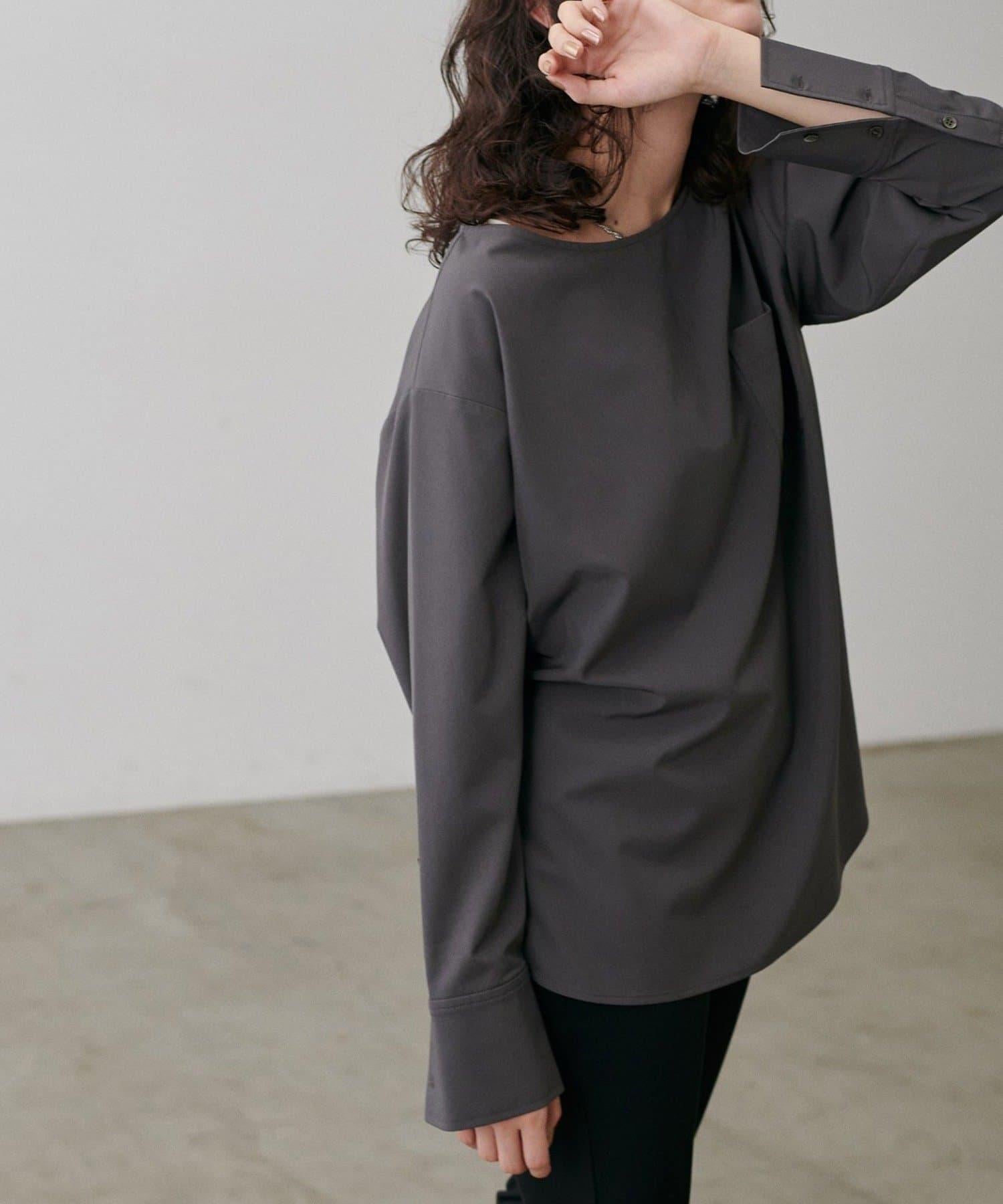 【LARUTA】寬幅PU混紡帶袖口套頭衫