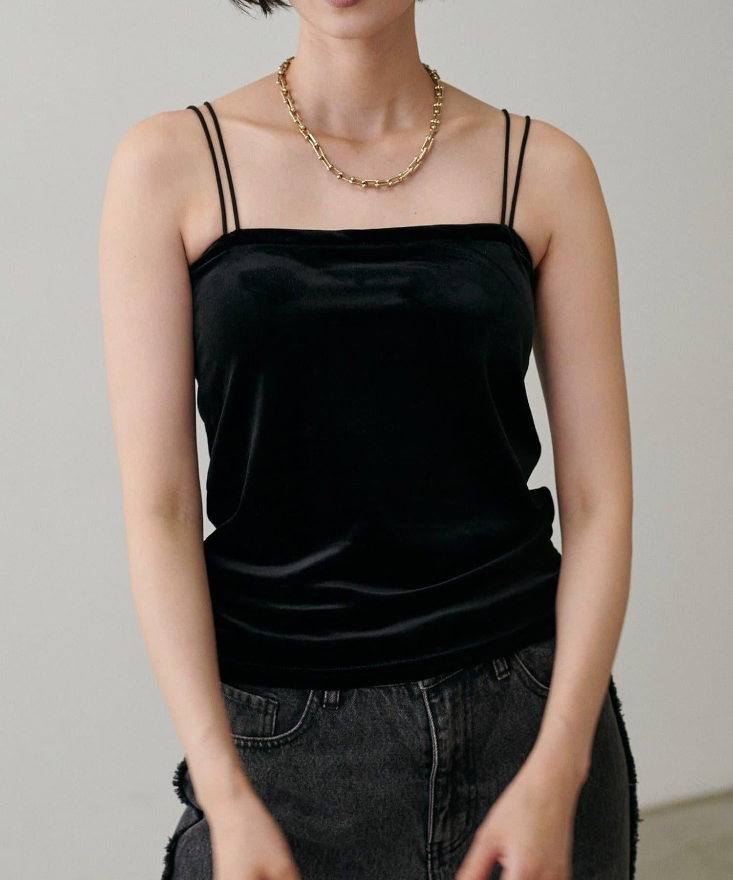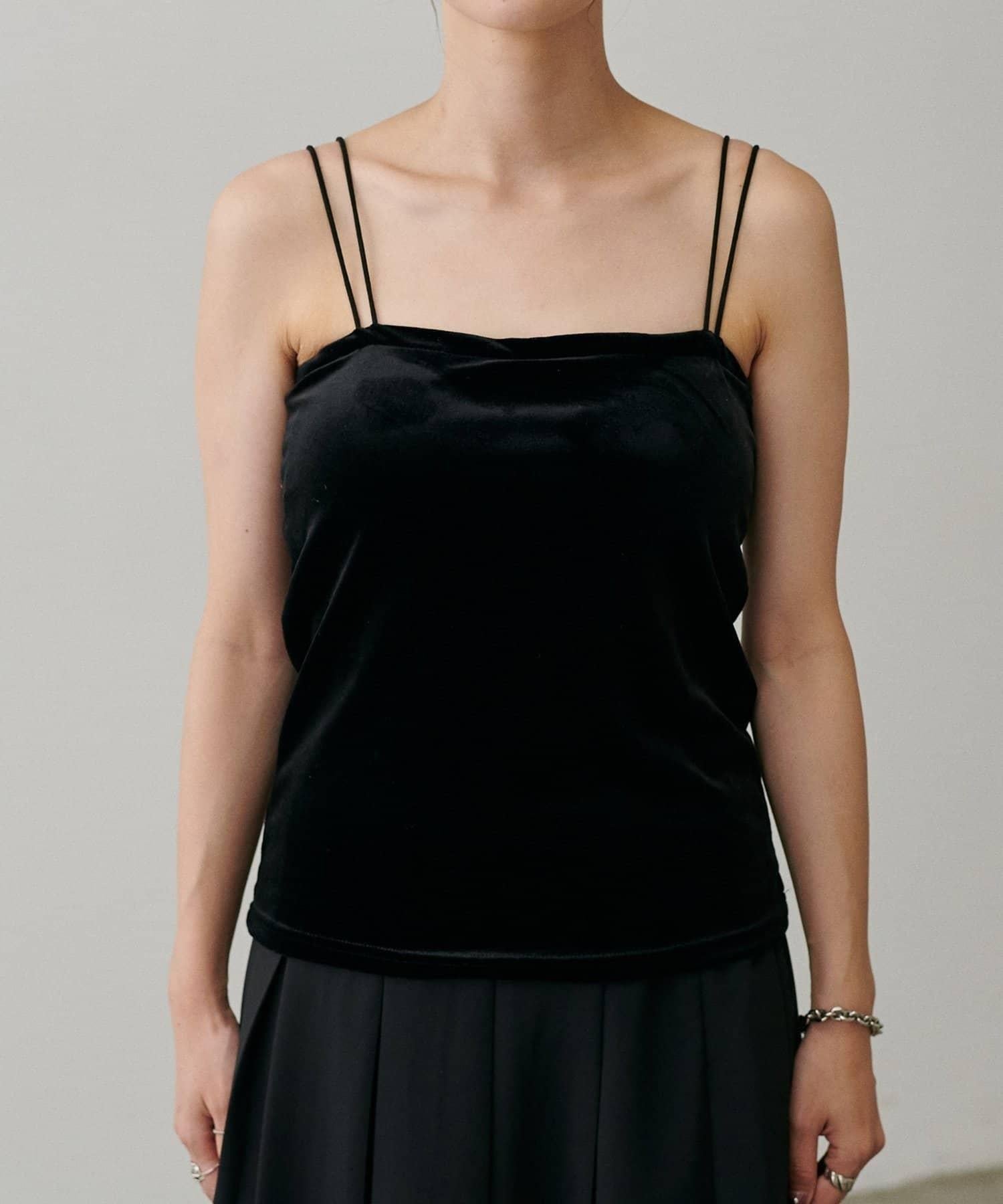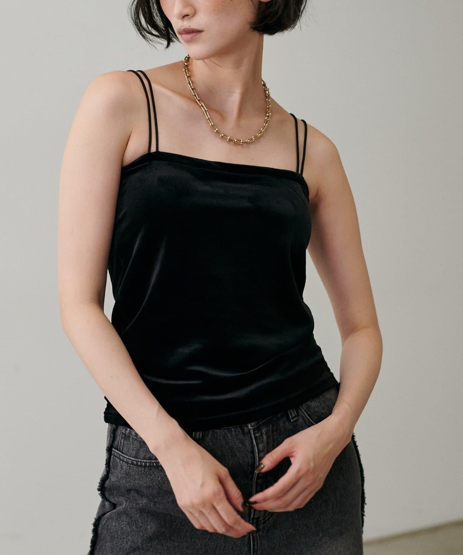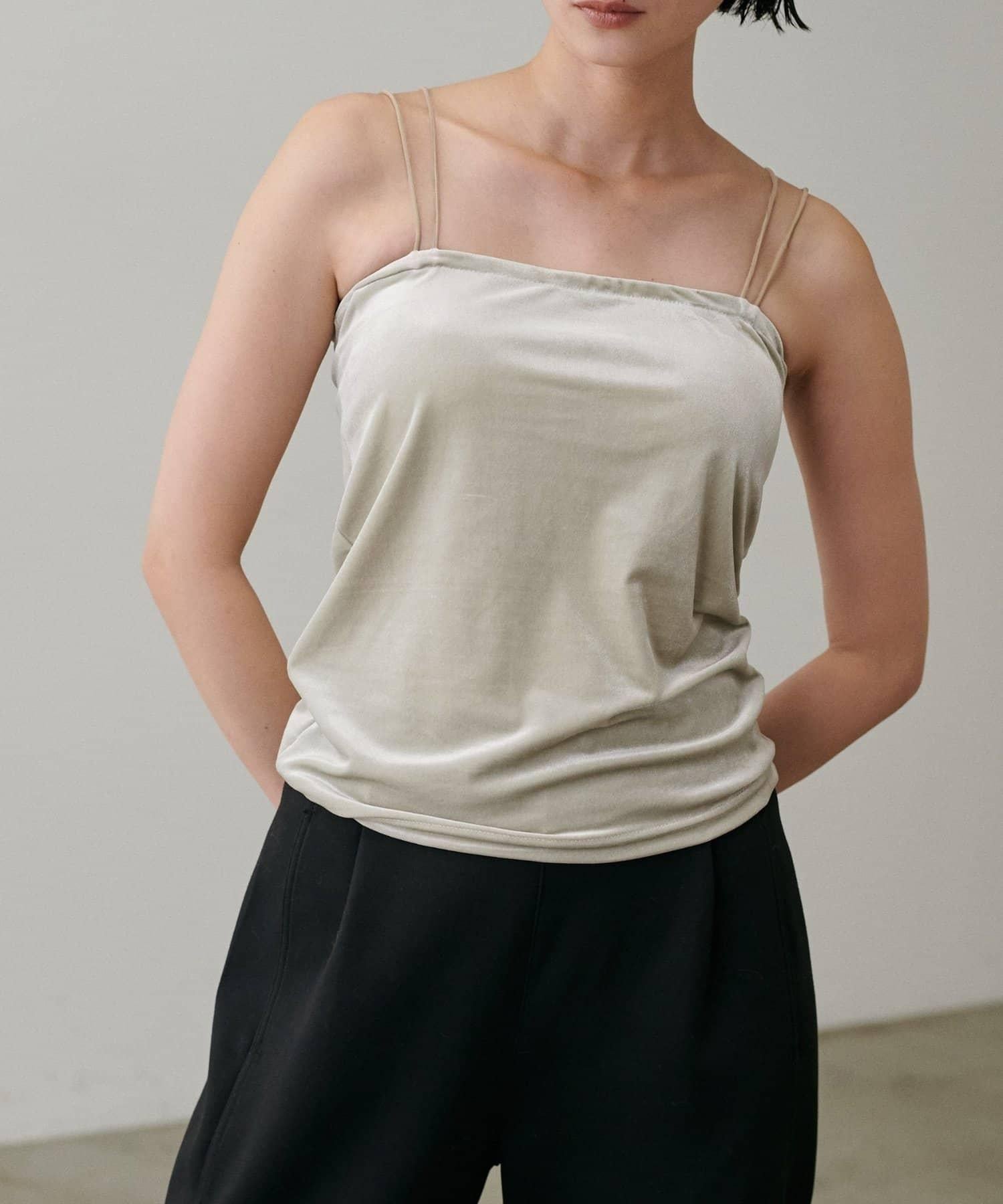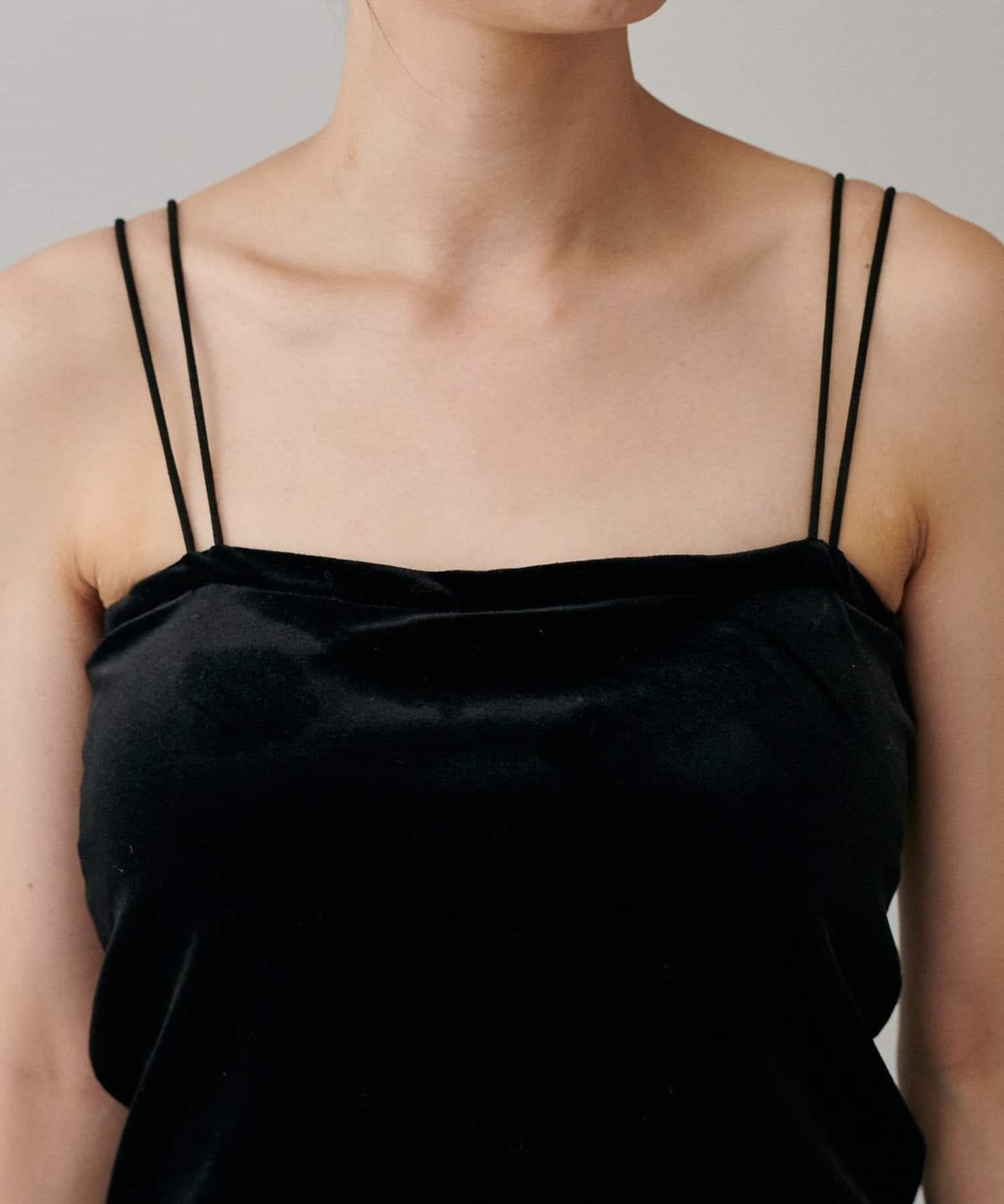 天鵝絨製成的帶罩杯吊帶衫具有優雅的光澤。