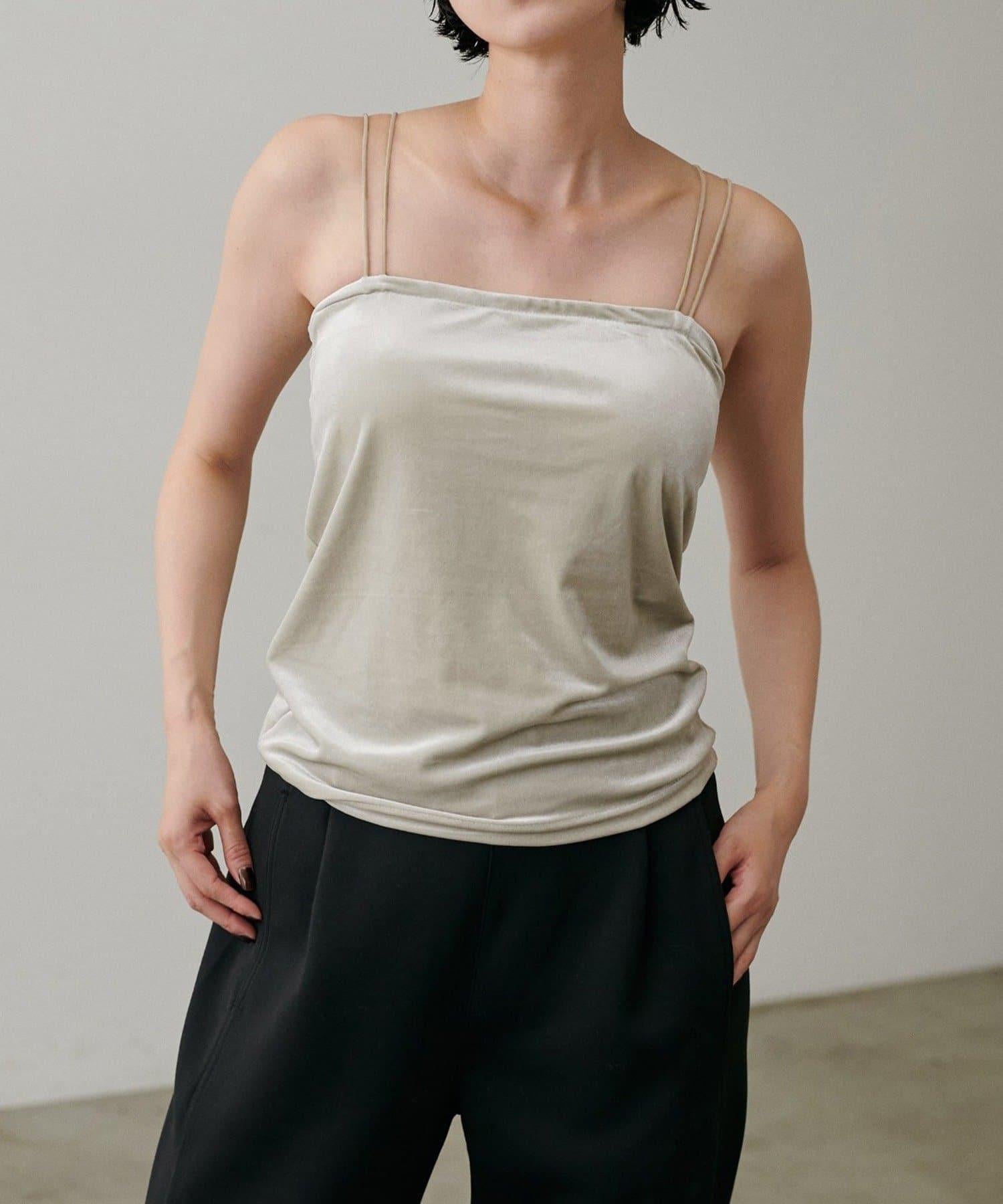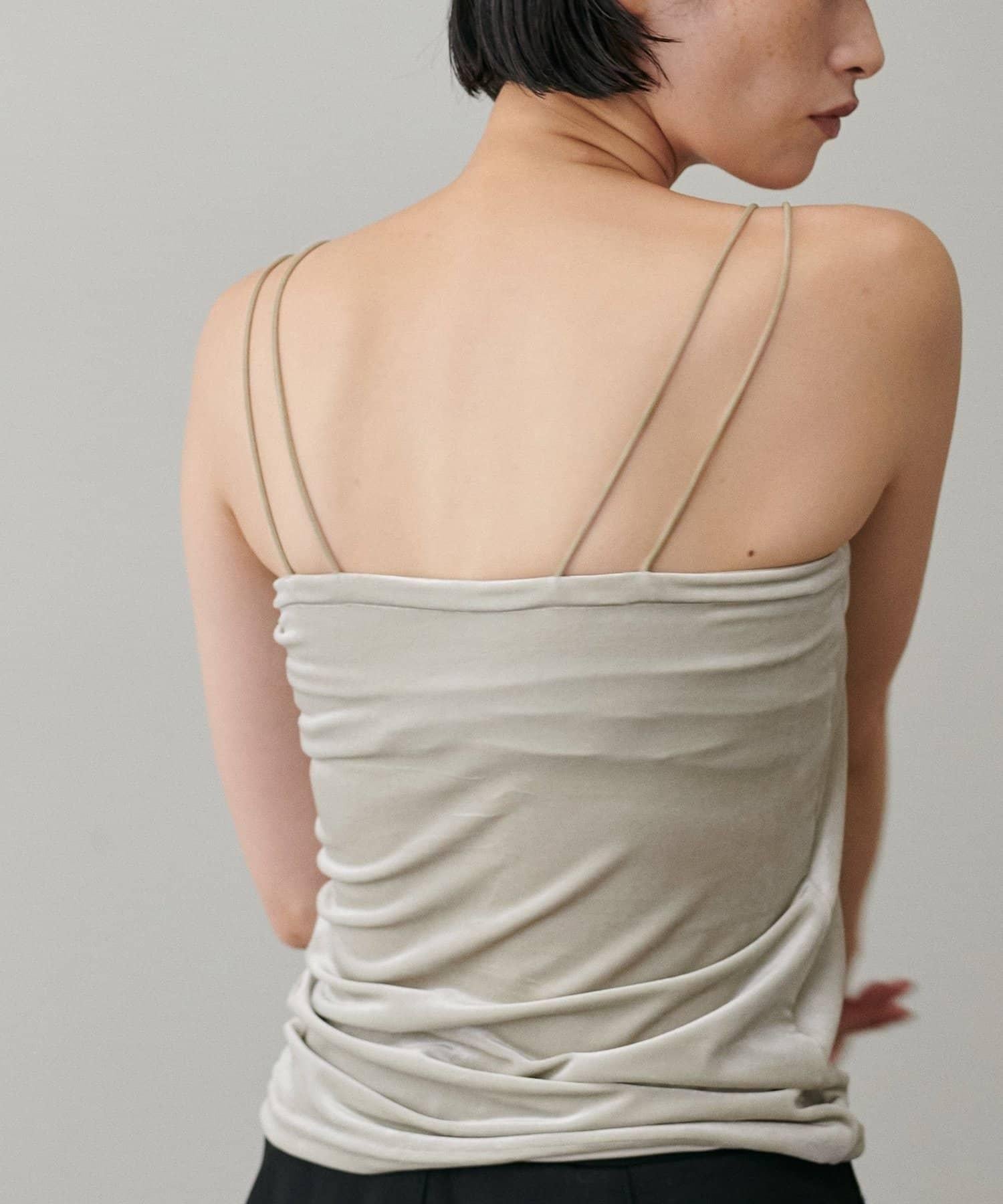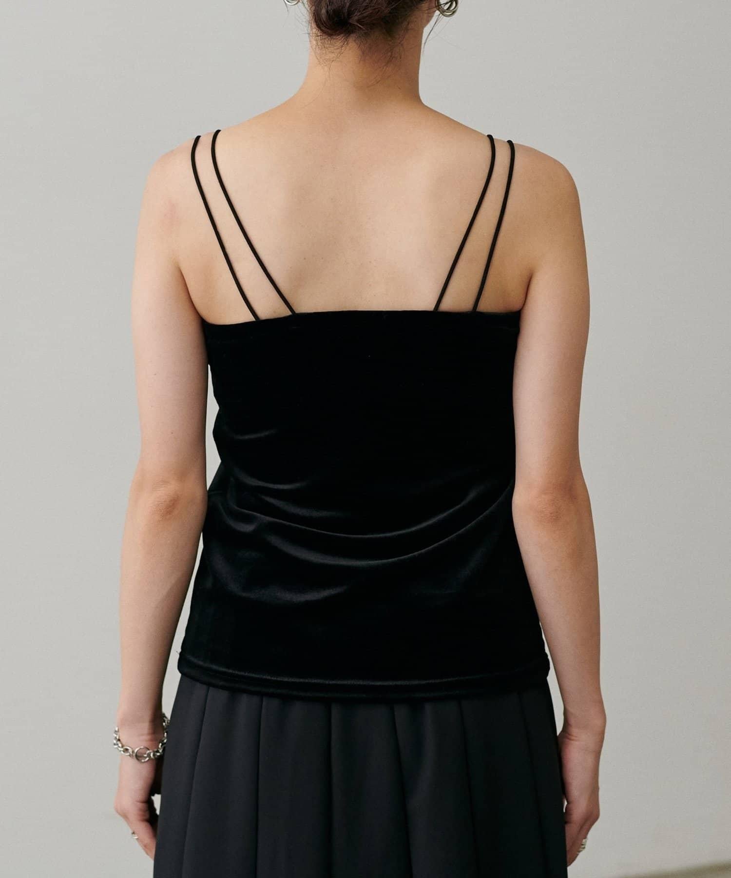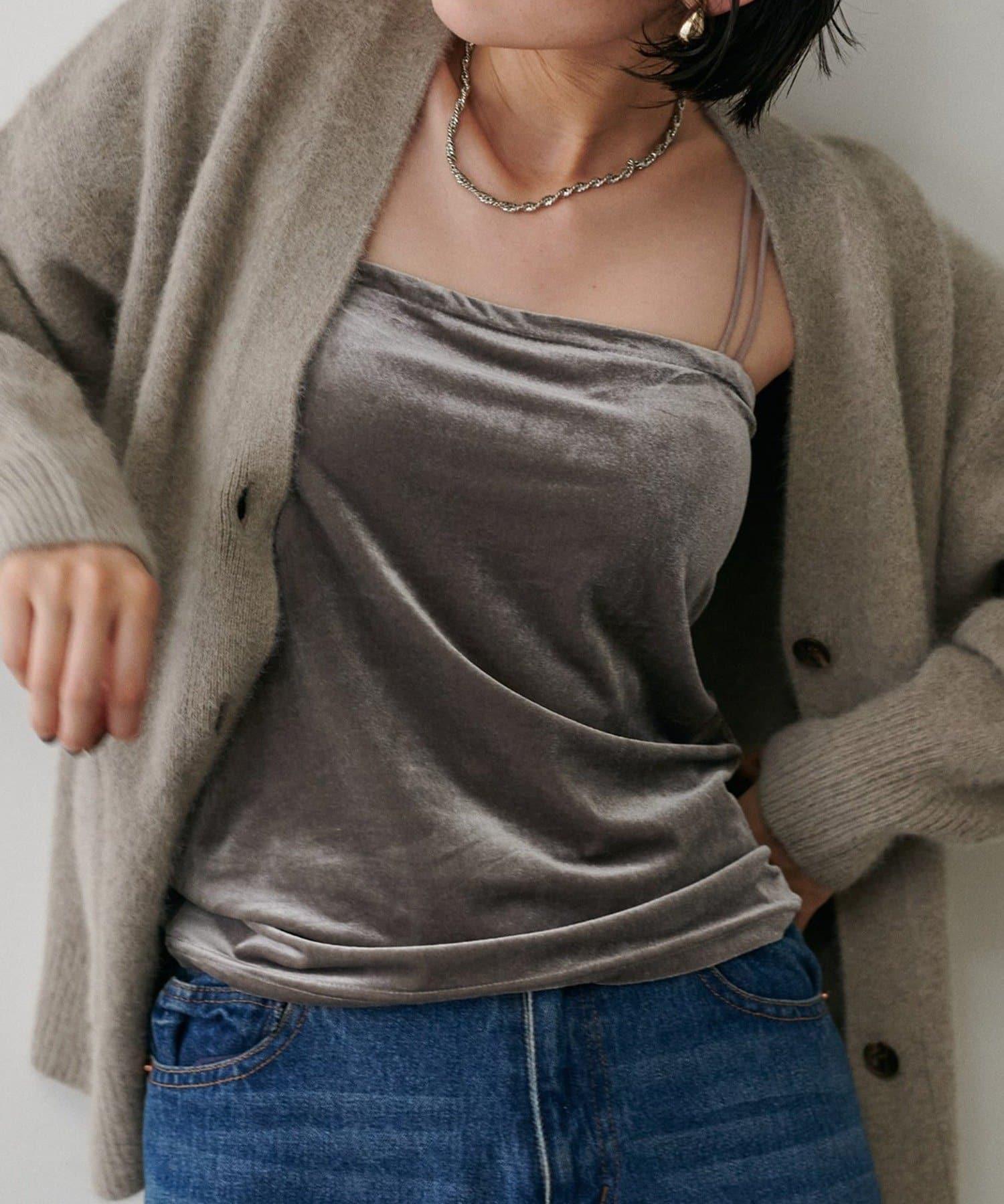 天鵝絨製成的帶罩杯吊帶衫具有優雅的光澤。