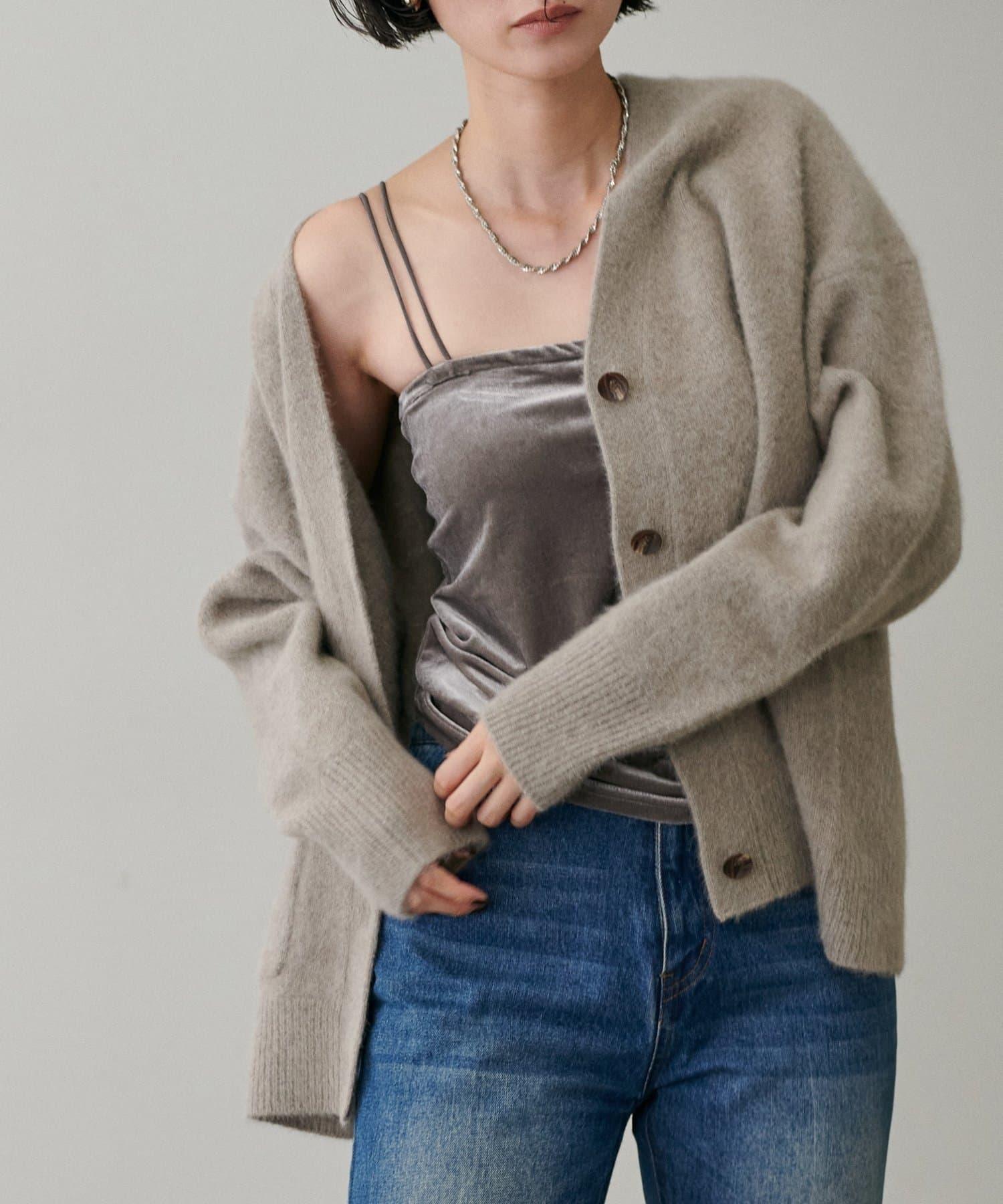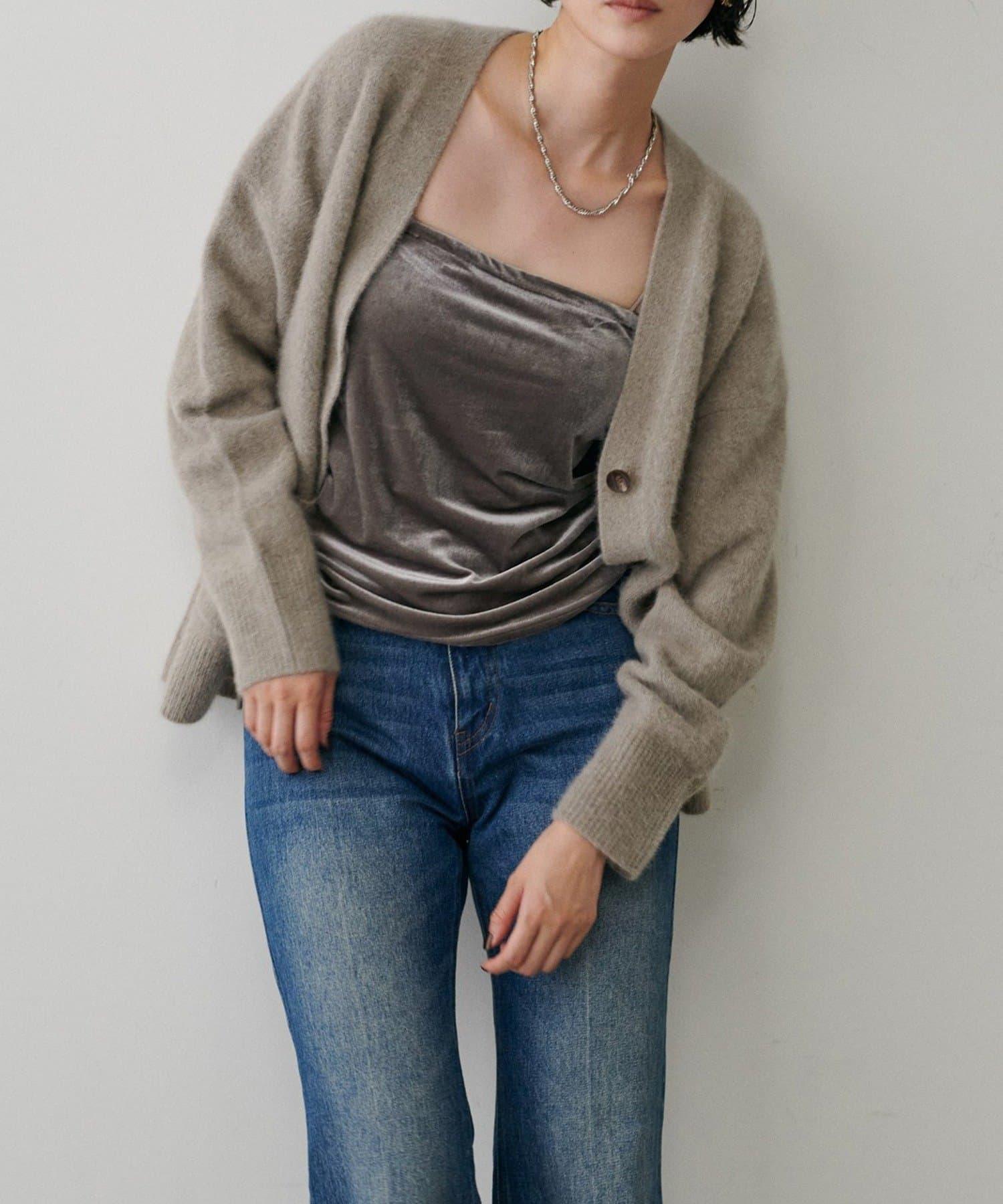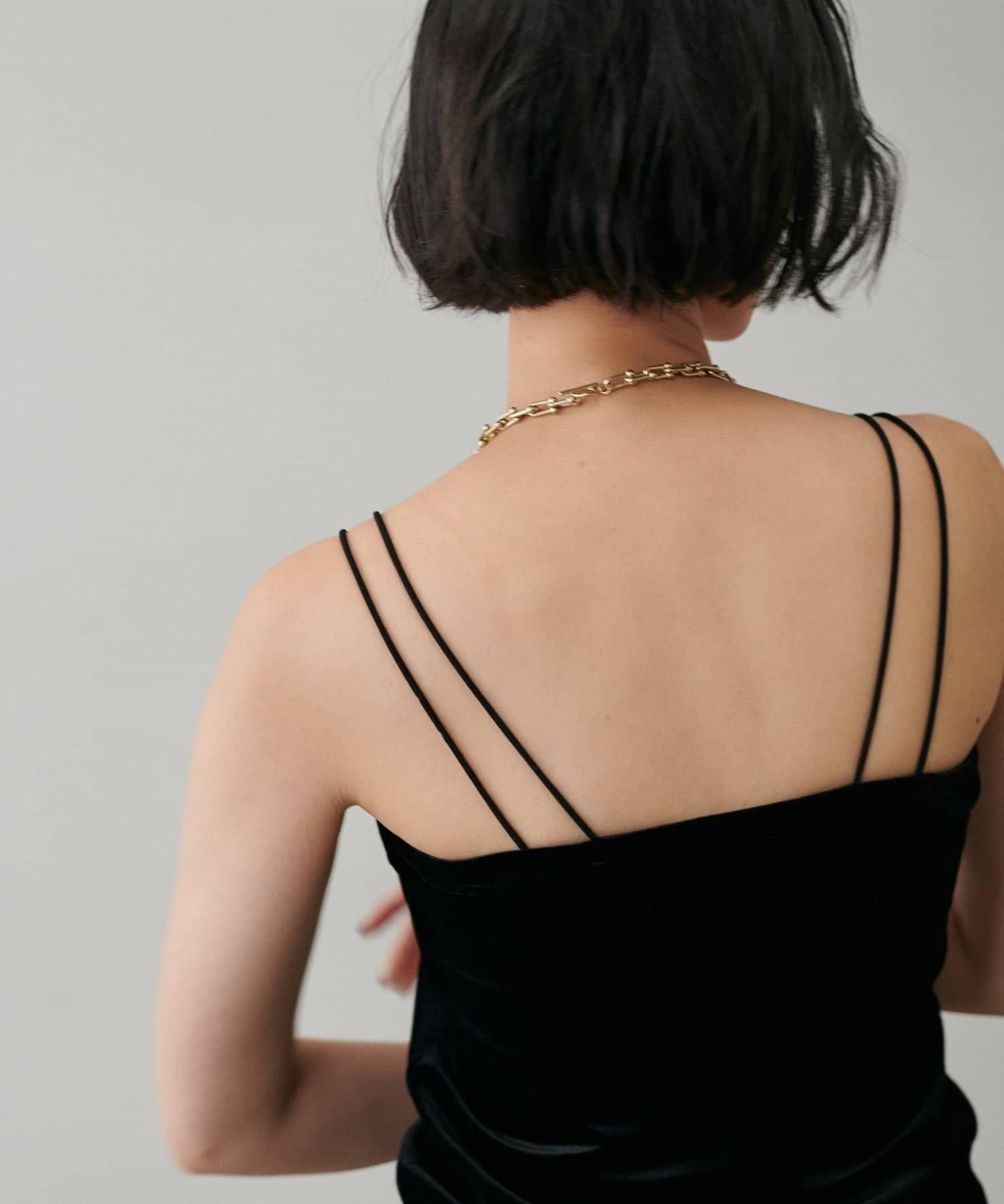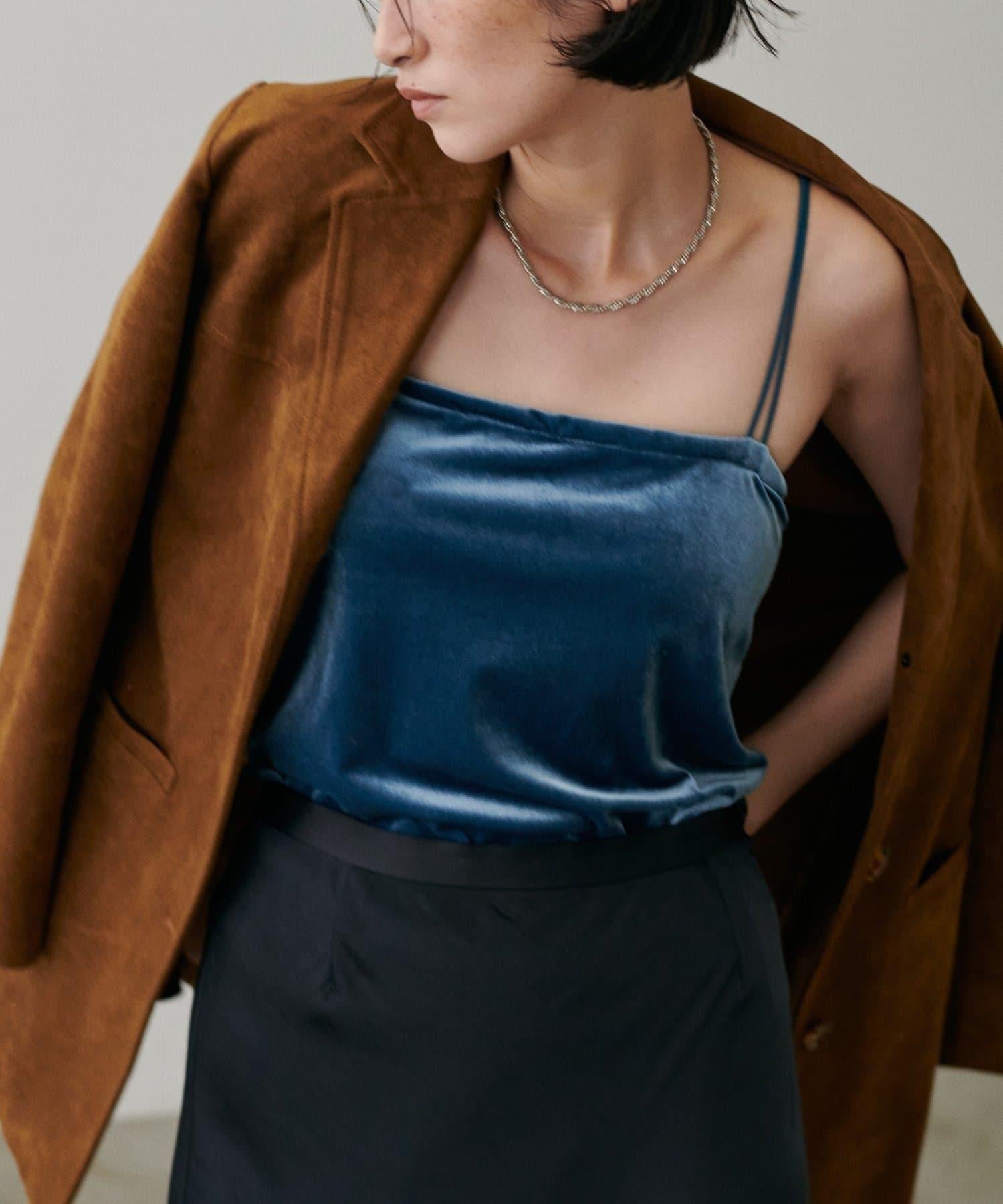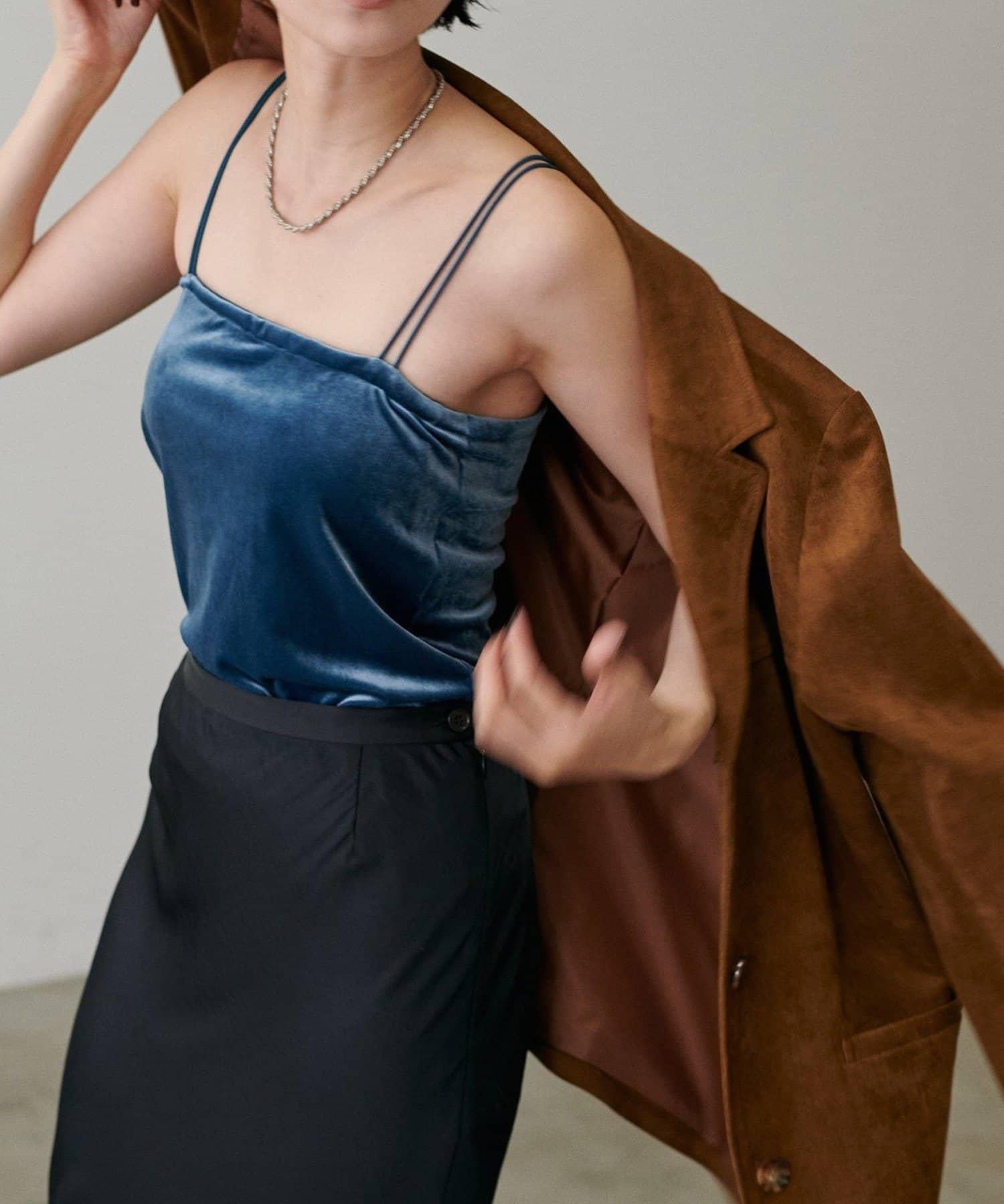 天鵝絨製成的帶罩杯吊帶衫具有優雅的光澤。