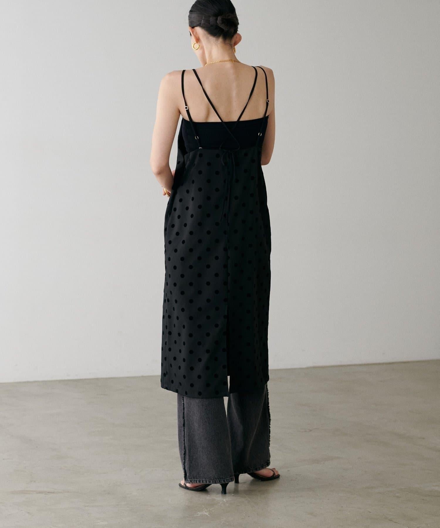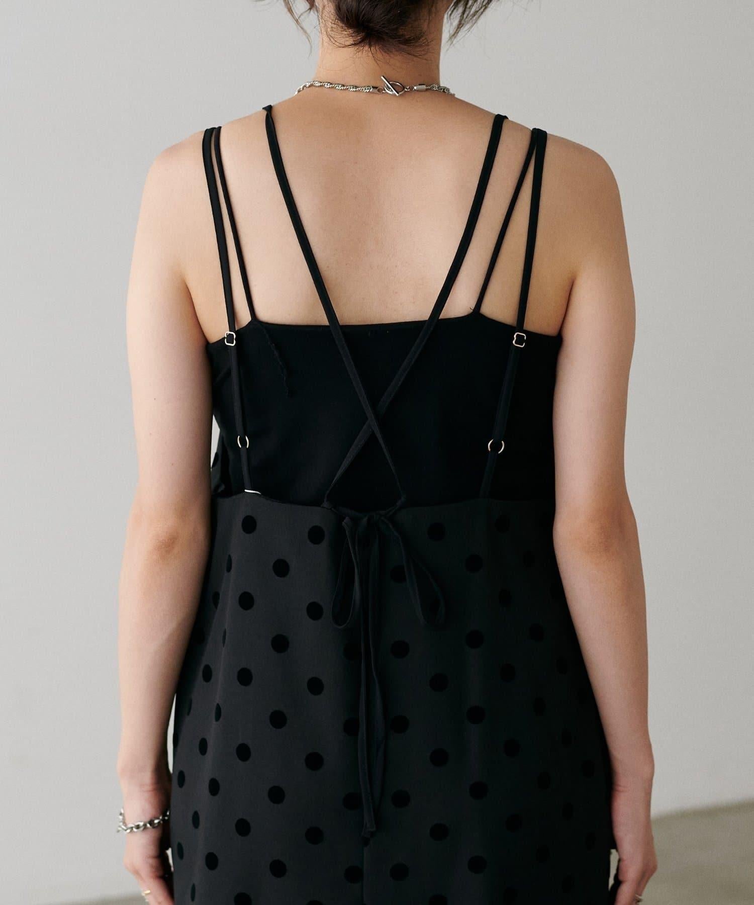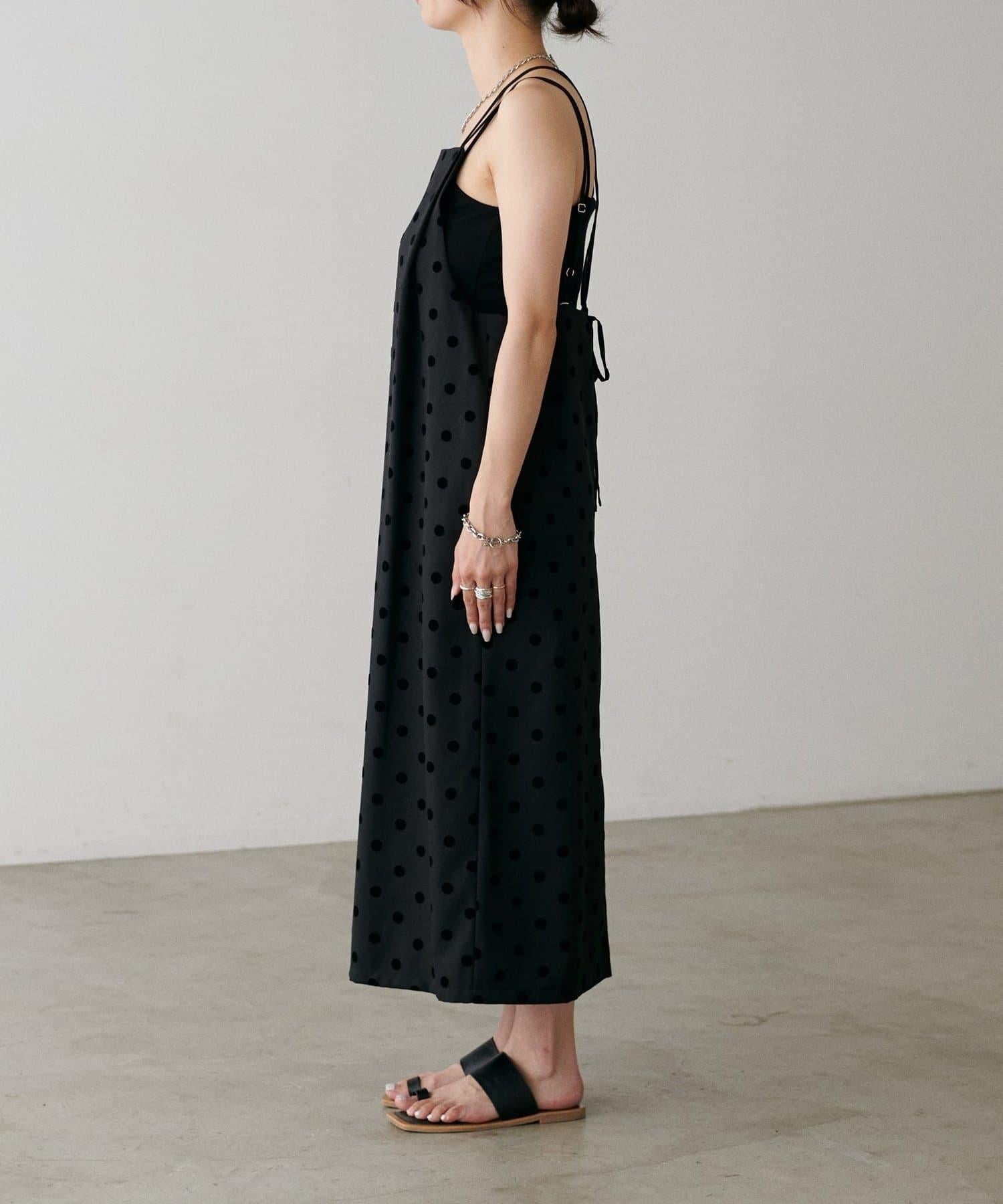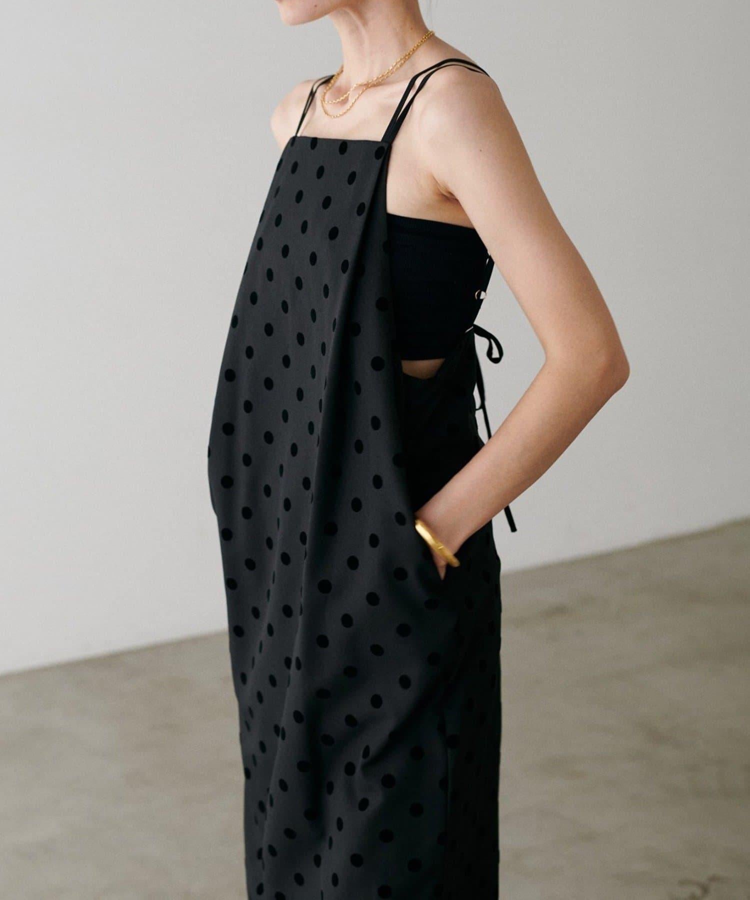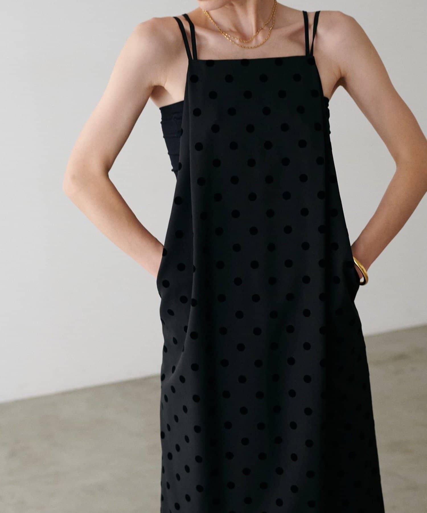【LARUTA】斜紋植絨波點吊帶連衣裙