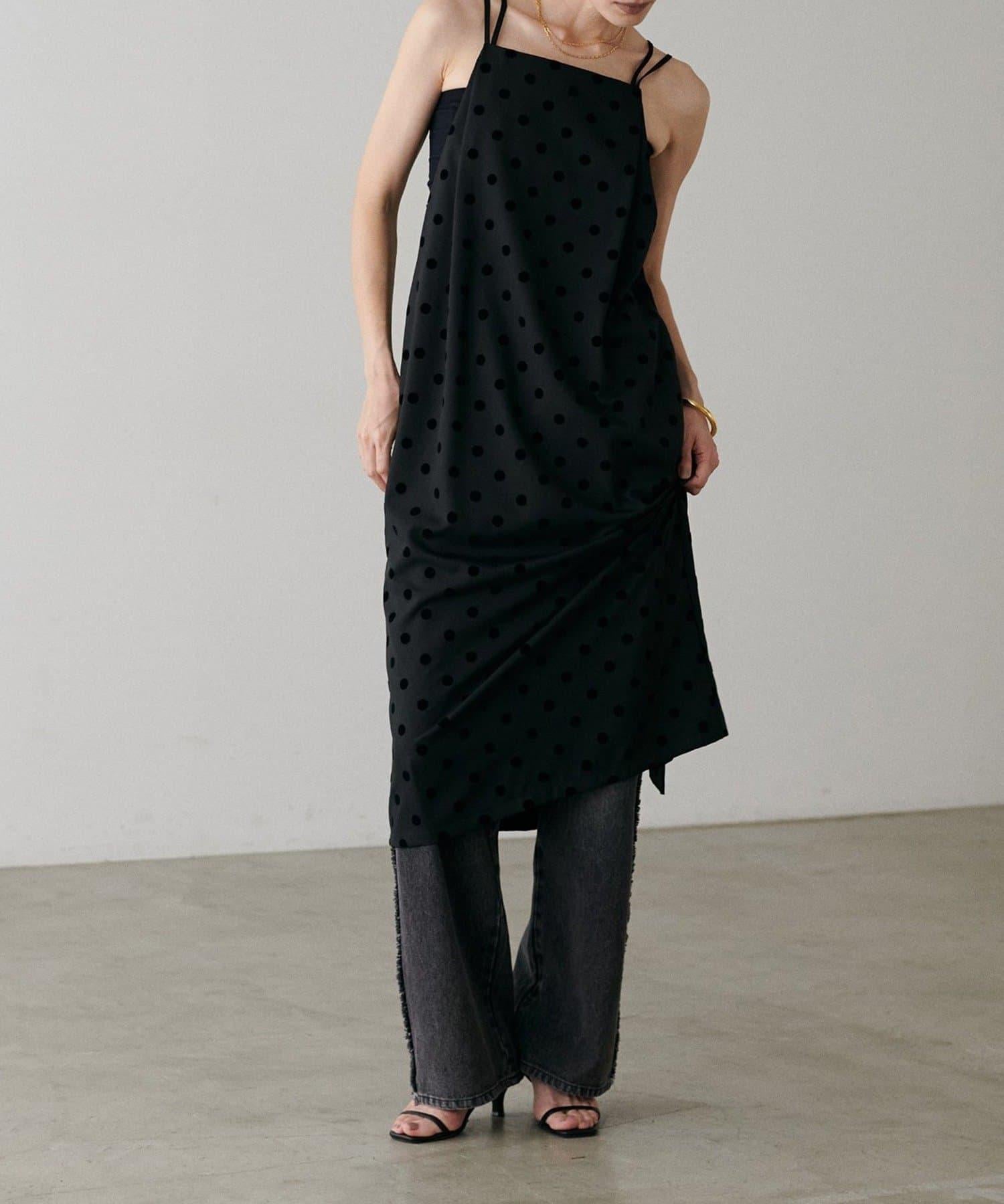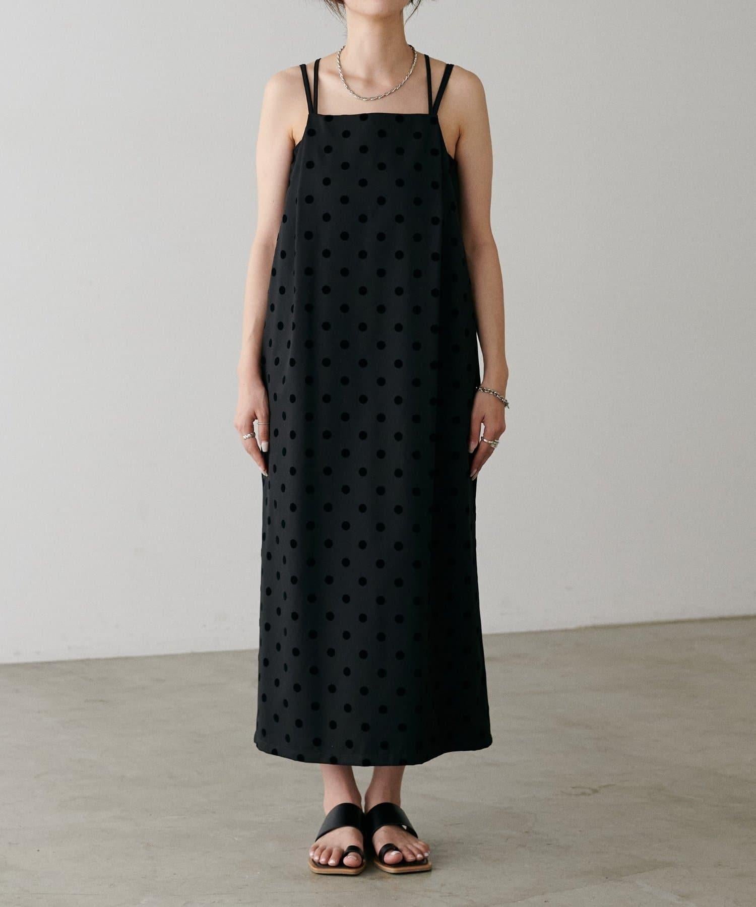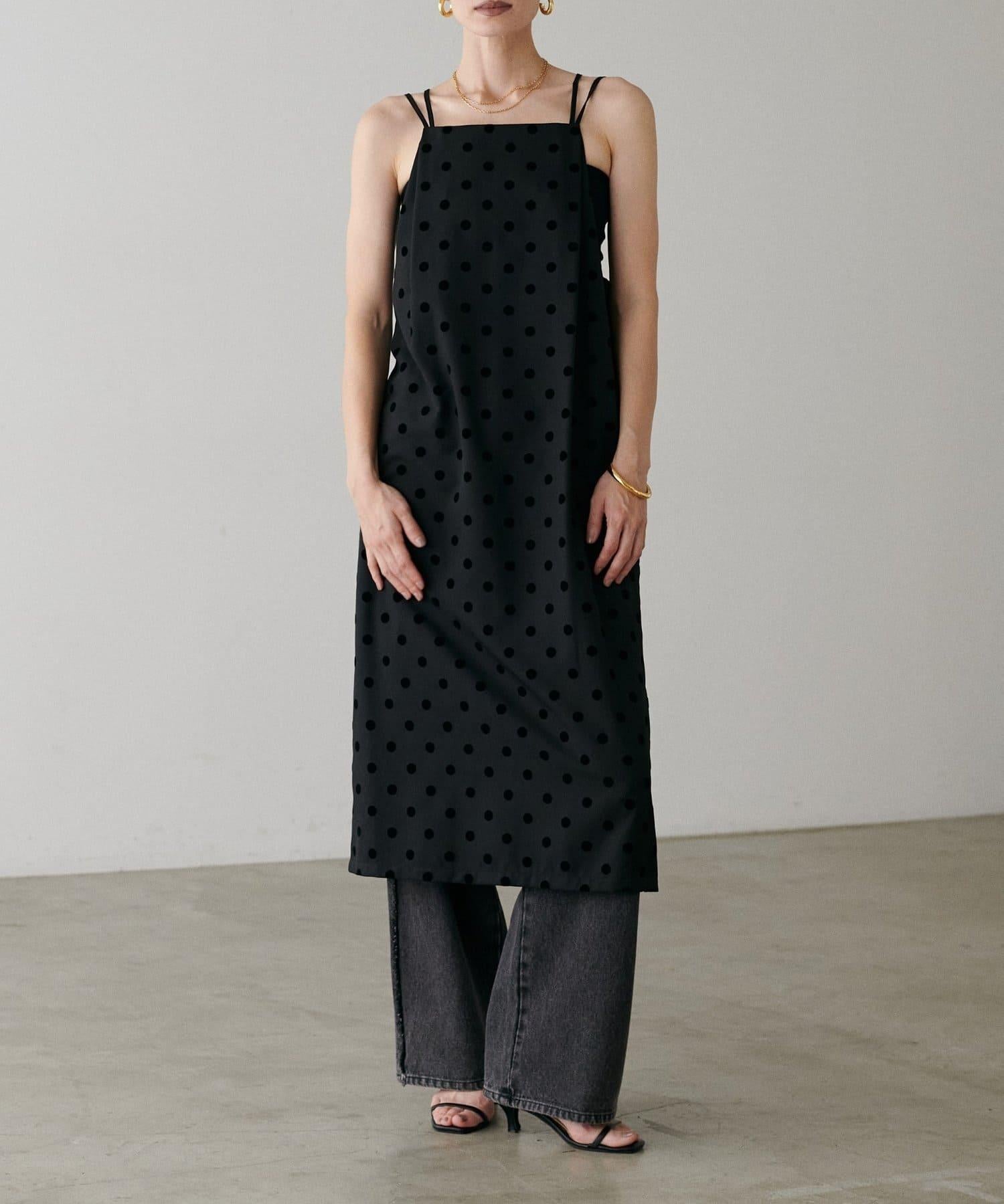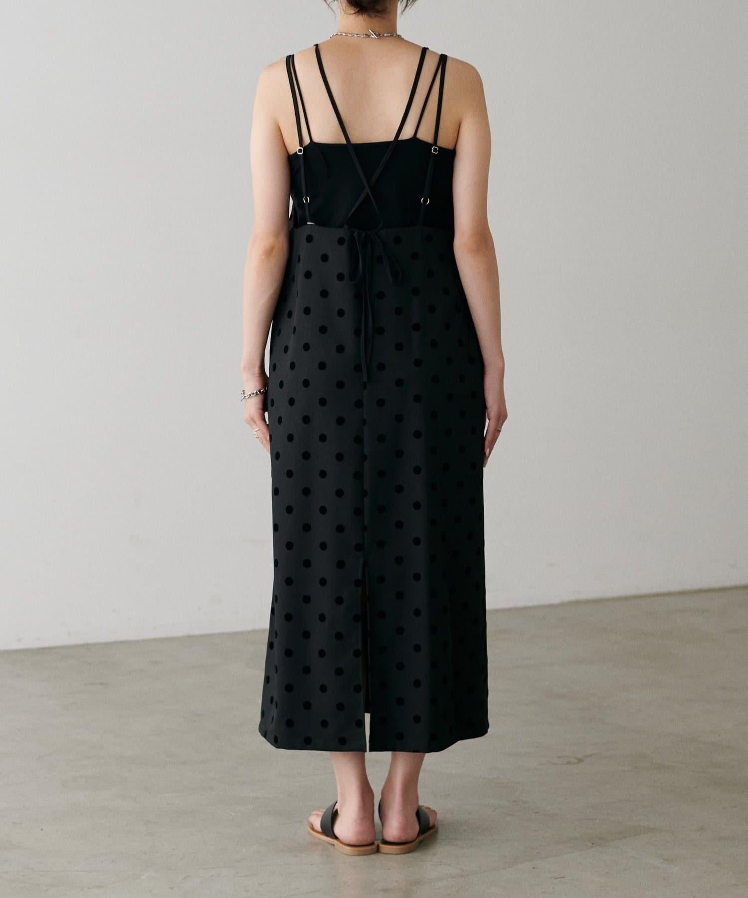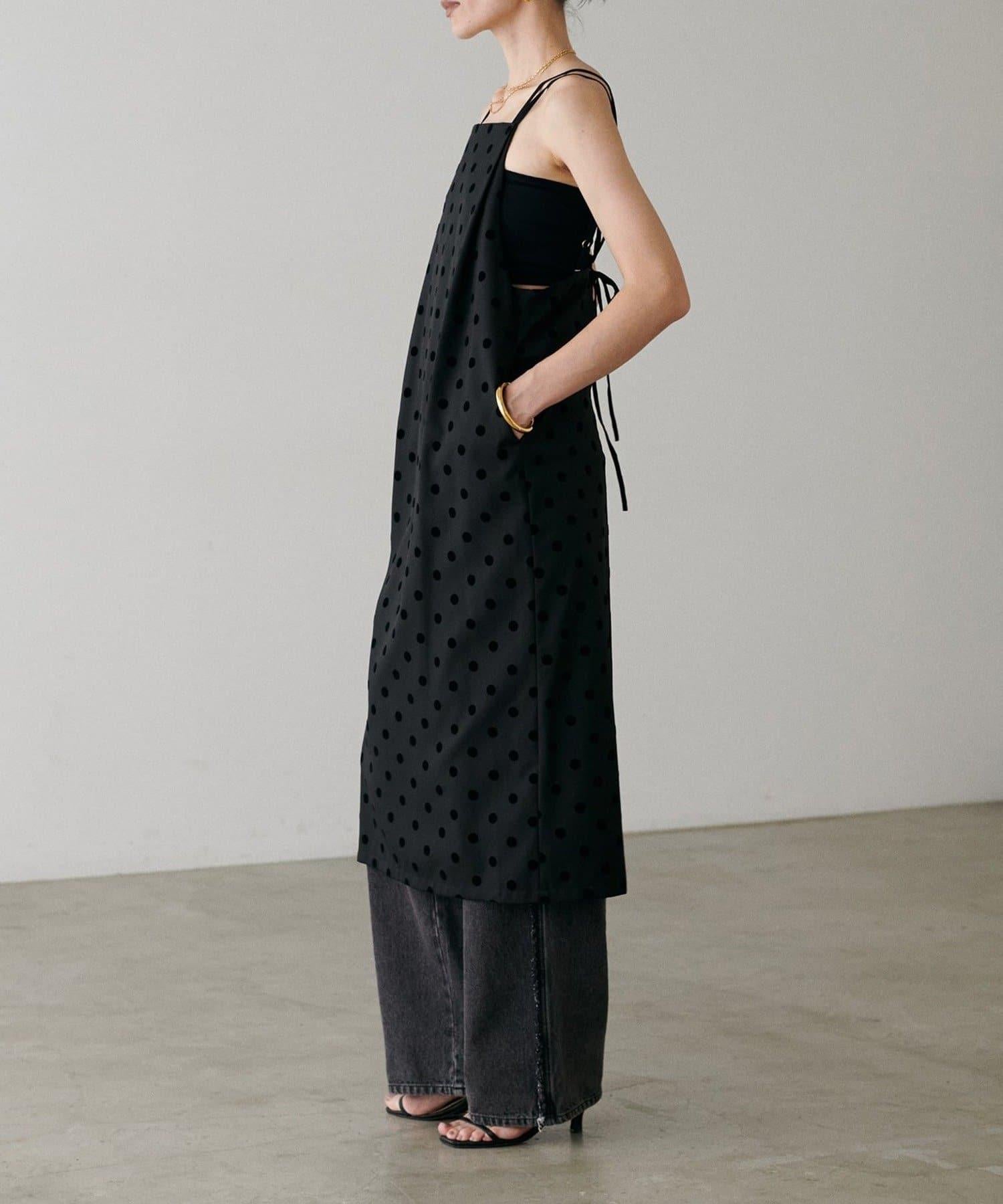 【LARUTA】斜紋植絨波點吊帶連衣裙