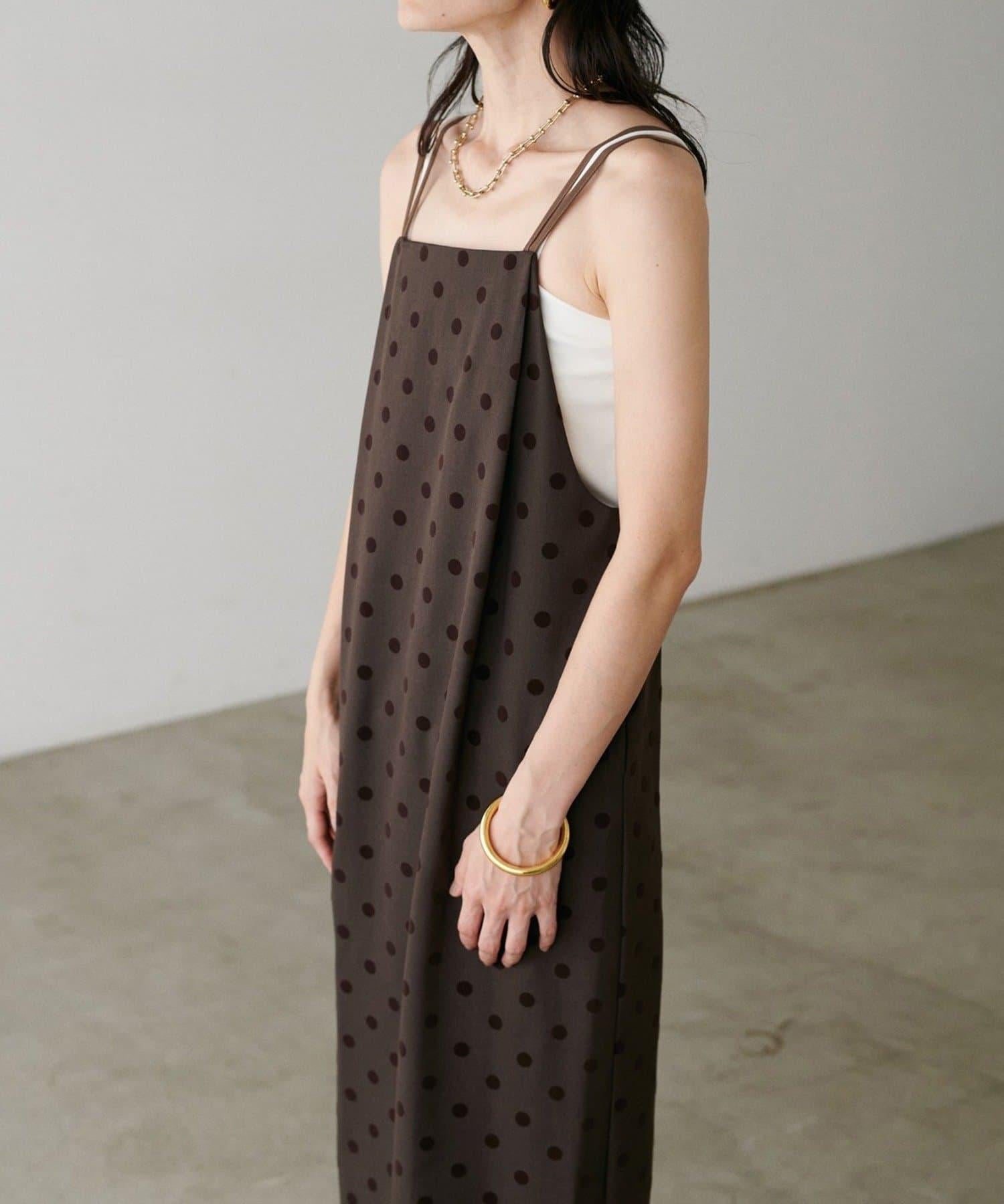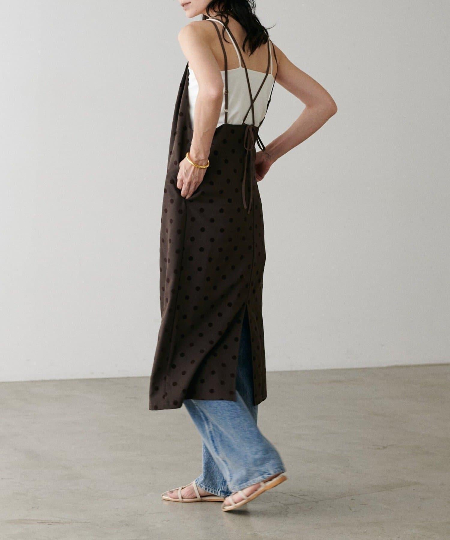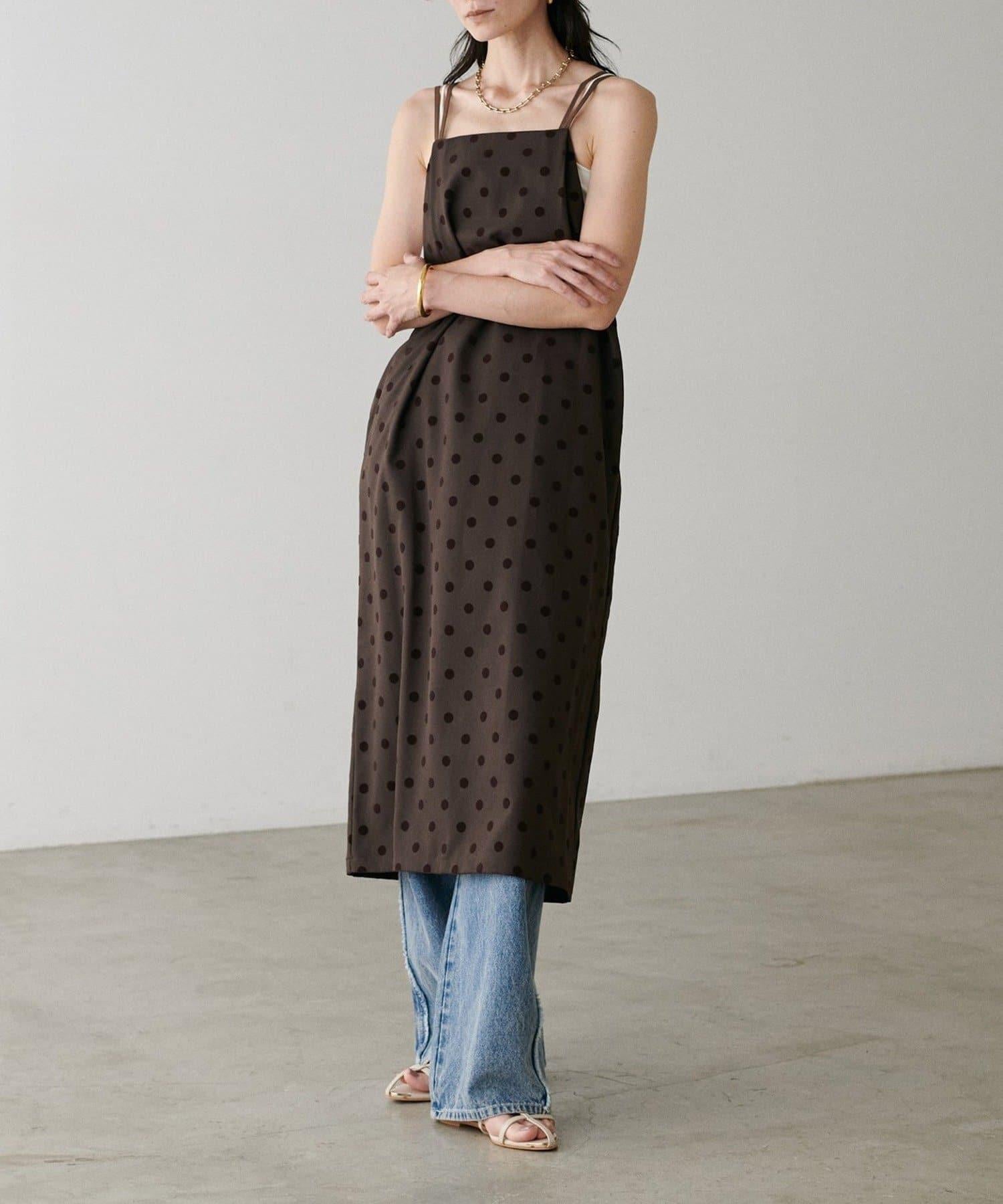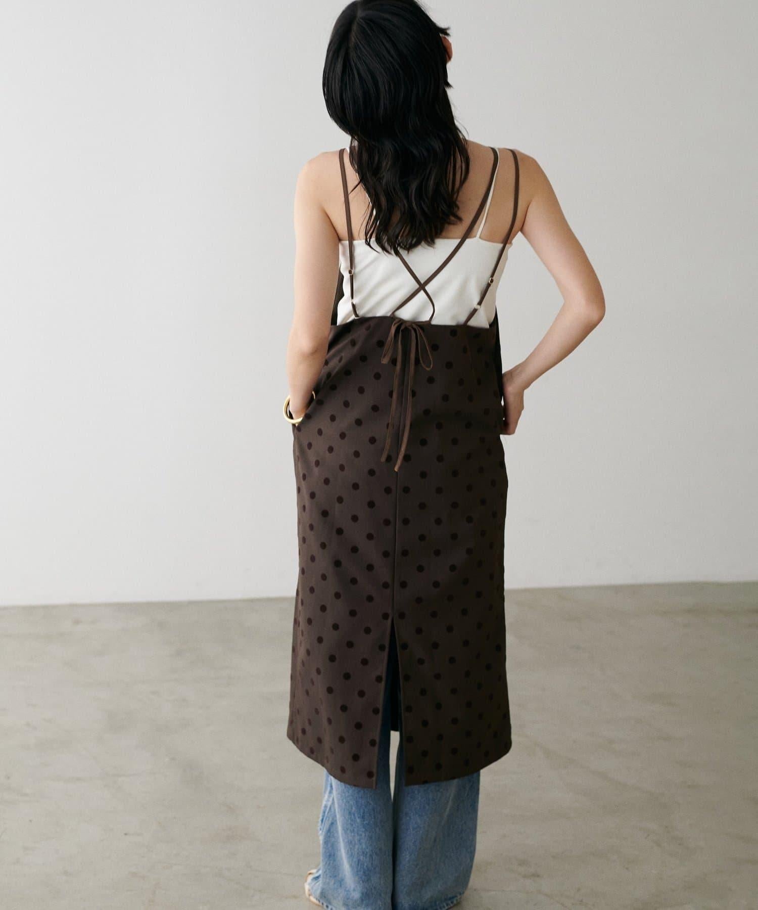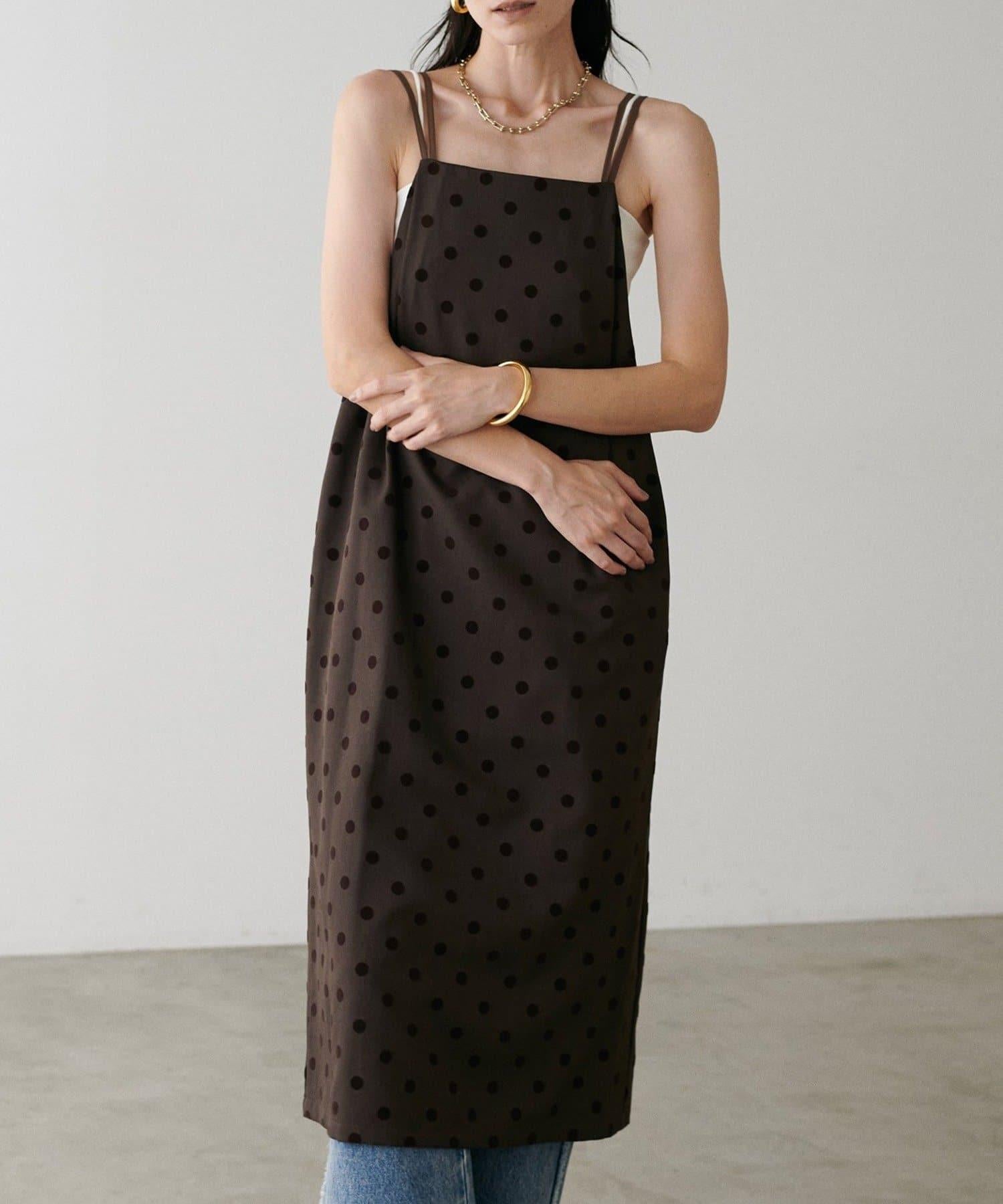 【LARUTA】斜紋植絨波點吊帶連衣裙