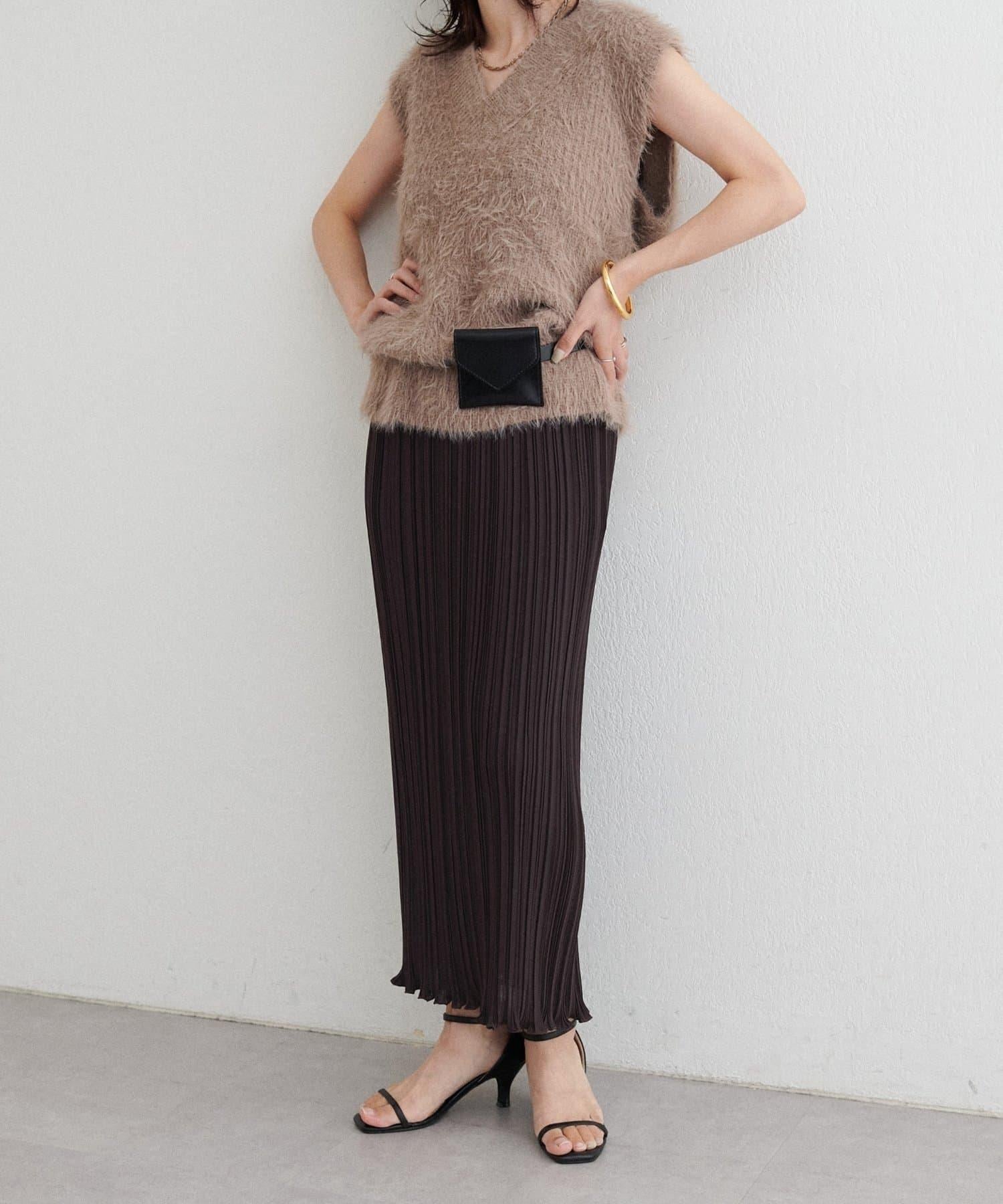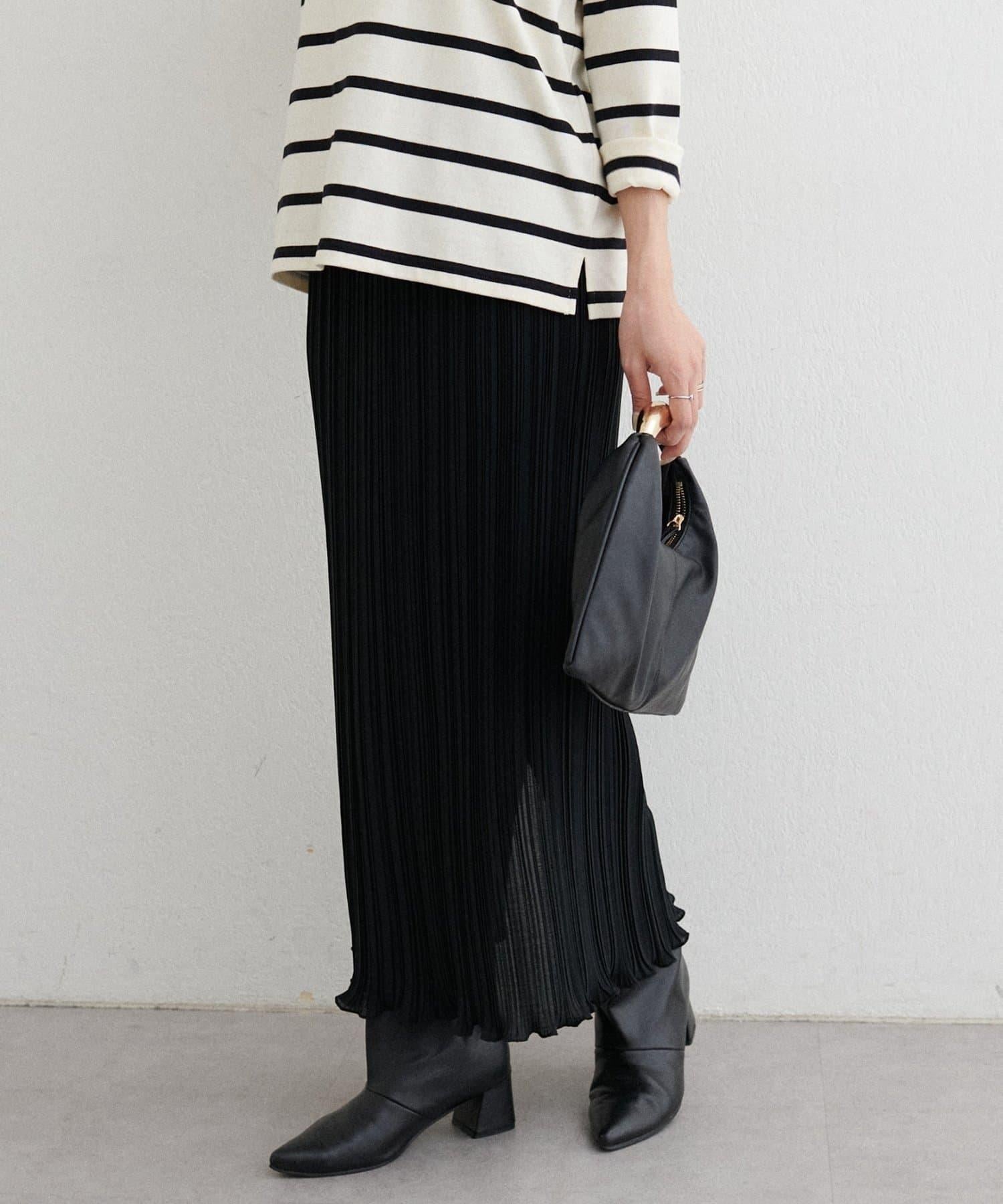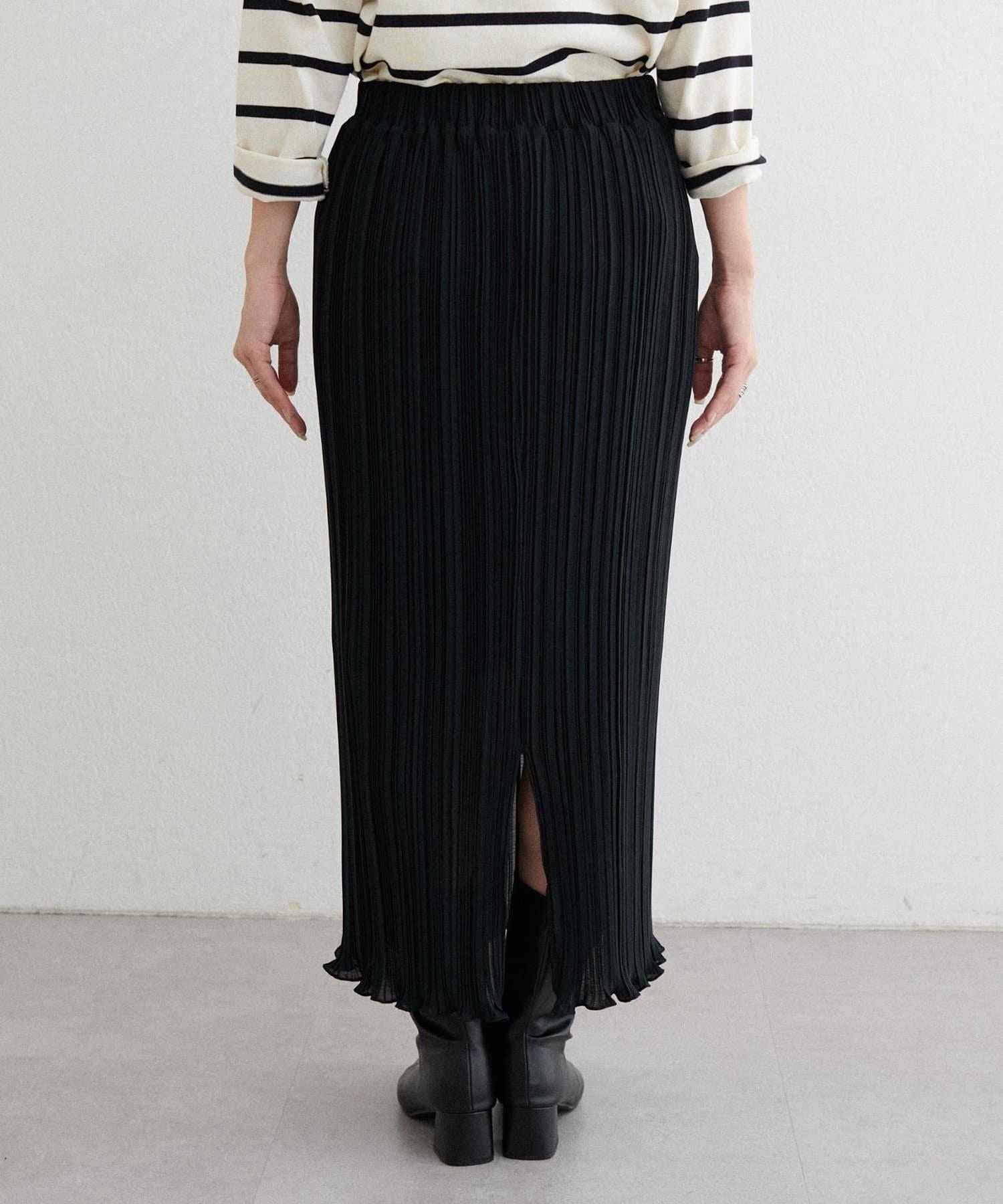 帶有褶皺的緊身裙,採用簡潔的 I 字形剪裁。