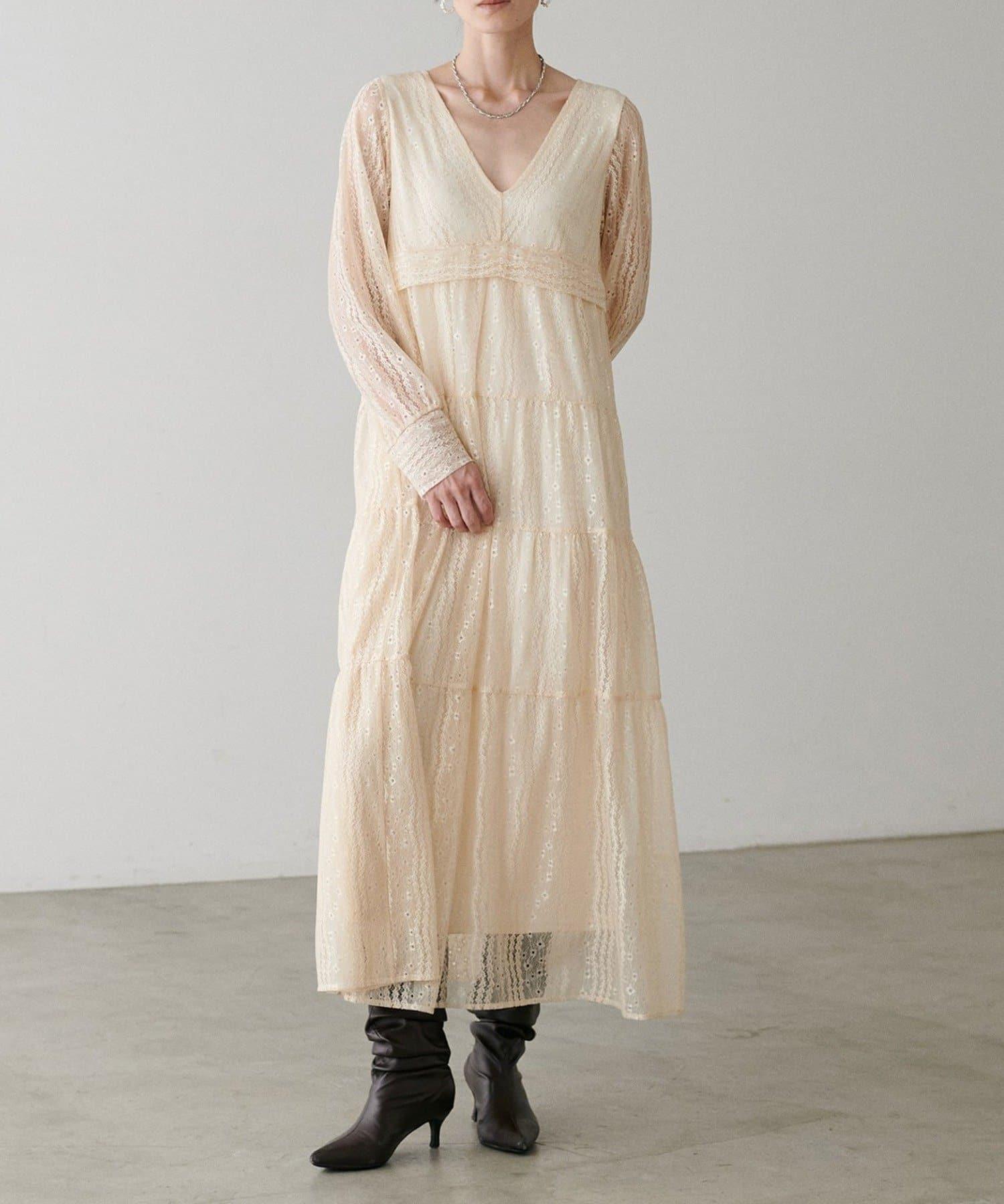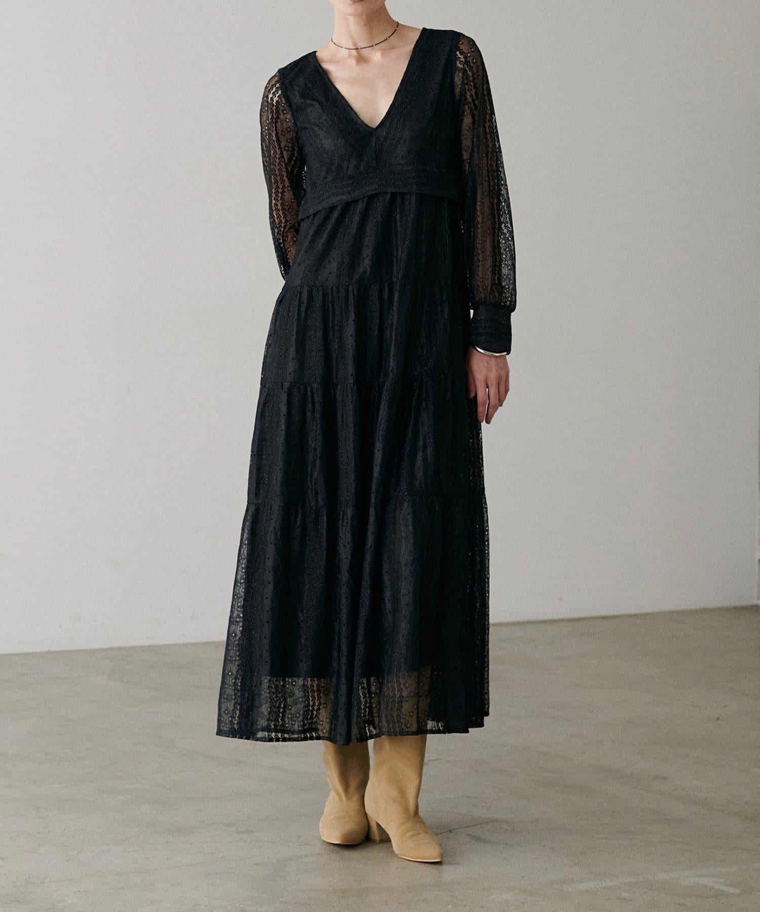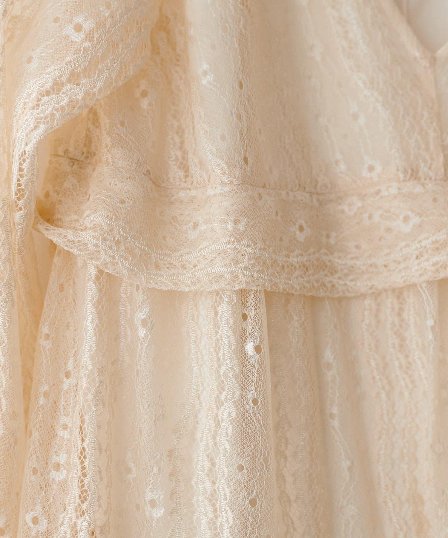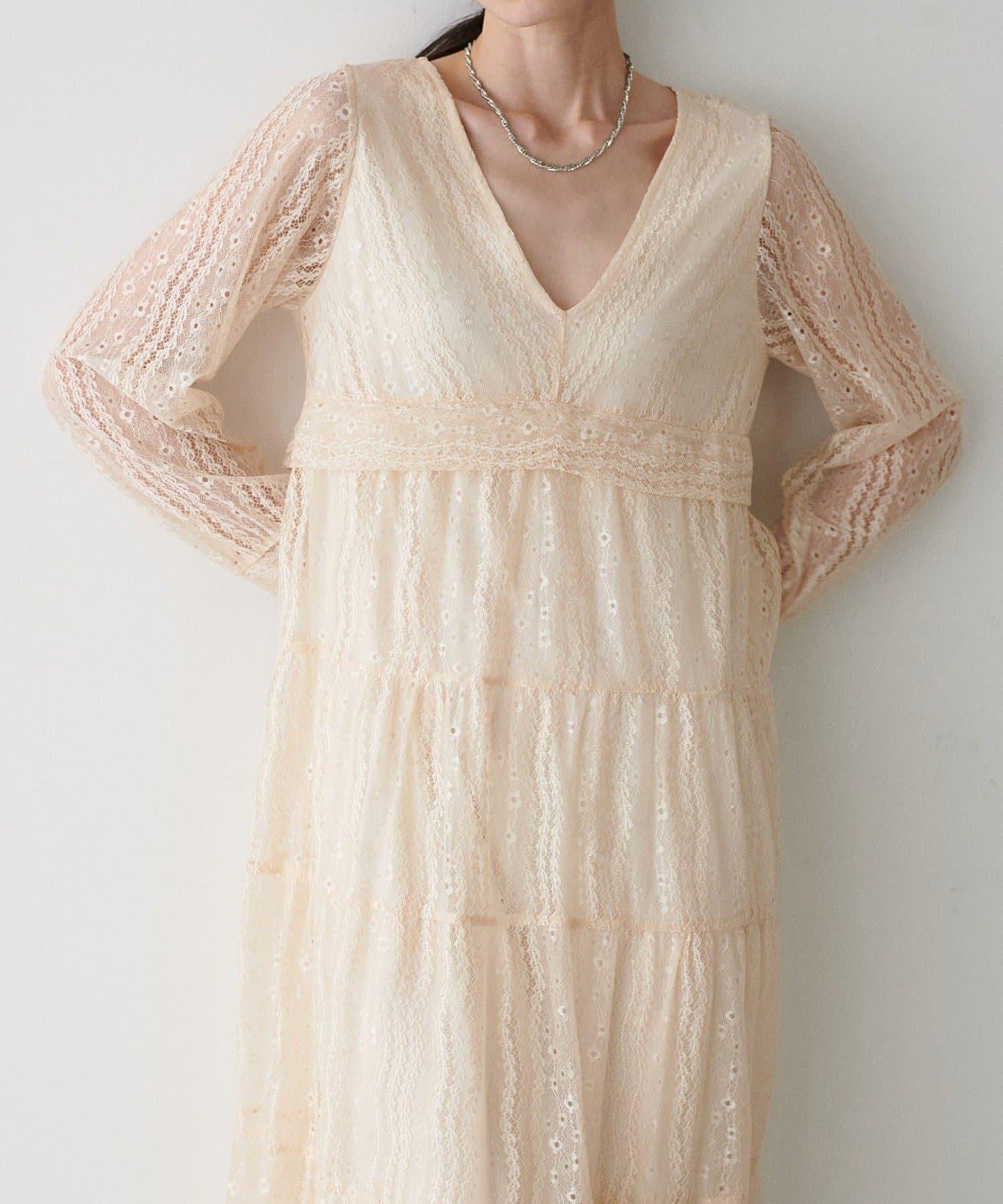 連身長裙,精緻的蕾絲設計令人印象深刻。