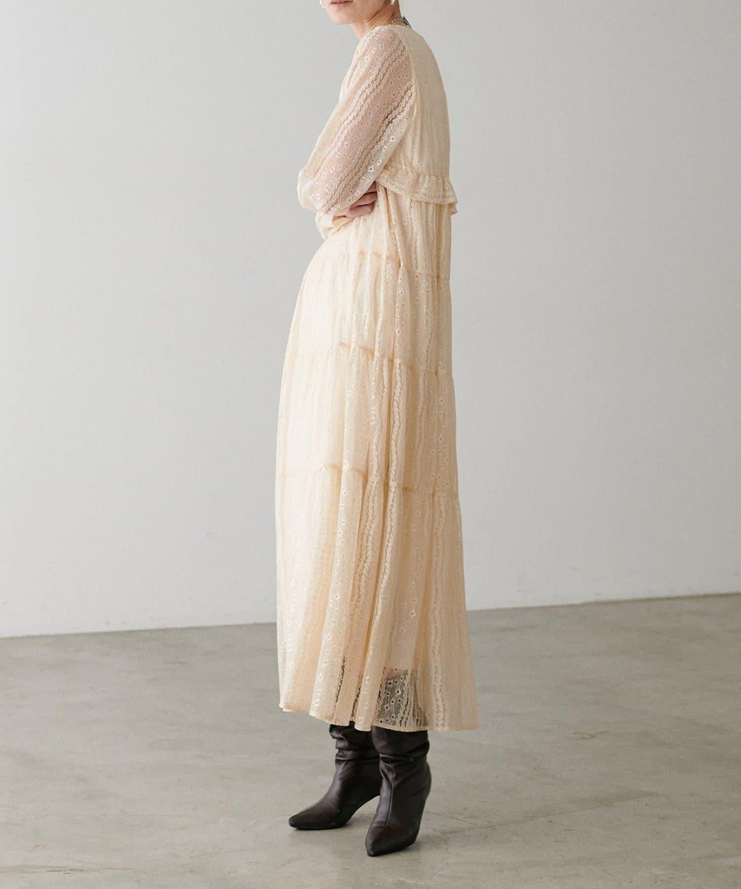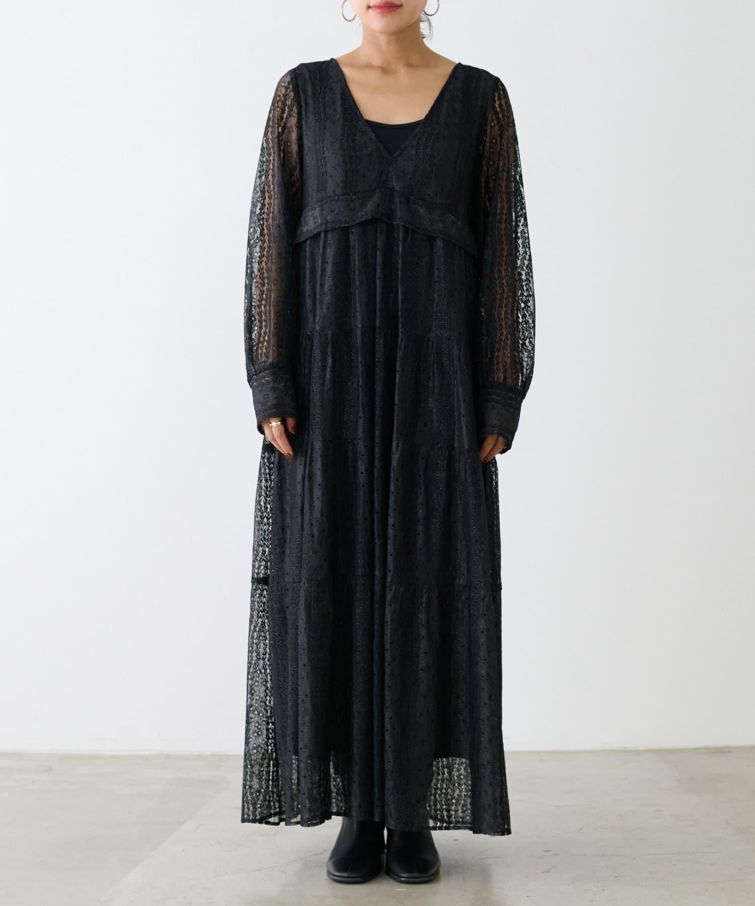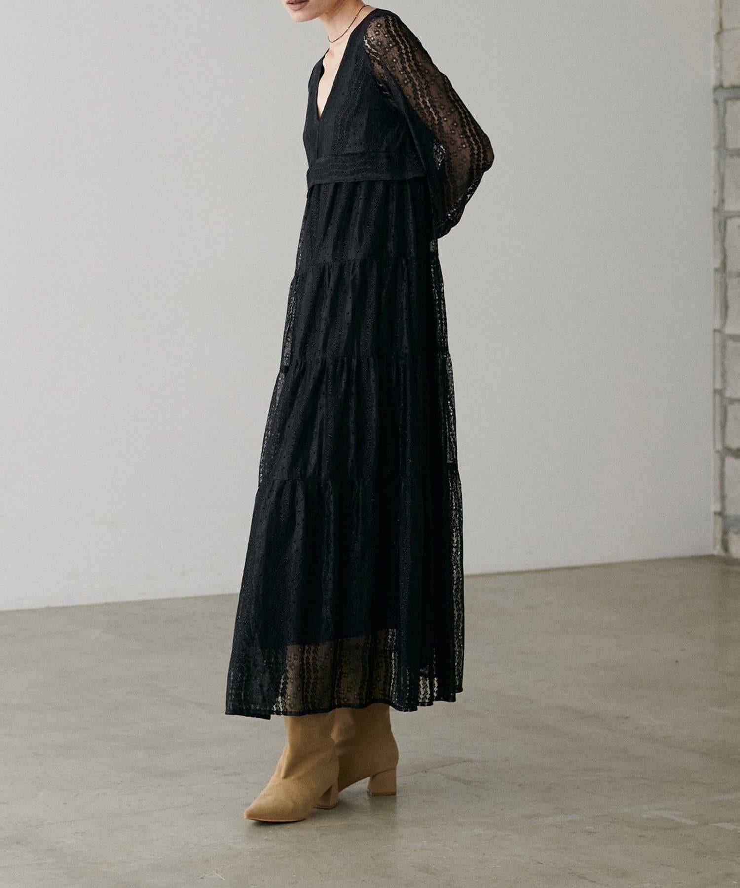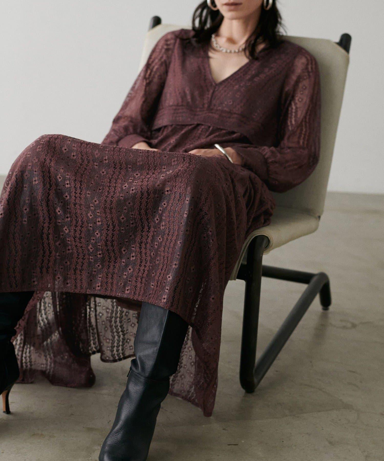 連身長裙,精緻的蕾絲設計令人印象深刻。