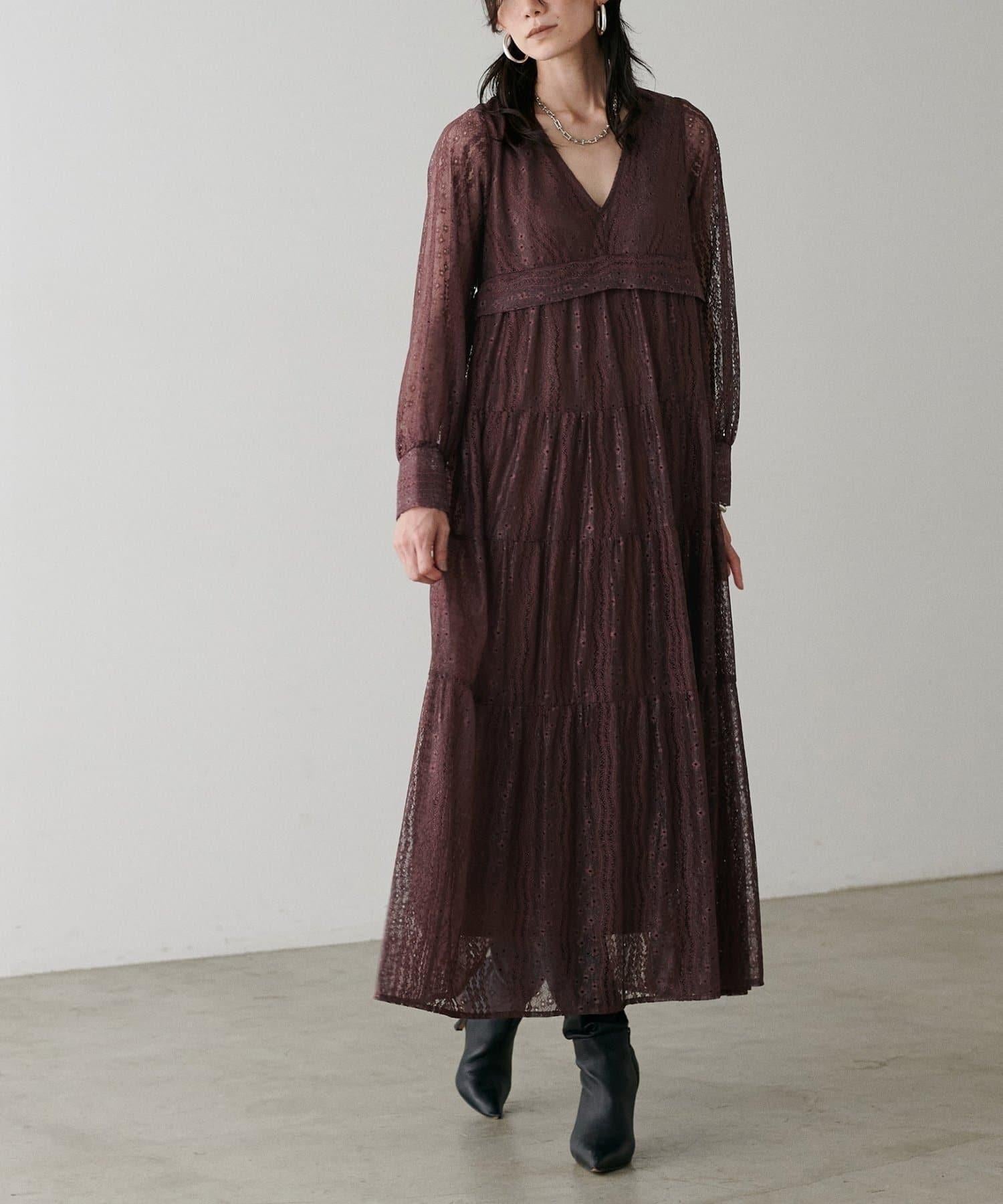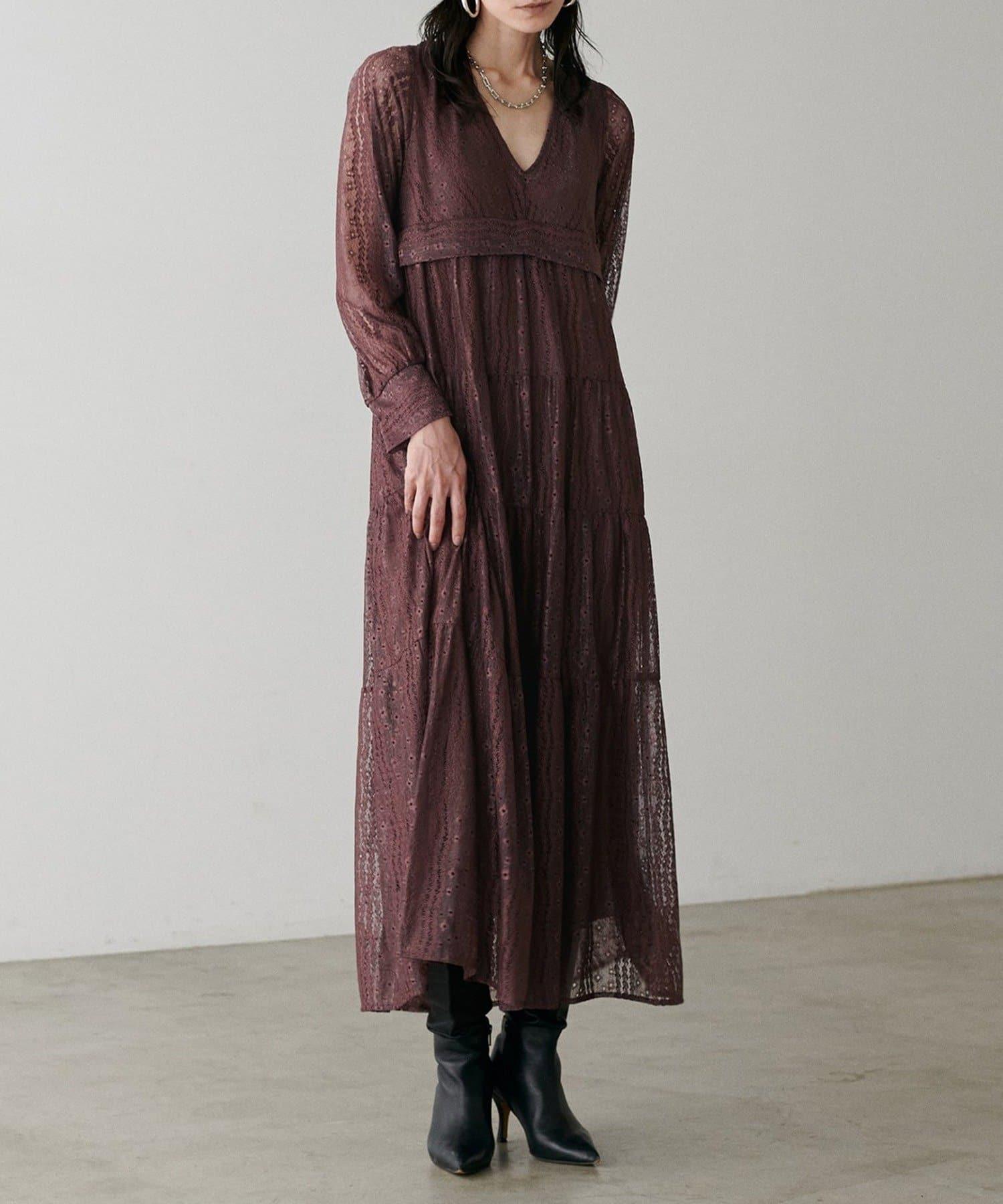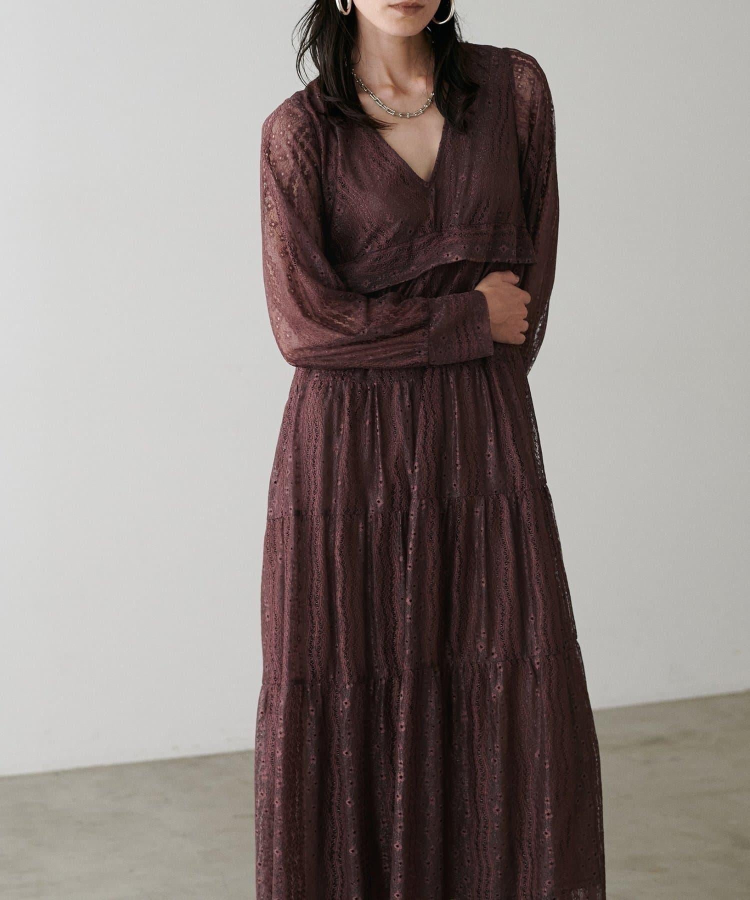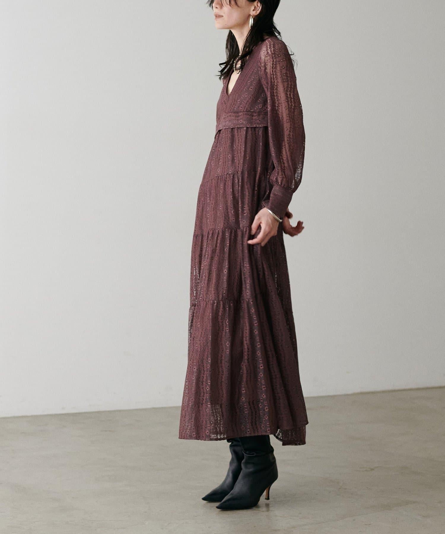 連身長裙,精緻的蕾絲設計令人印象深刻。