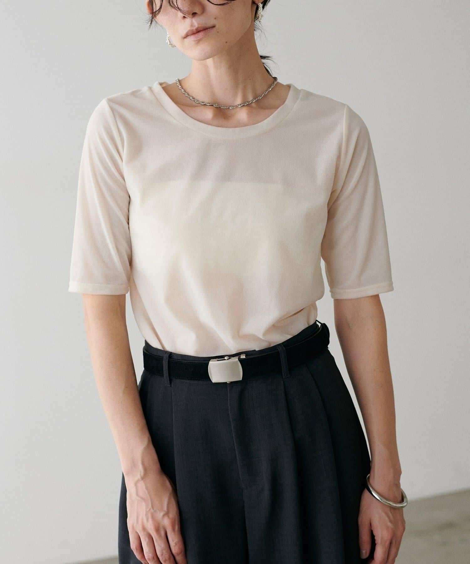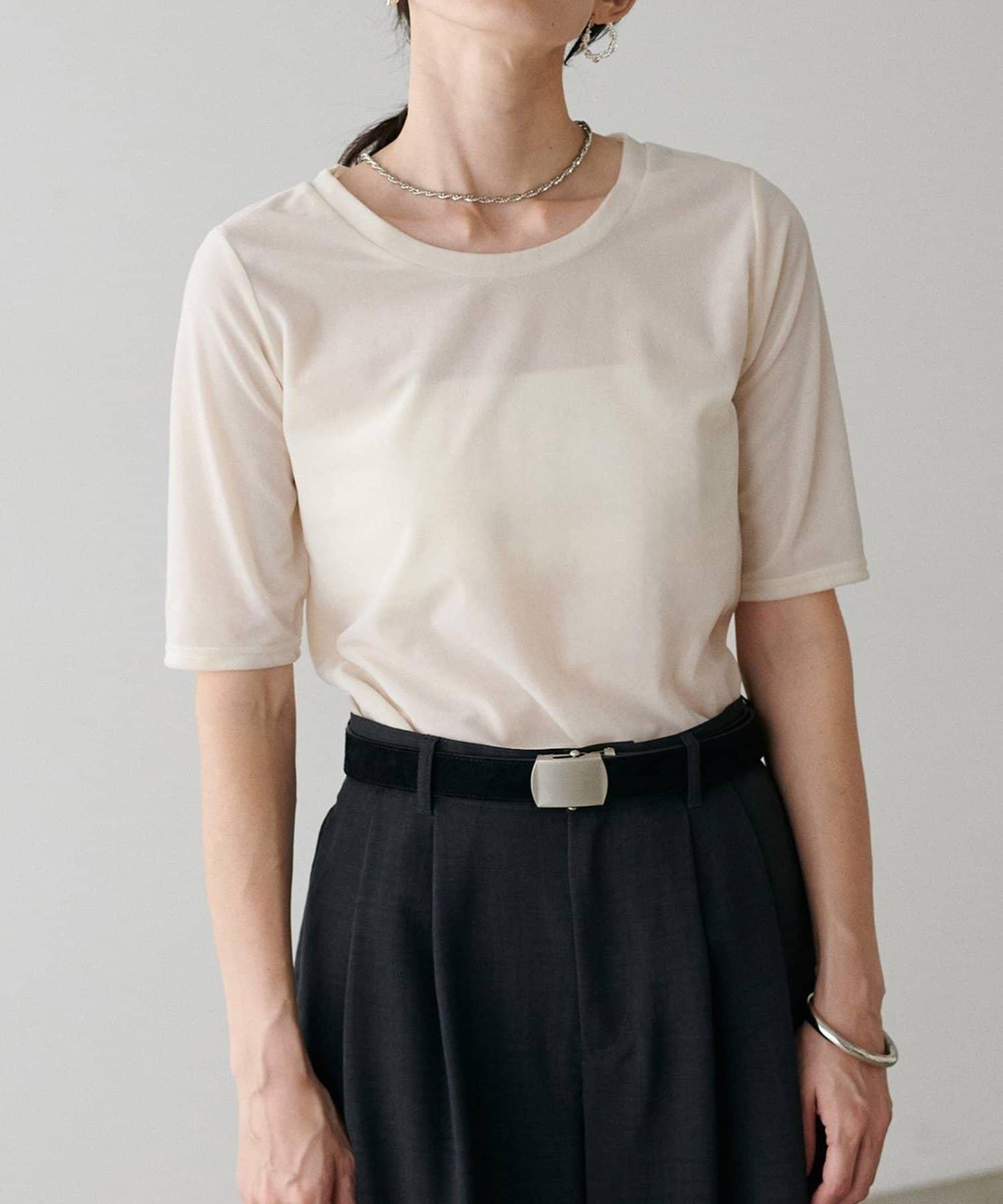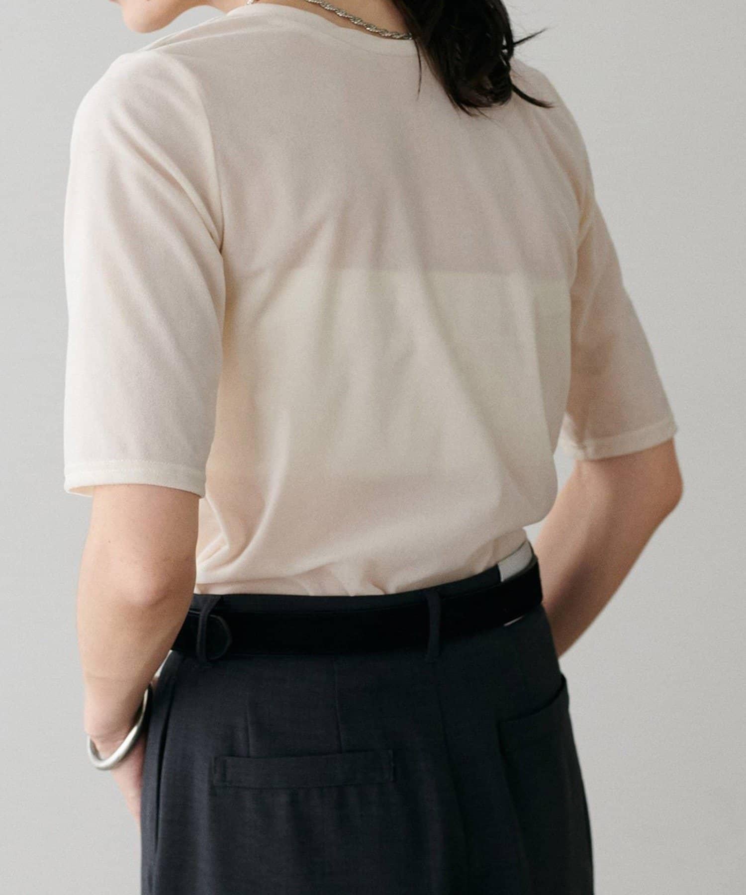 薄絲絨短袖套頭衫具有優雅的光澤和微妙的透明度。