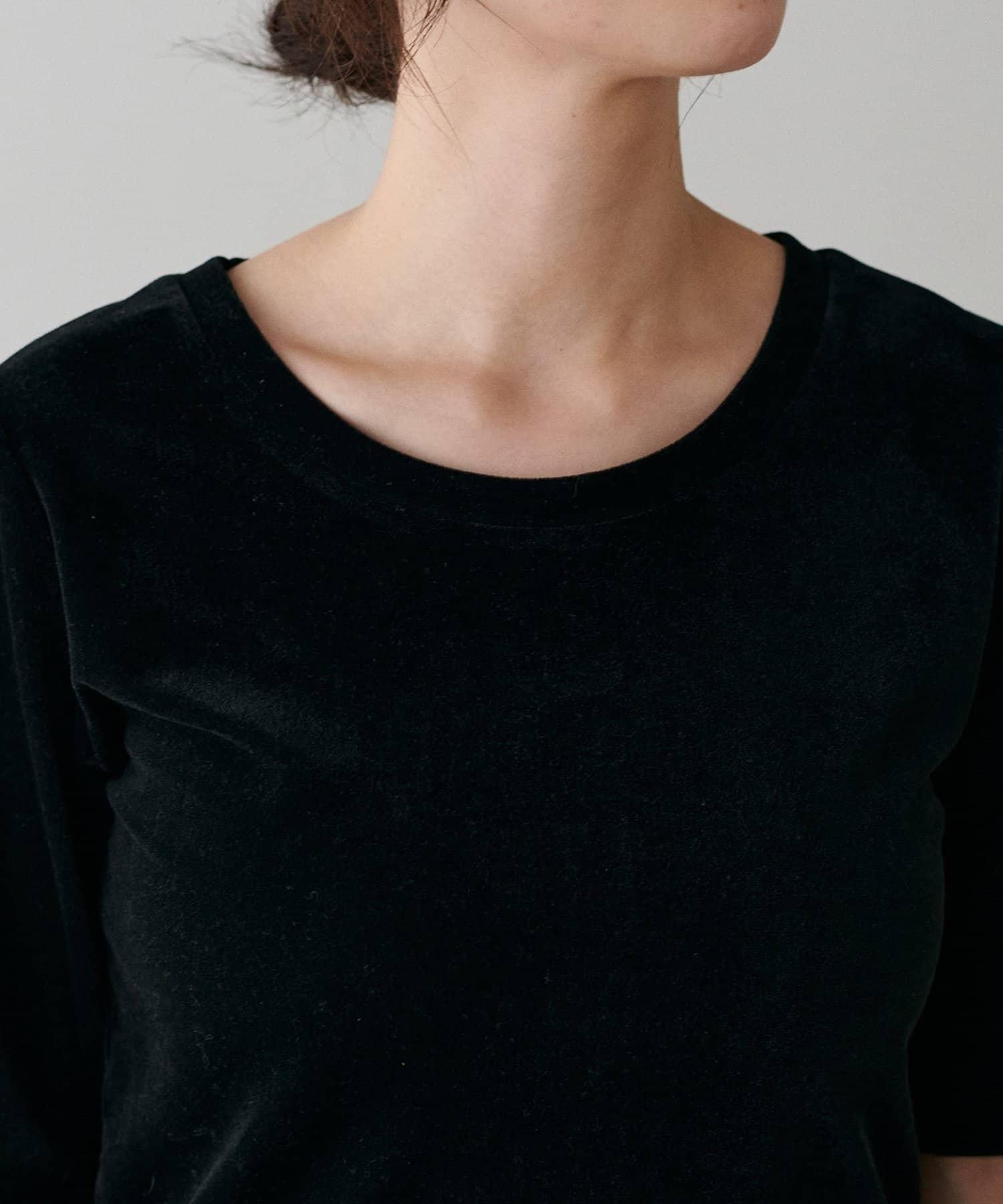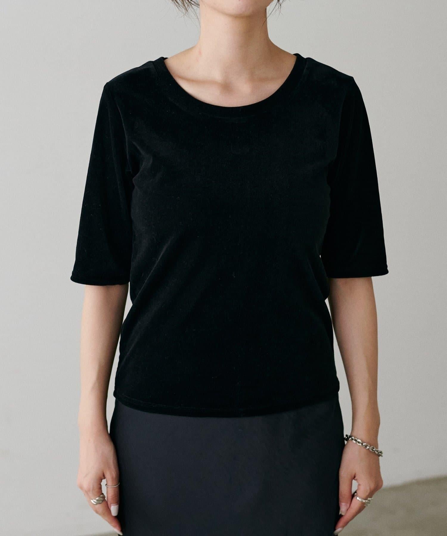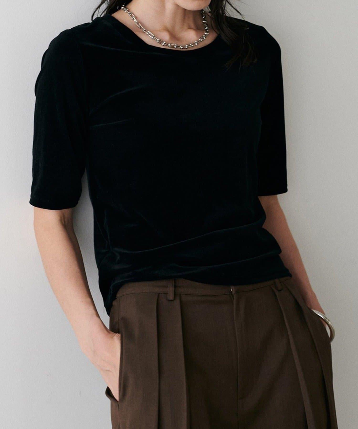 【LARUTA】輕薄天鵝絨短袖套頭衫
