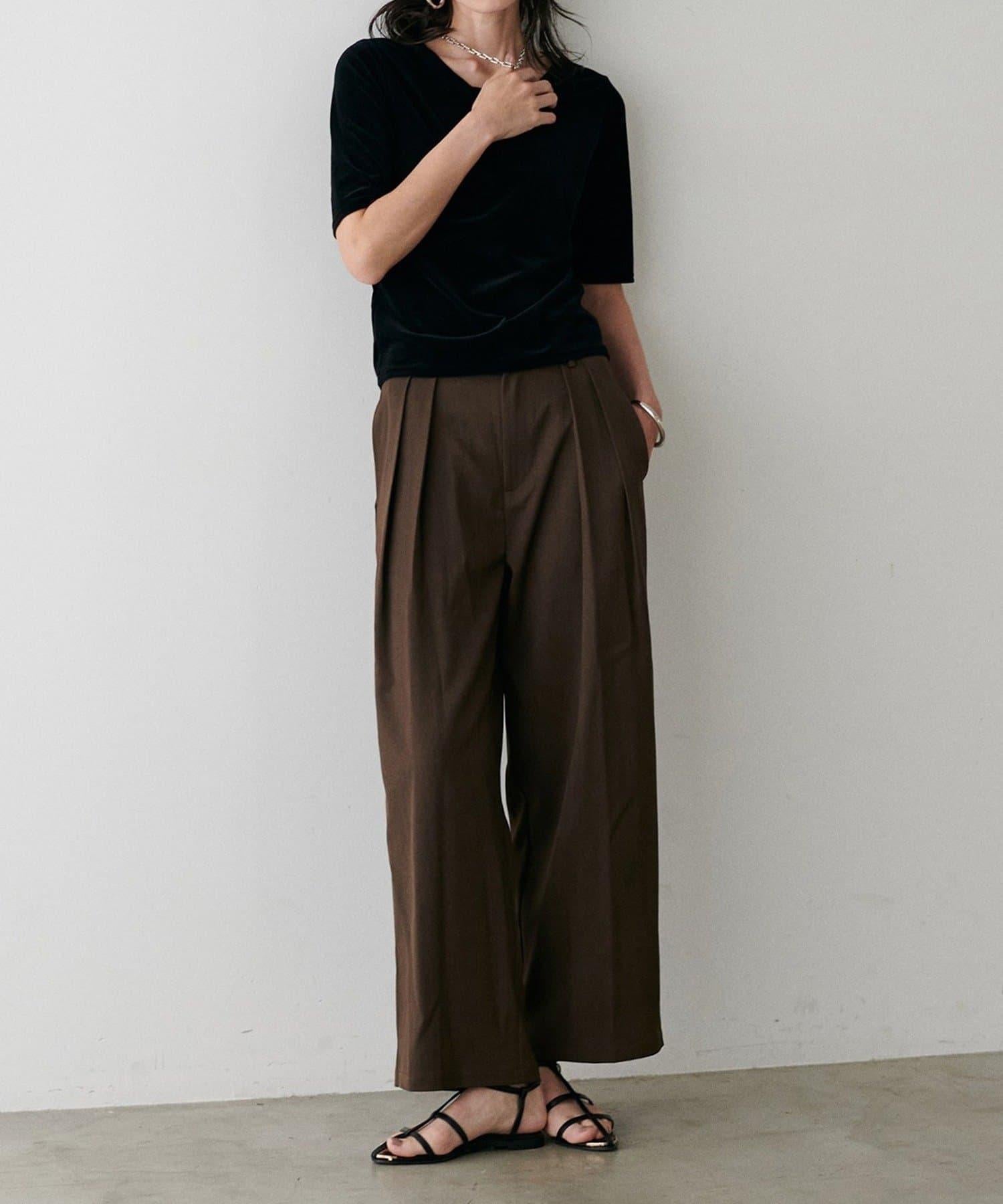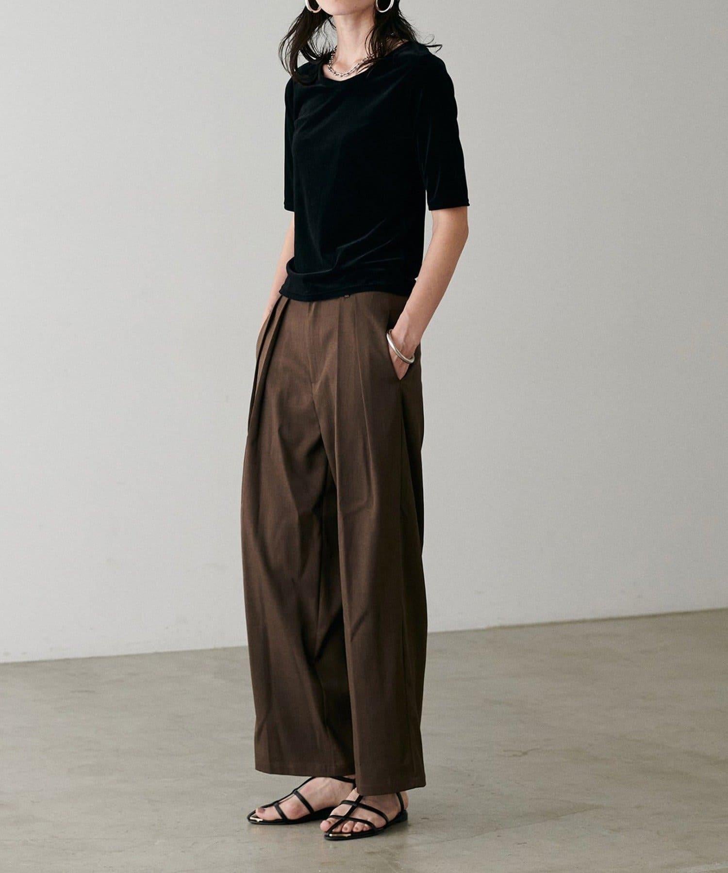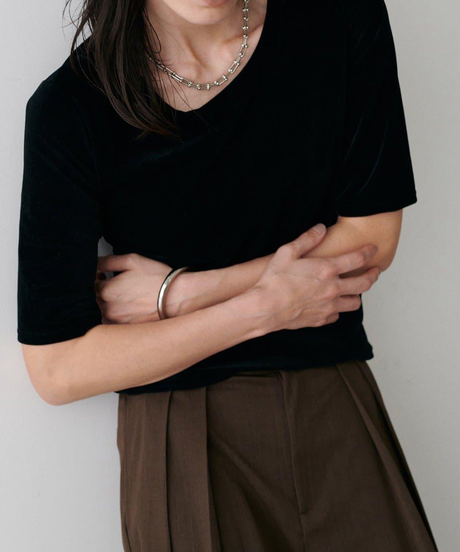 【LARUTA】輕薄天鵝絨短袖套頭衫