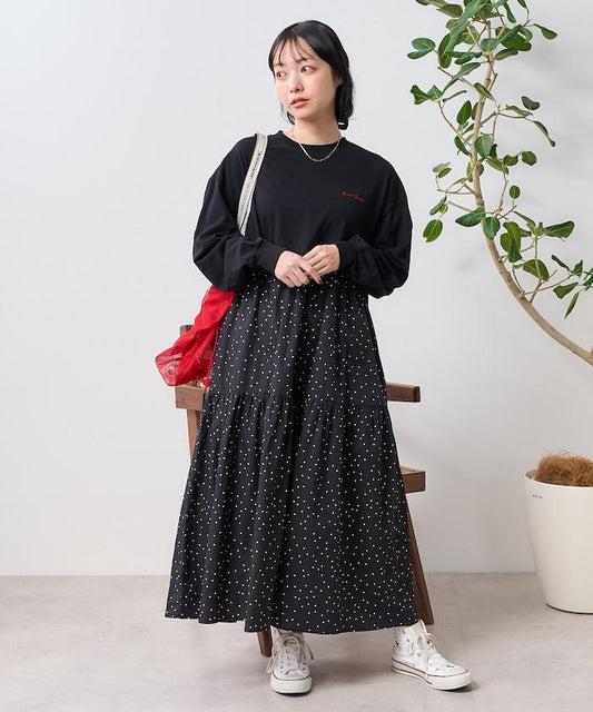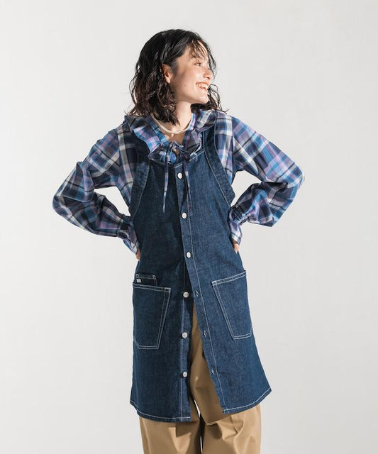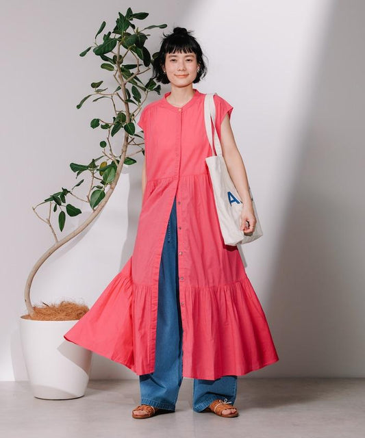 前短後長的混色雙面連衣裙,採用全針繡工藝。