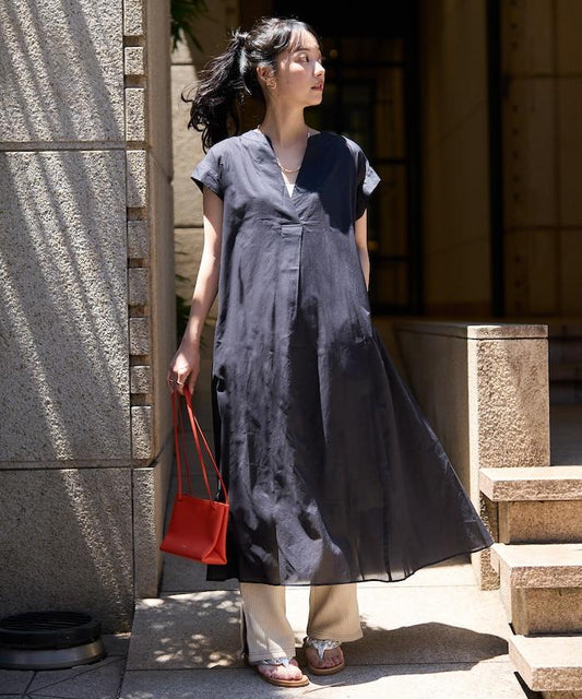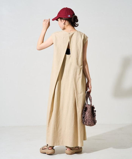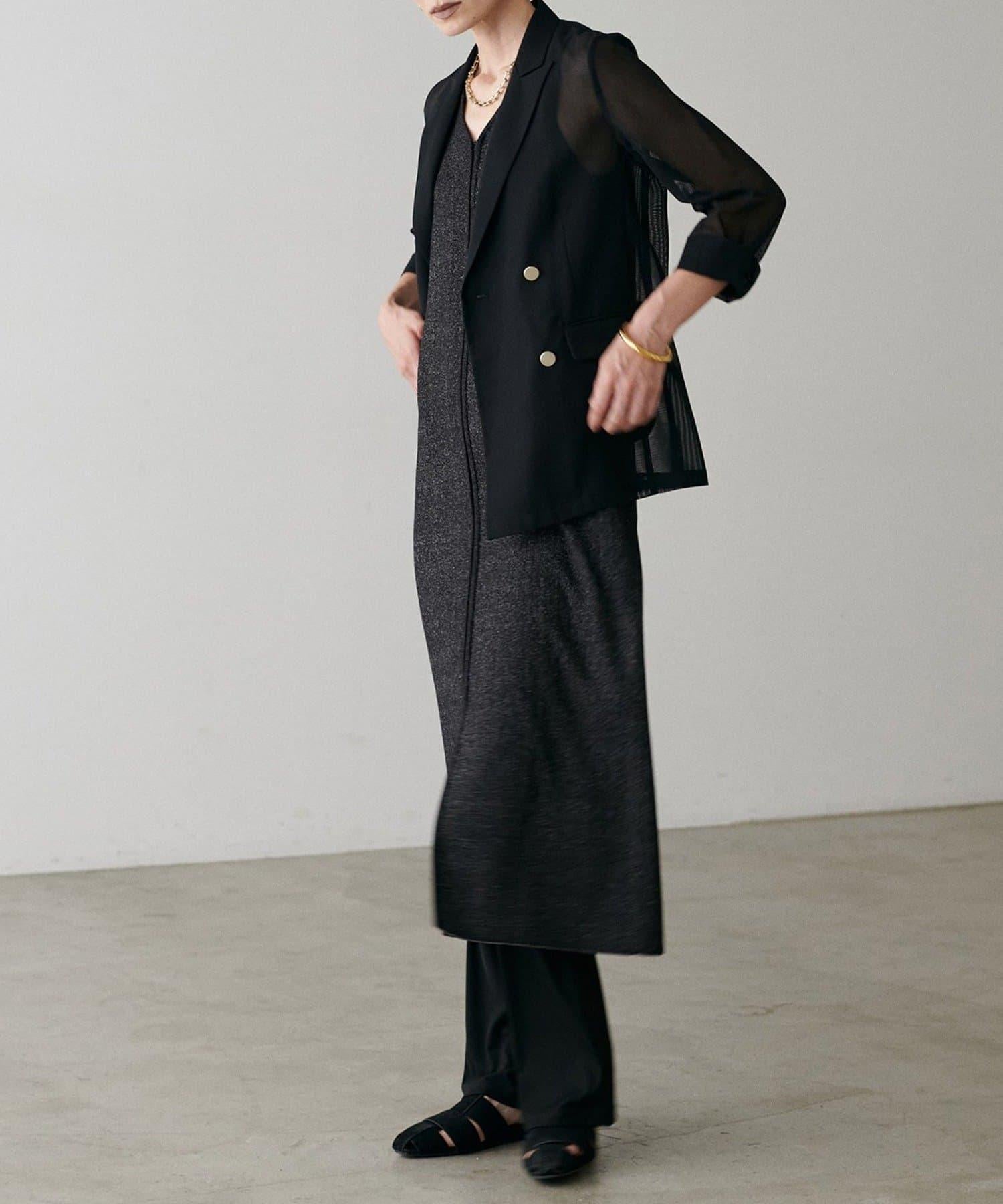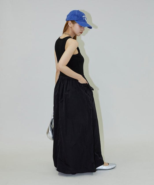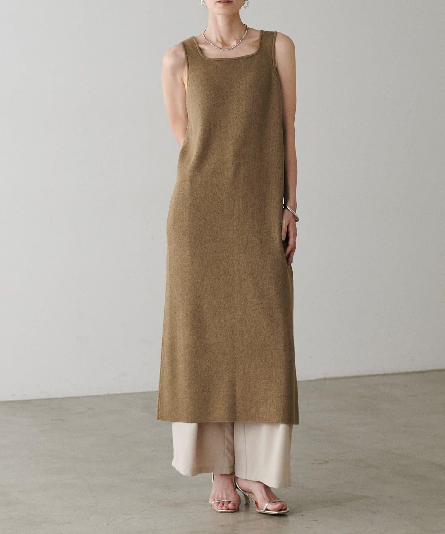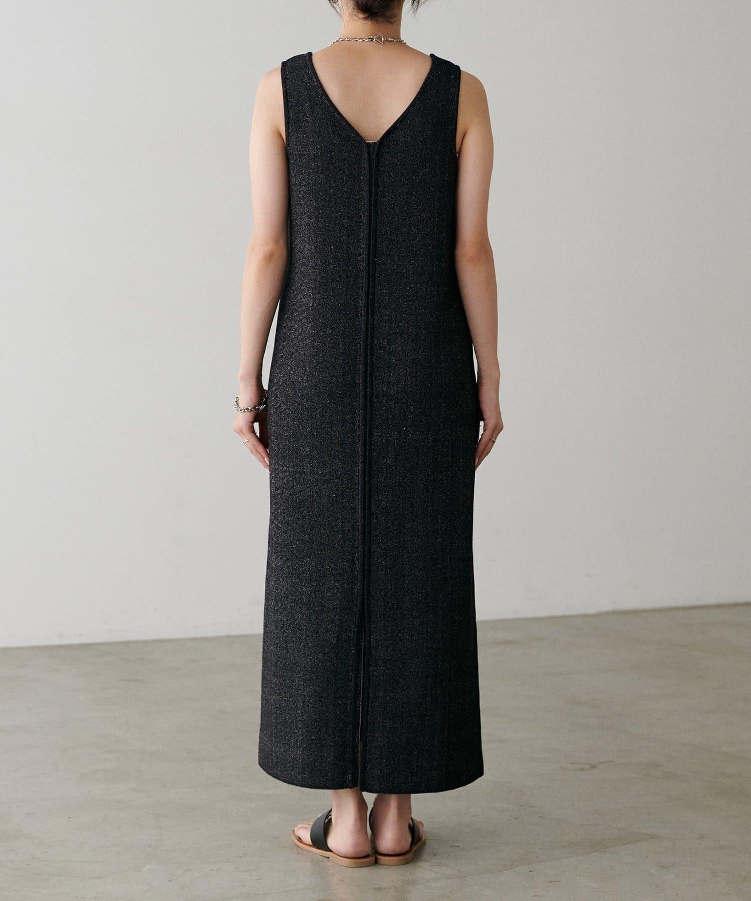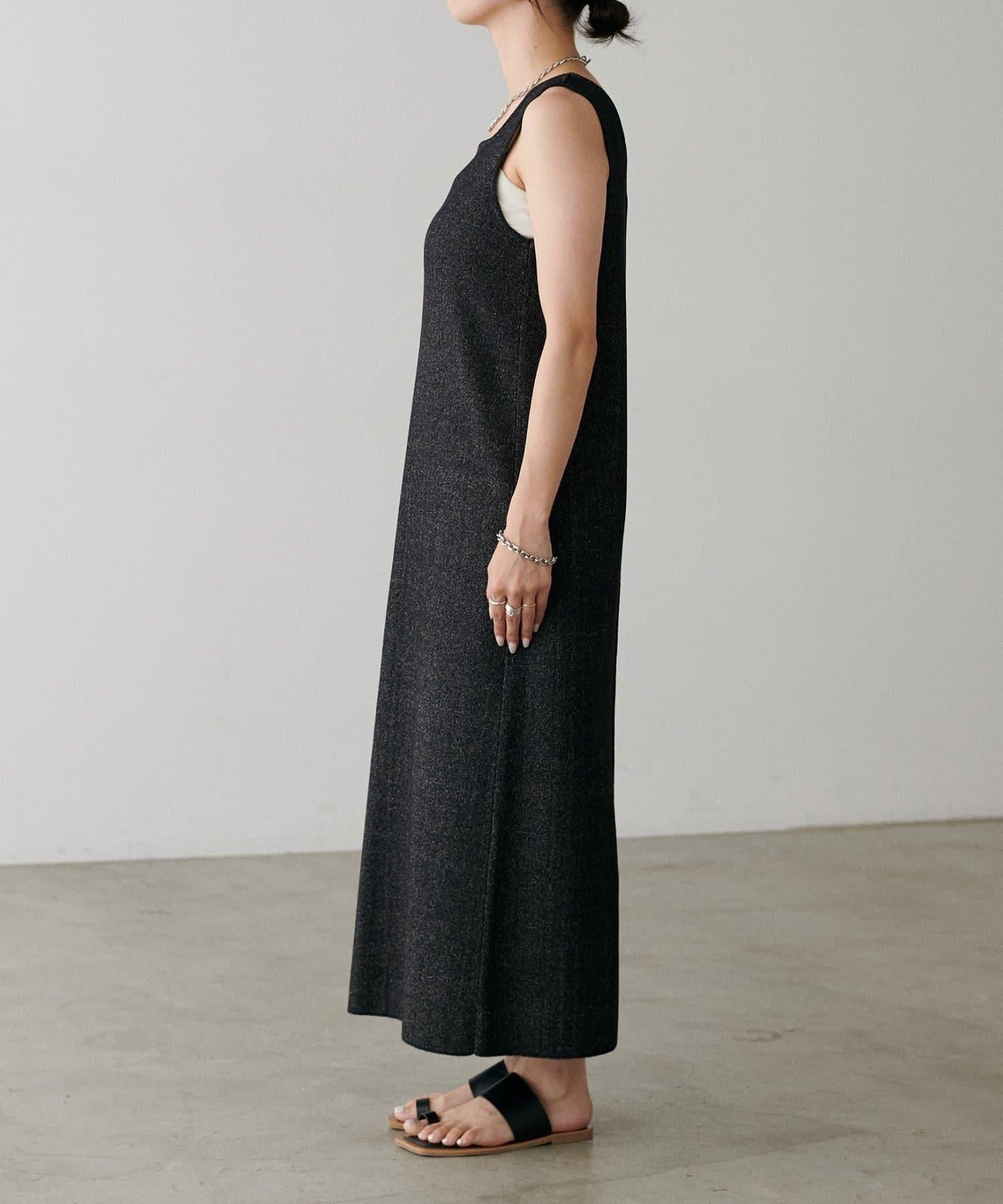 前後雙向規格的無袖針織連衣裙,採用柔軟的黑色紗線編織而成。