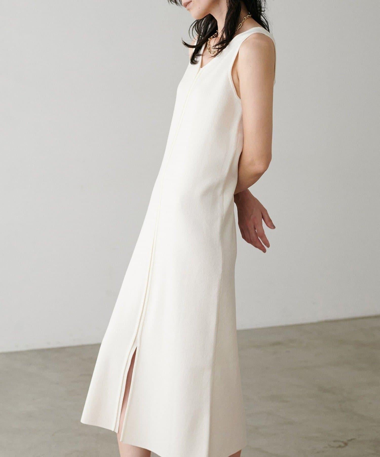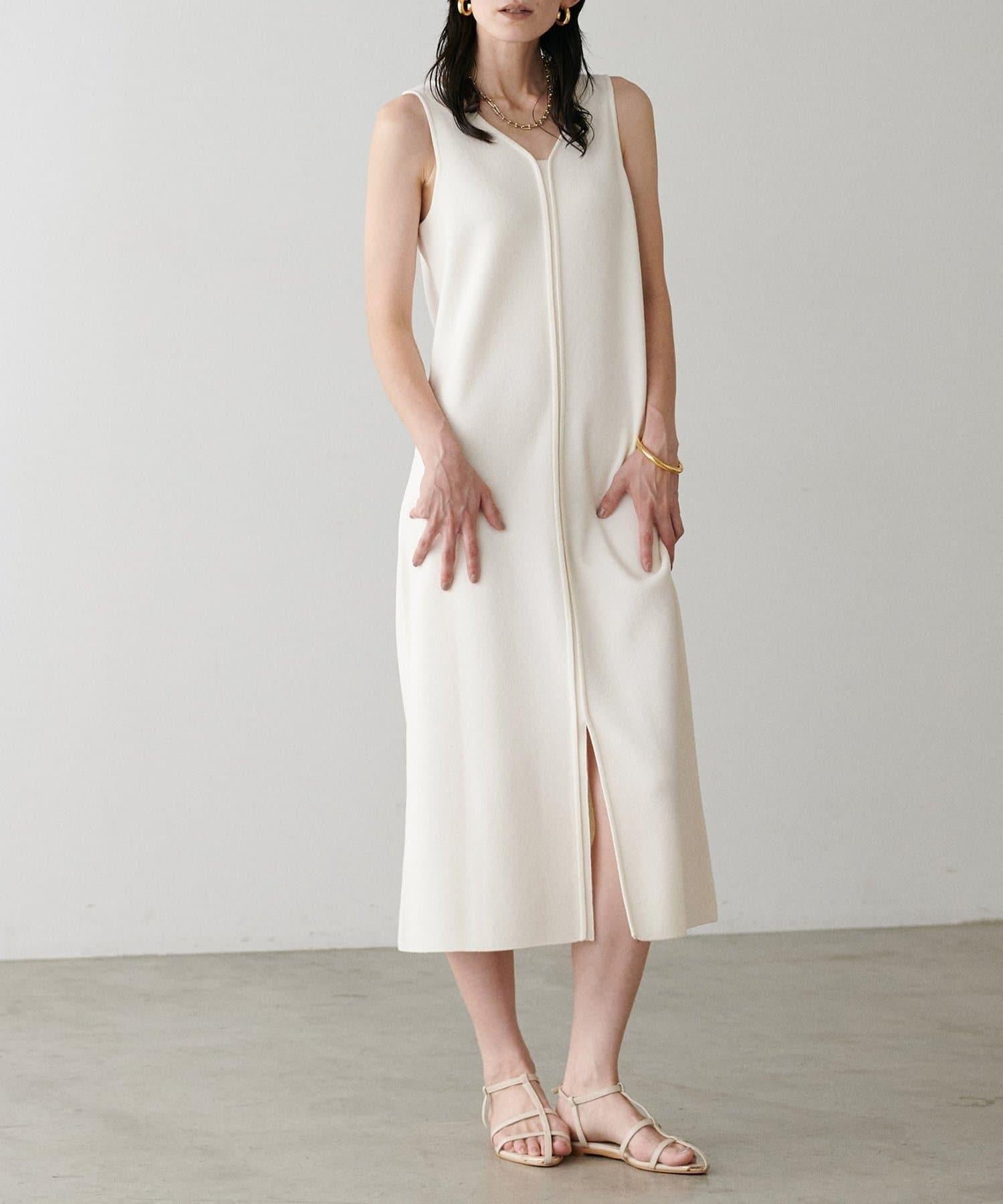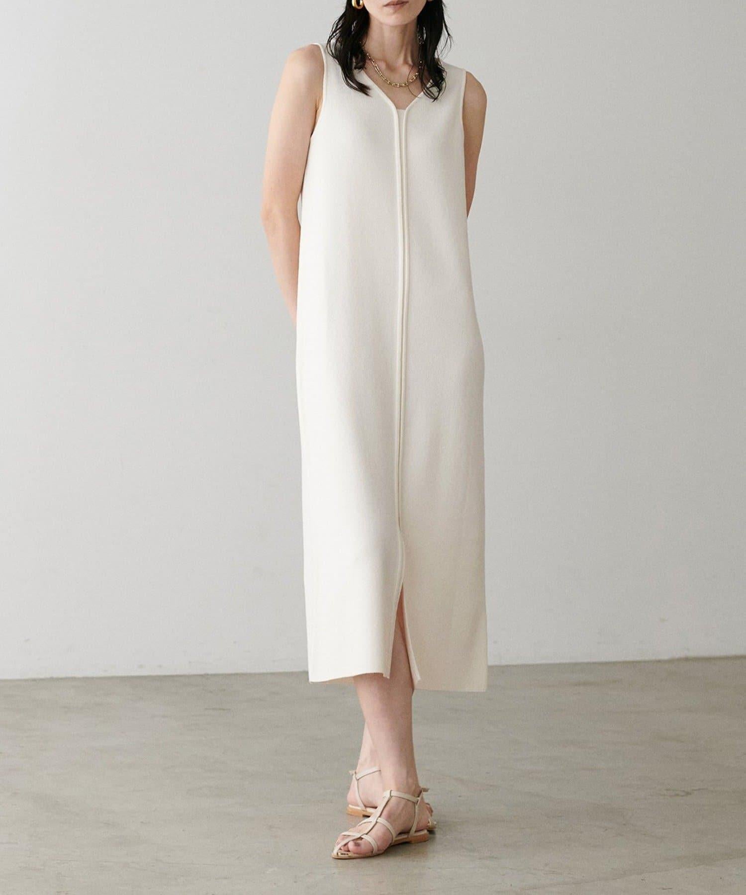 厚薄適中的全針針織不會過多地勾勒出身體線條,打造出整齊垂直的優美廓形。