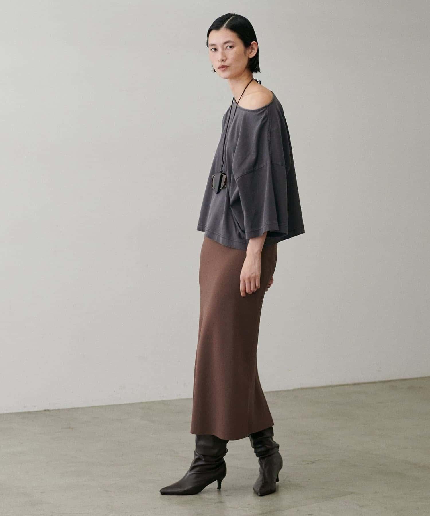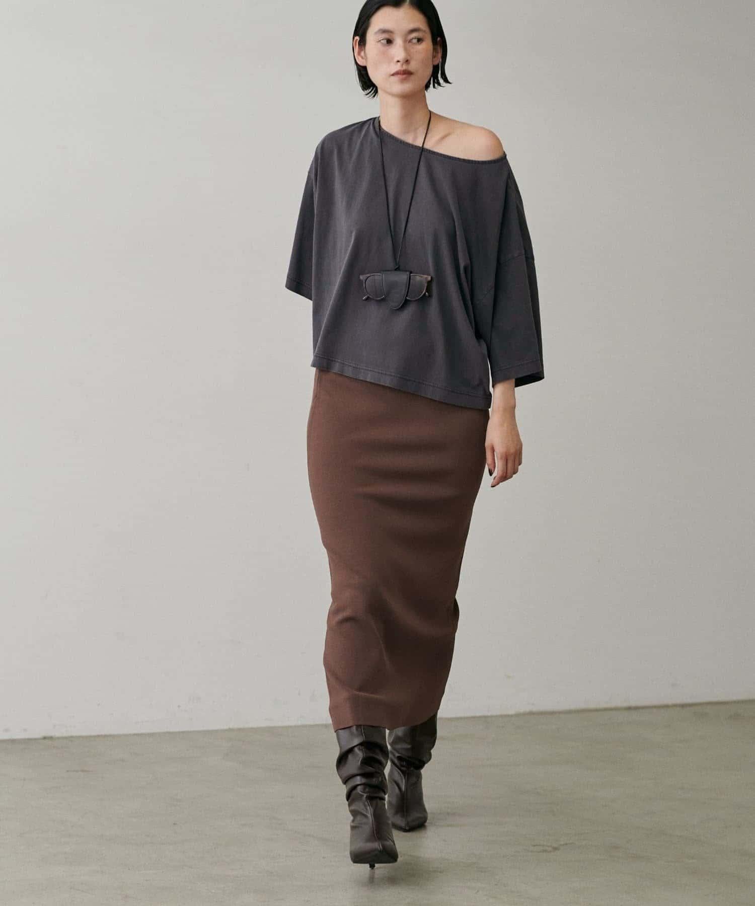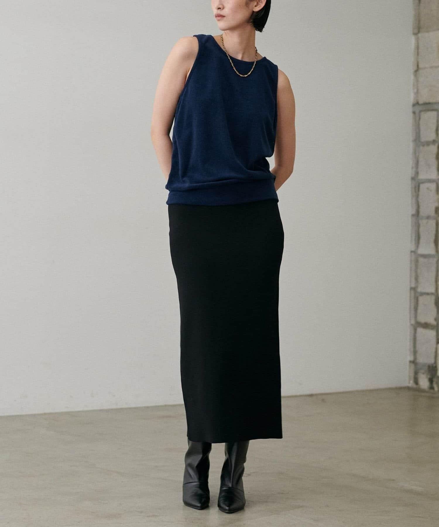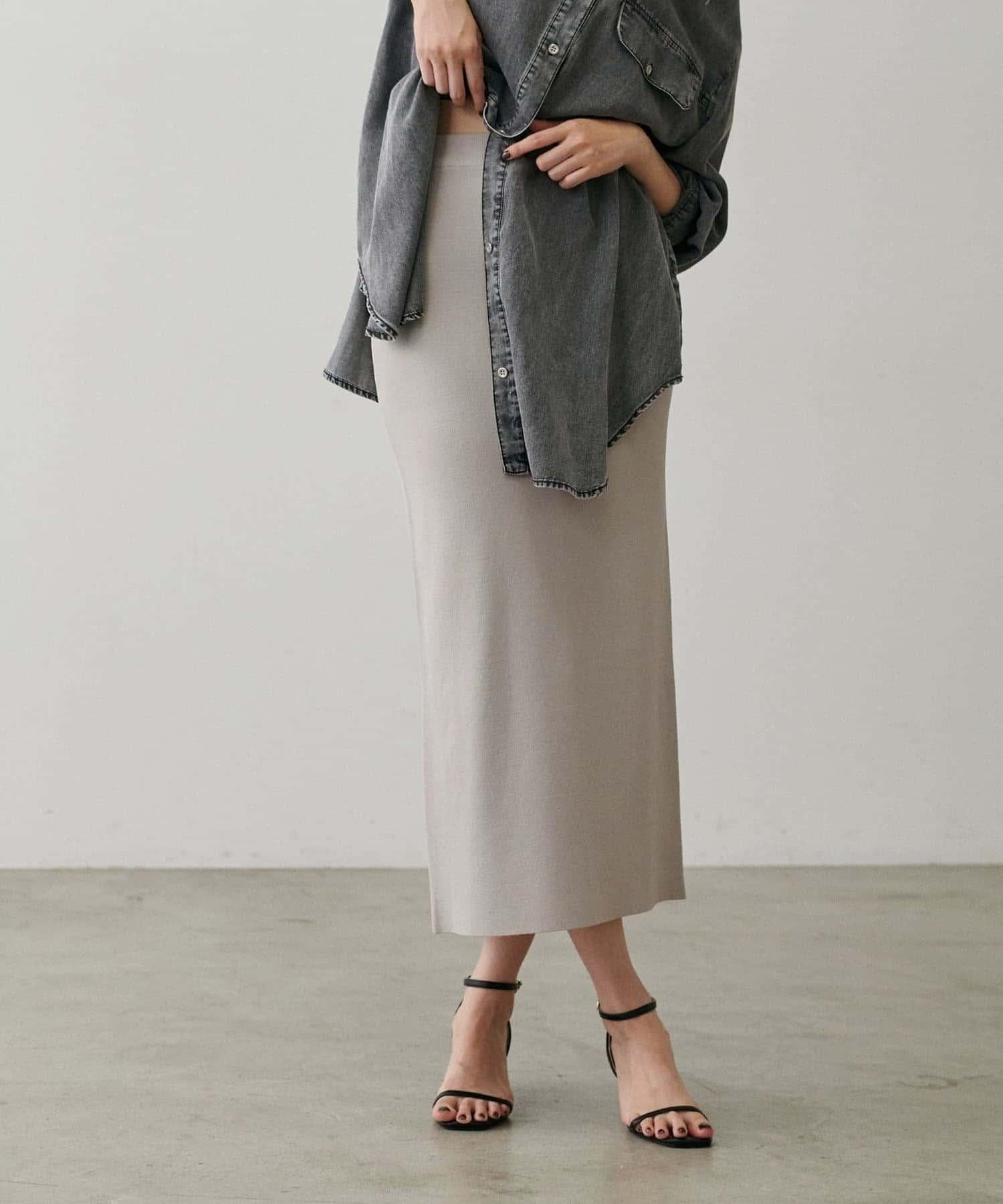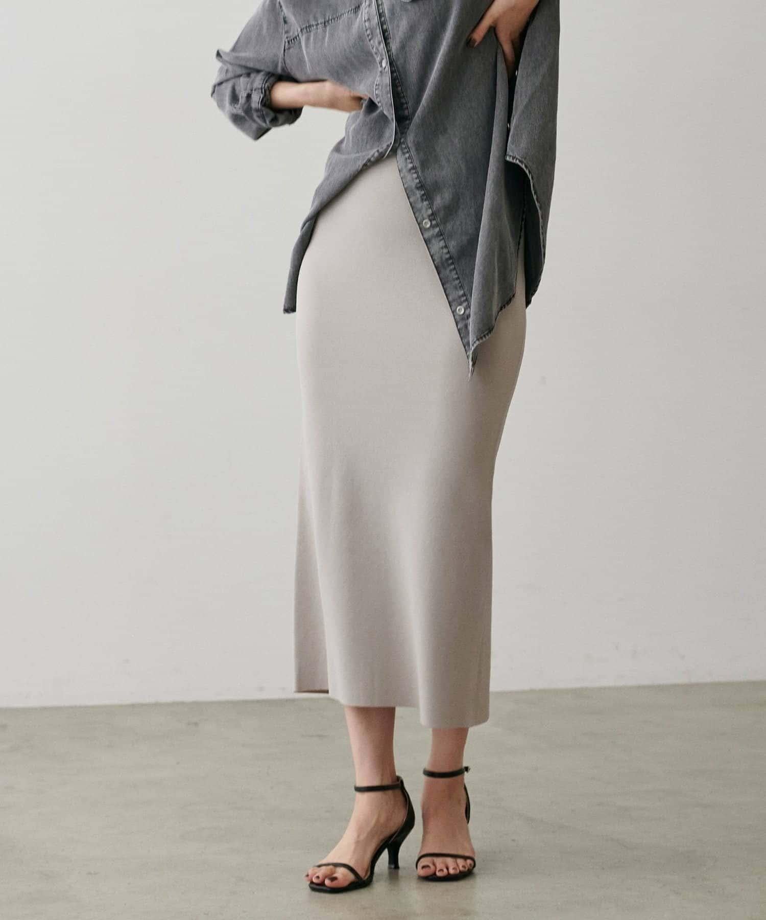 這是一款實用的夏季針織 I 字裙,非常適合炎熱的季節穿著。
