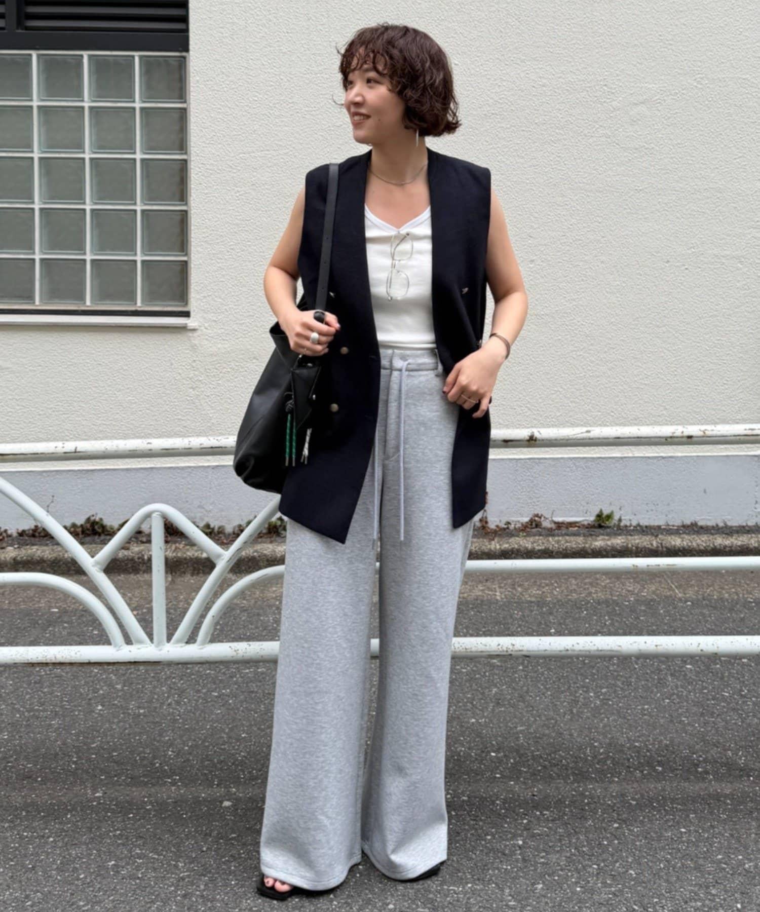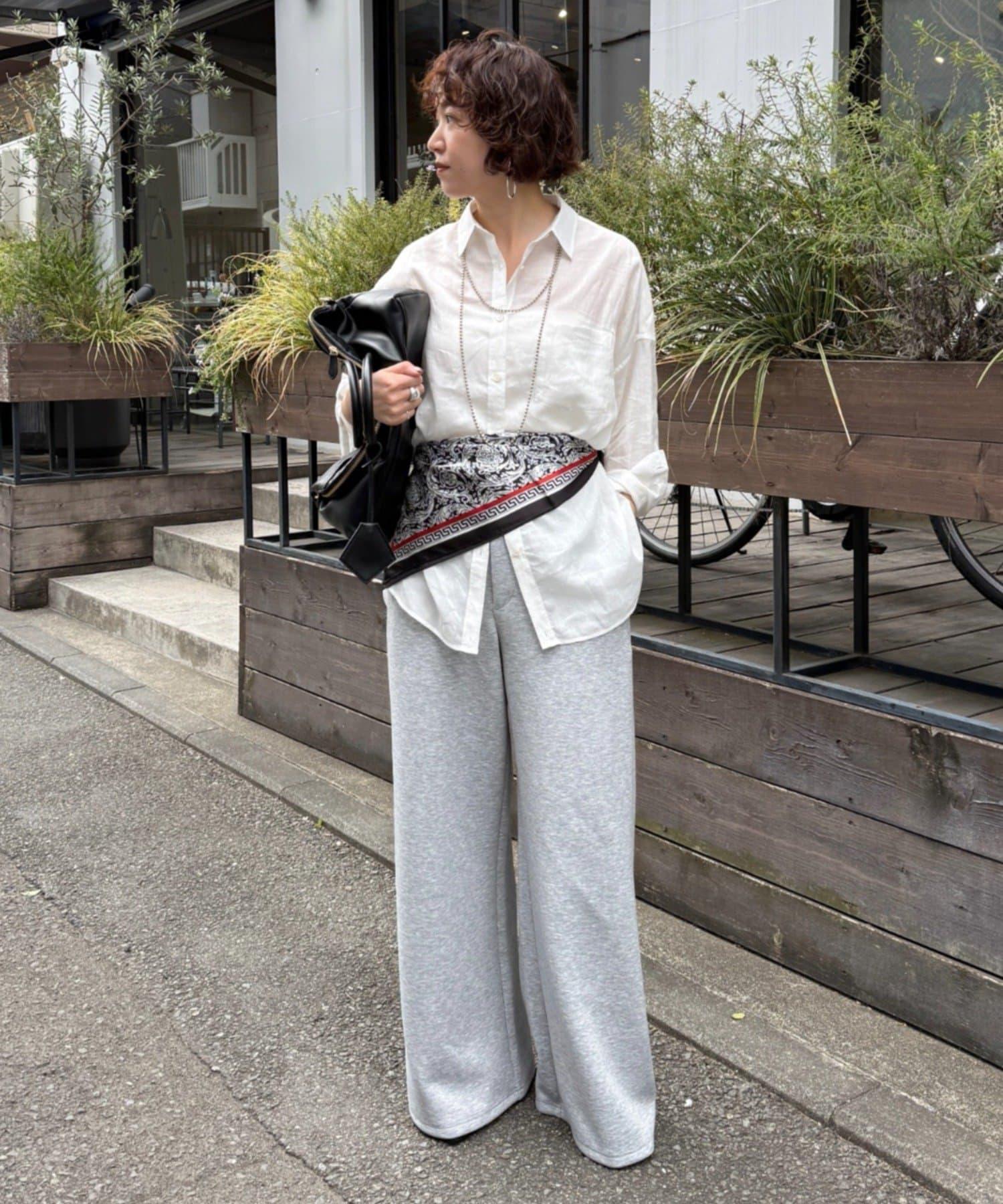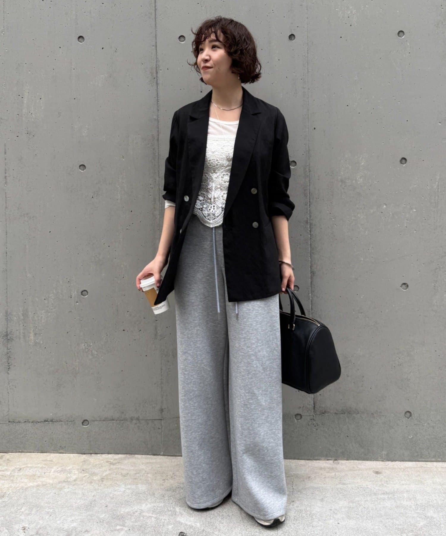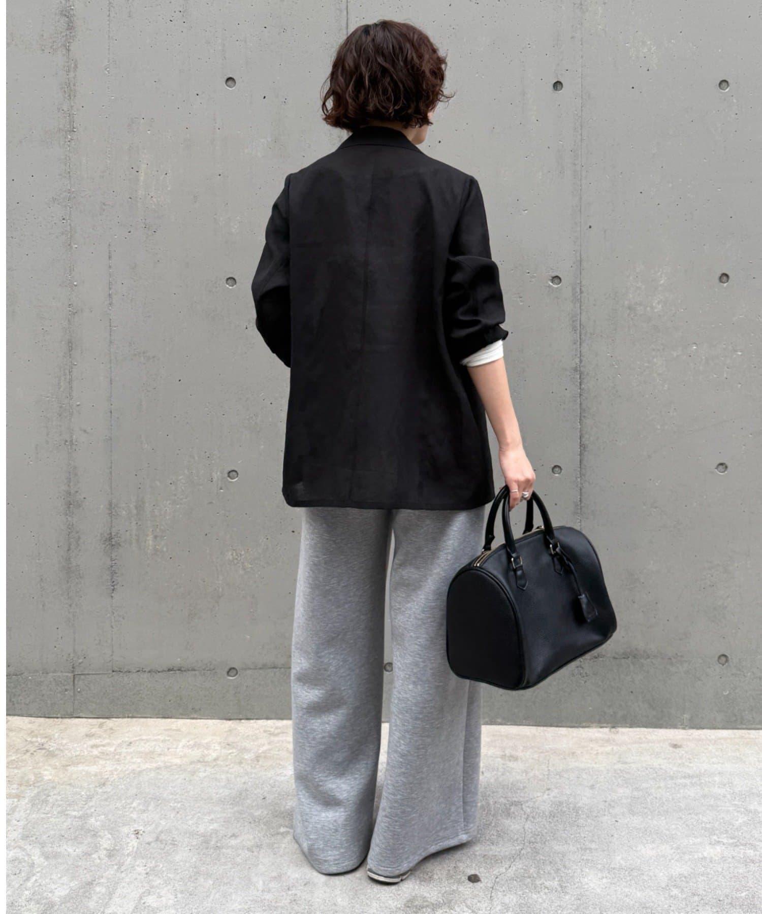 雖然採用了運動衫面料,但前開襟給人一種優雅的印象,同時又不會過於隨意。