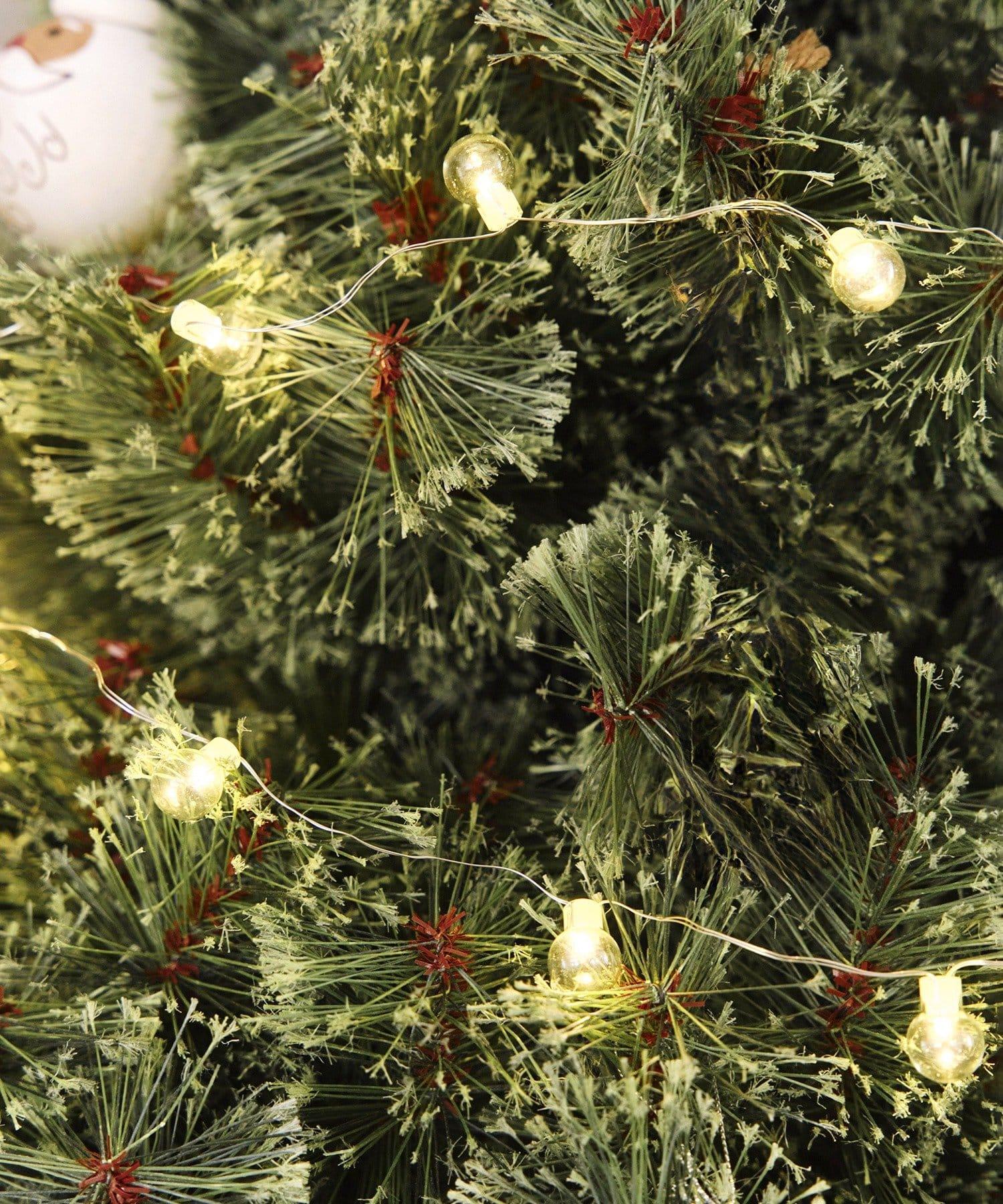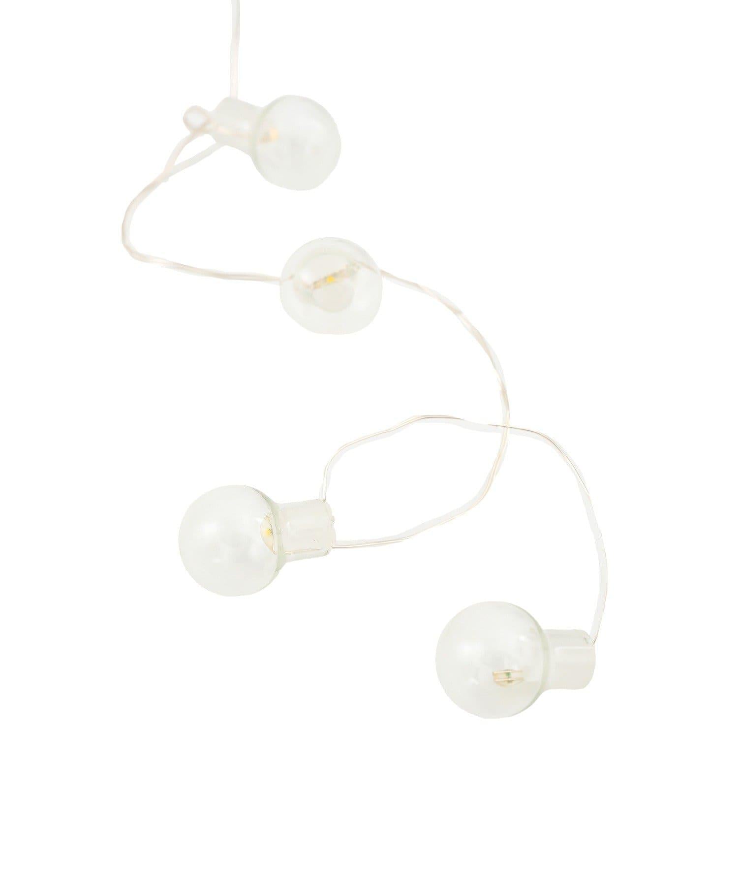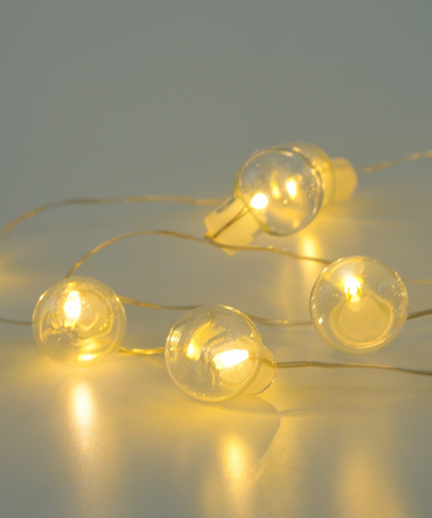 花環的設計非常吸引人,細線上的一系列 LED 玻璃球燈輕輕搖曳,散發出柔和的光芒。